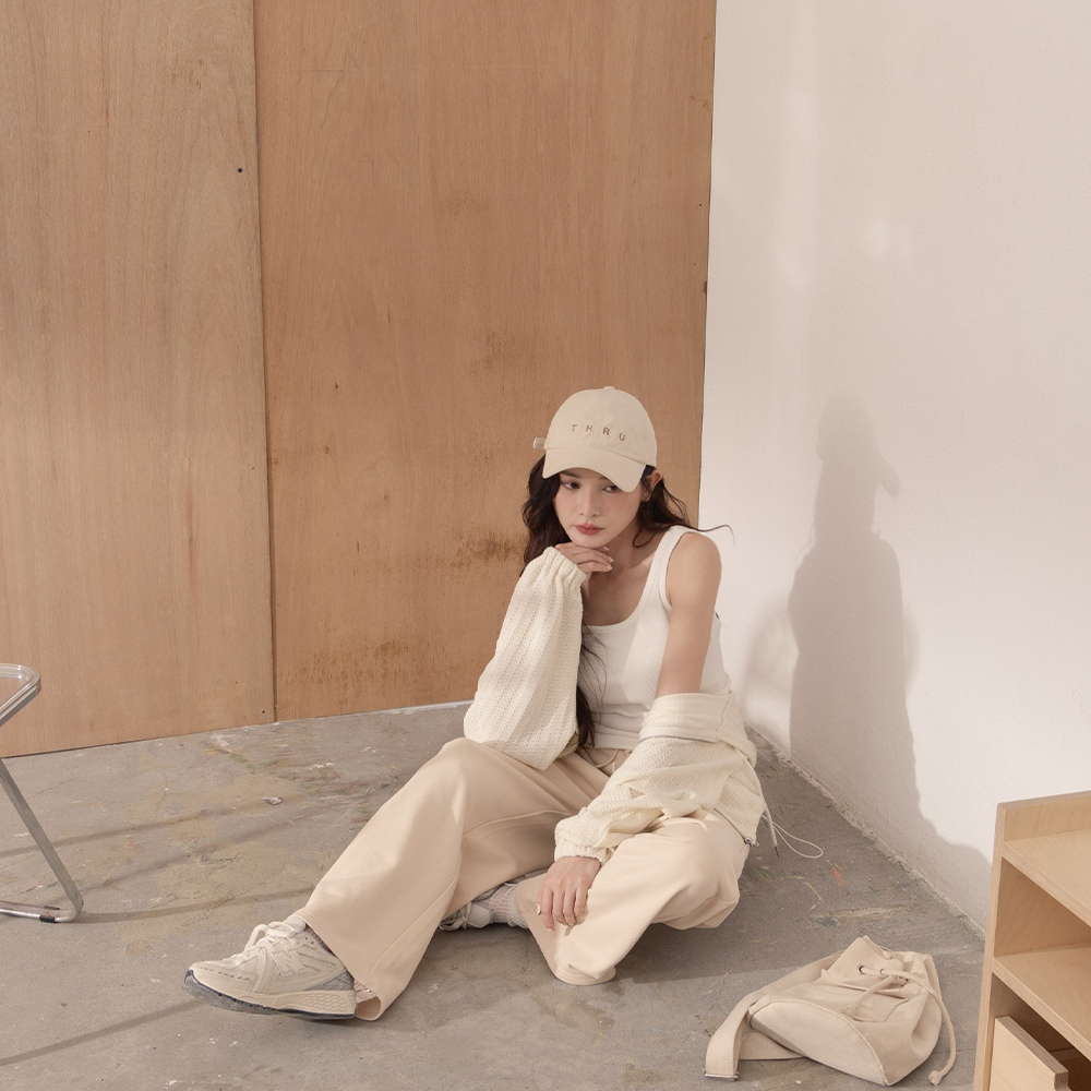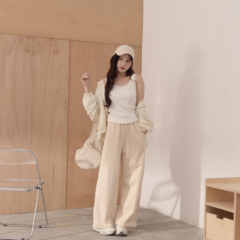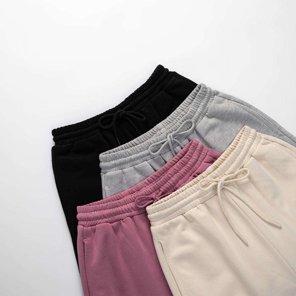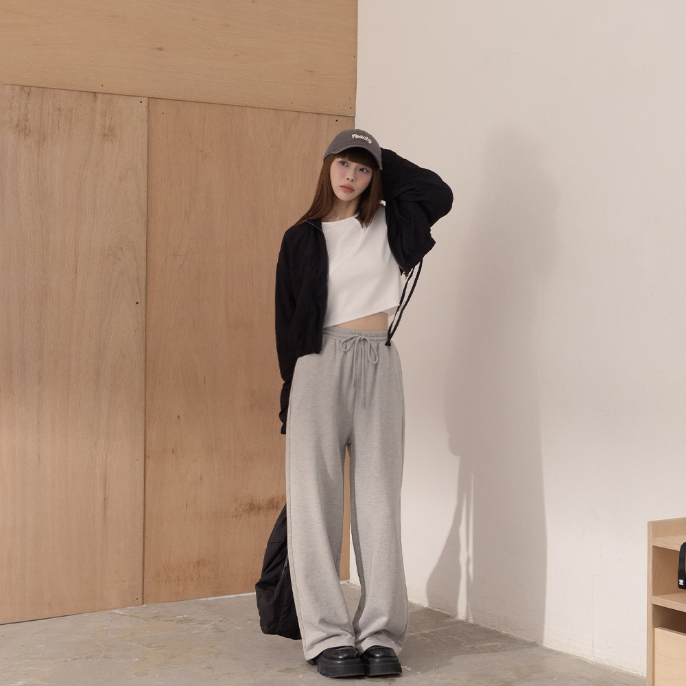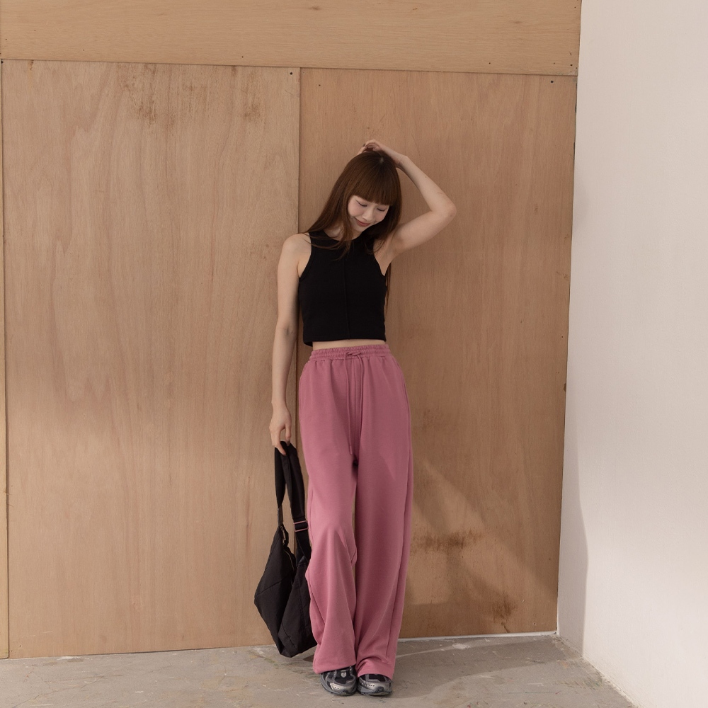 QUEENSHOP_ S 女裝 素面腰抽繩寬版棉質長褲 四色售 現+預 【04101915】黑|粉|杏|花灰PantsQUEENSHOP