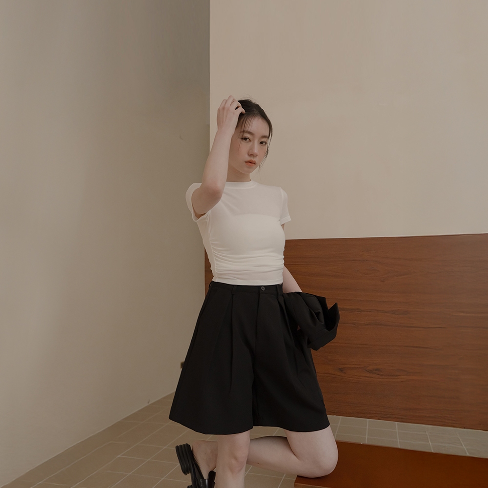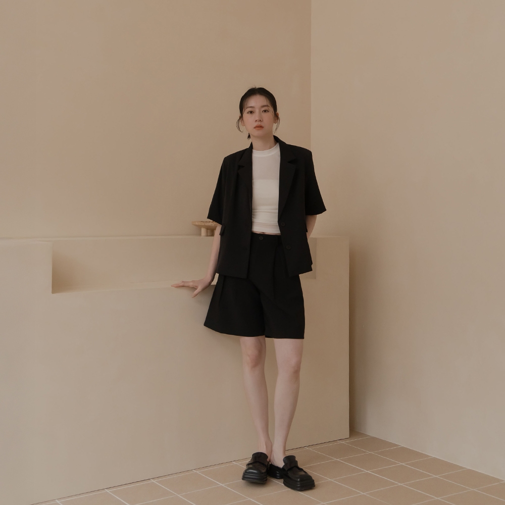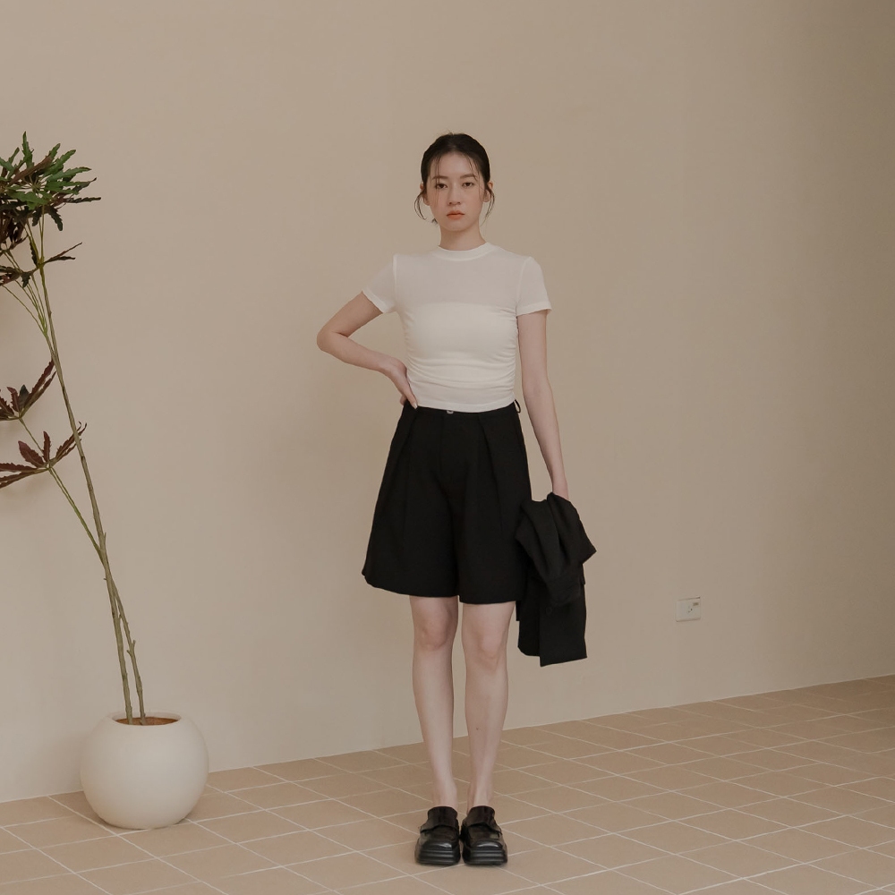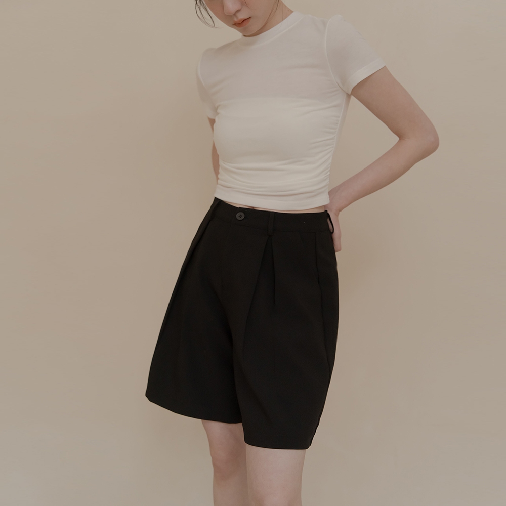 QUEENSHOP_ S 女裝 前打褶寬版五分西裝褲-黑 S/M/L 現+預 【04030501】黑S|黑M|黑LShortsQUEENSHOP