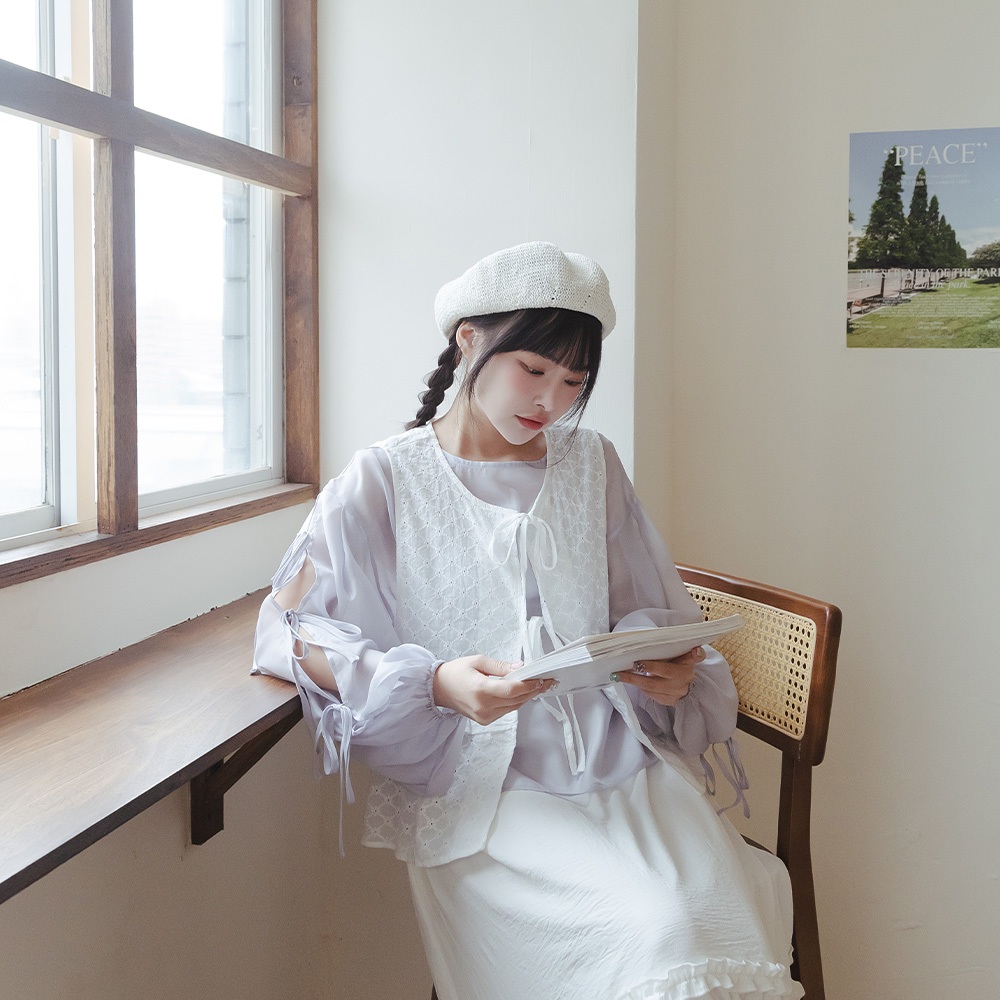 QUEENSHOP_ S 女裝 緹花造型雙綁帶背心罩衫 現+預 【01099027】依賣場OthersQUEENSHOP
