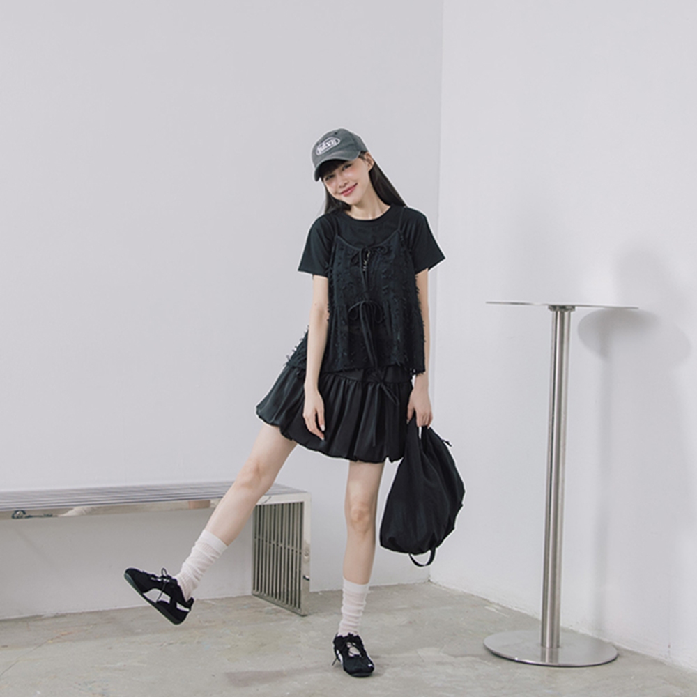 QUEENSHOP_ S 女裝 V領蕾絲飾邊細肩傘擺背心 六色售 現+預 【01099041】灰|白|紅|粉|綠|紫Tanks & CamisolesQUEENSHOP