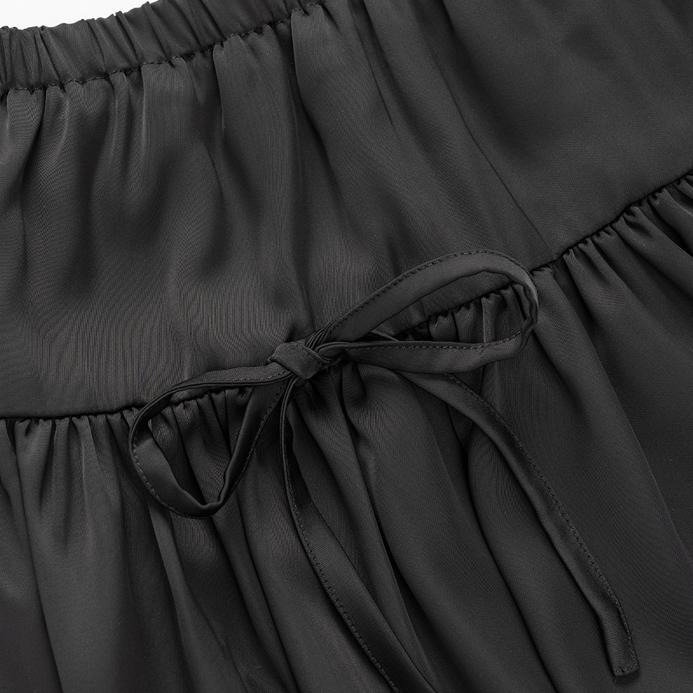 QUEENSHOP_ S 女裝 緞面綁帶花苞造型澎澎短裙 兩色售 S/M 現+預 【03010894】