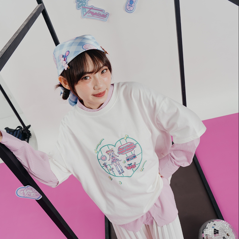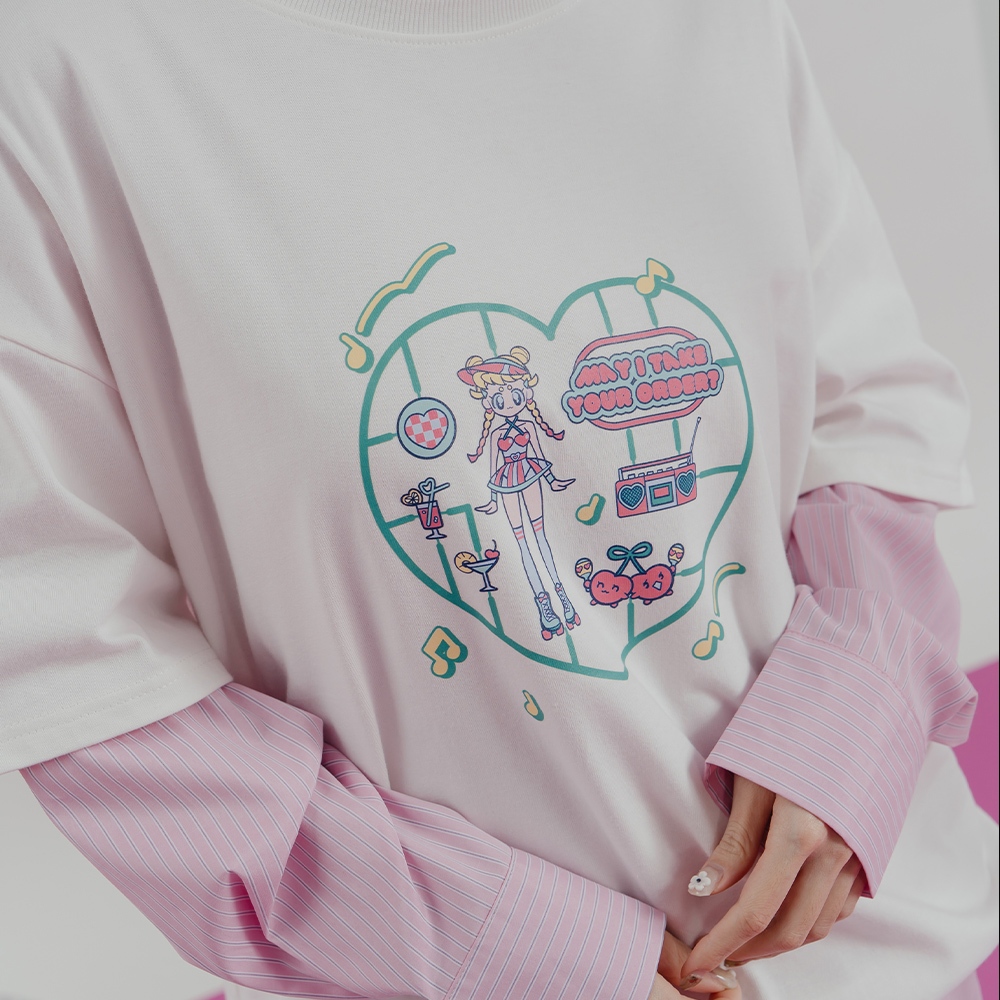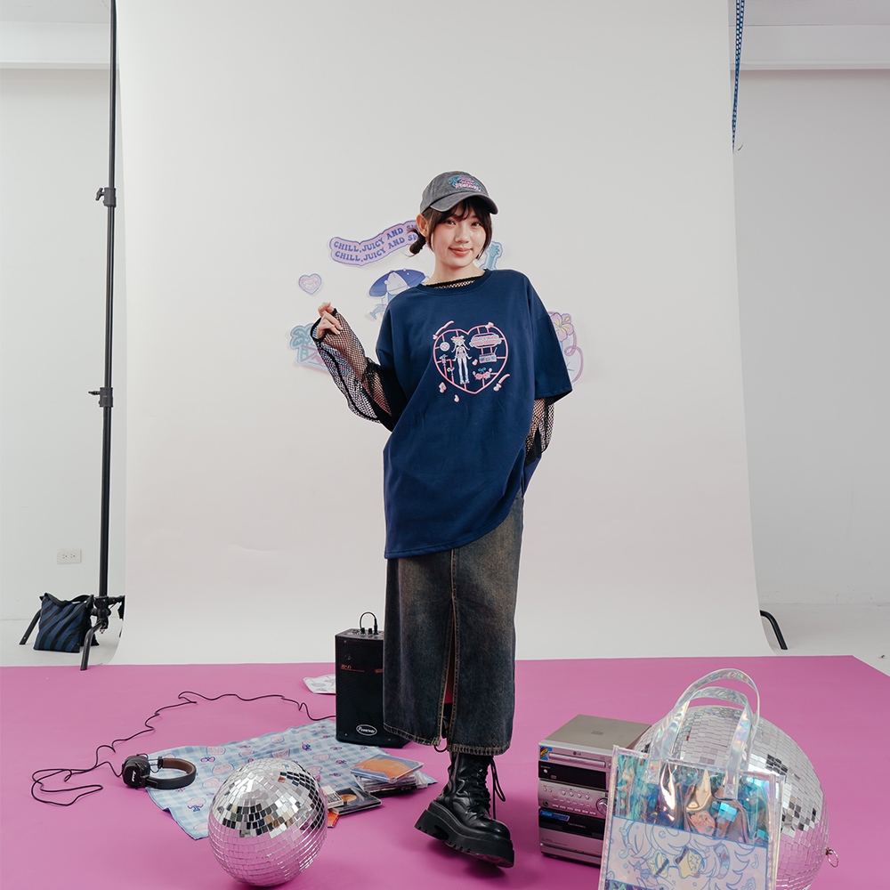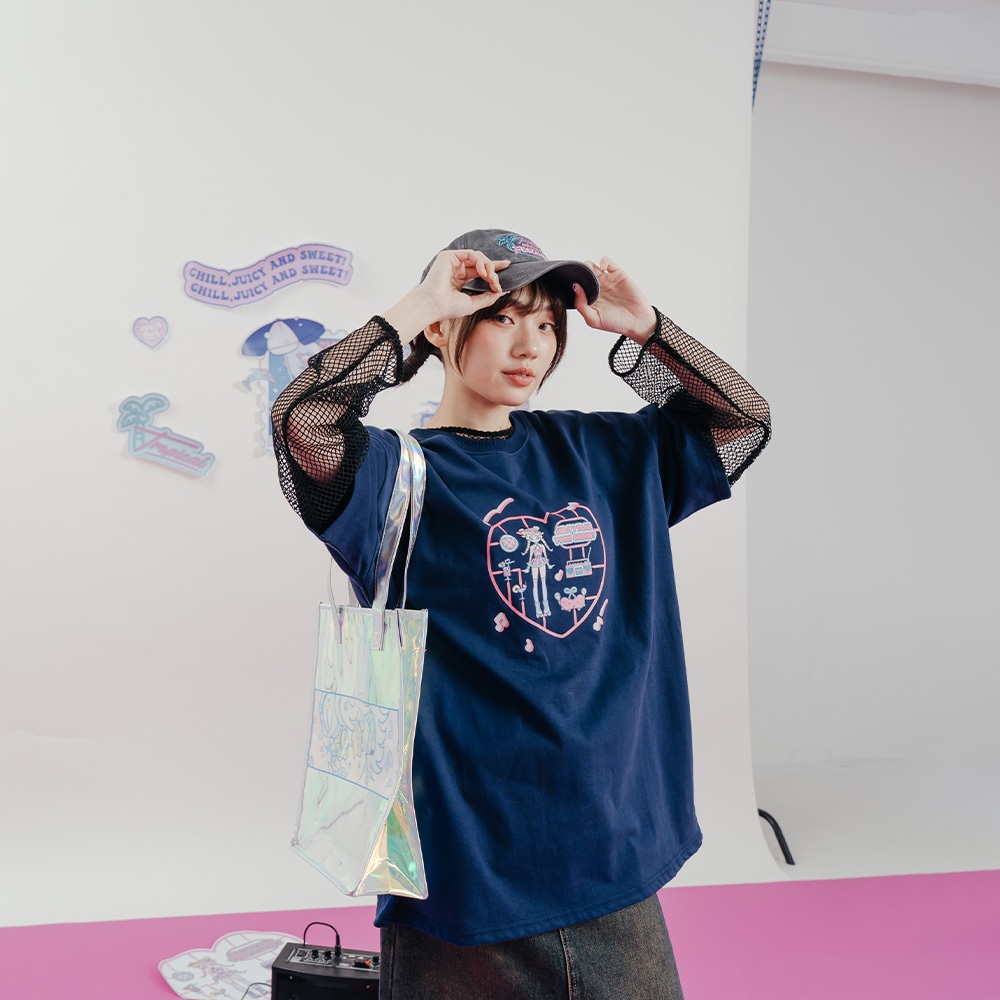 QUEENSHOP_ S 女裝 短袖 MIT 寬片片 愛心模型玩具印圖上衣 兩色售 現+預 【01190225】米白|深藍T-shirtsQUEENSHOP