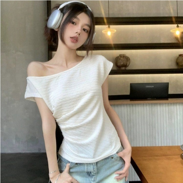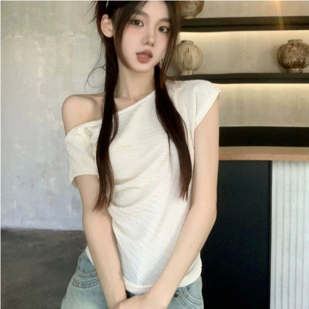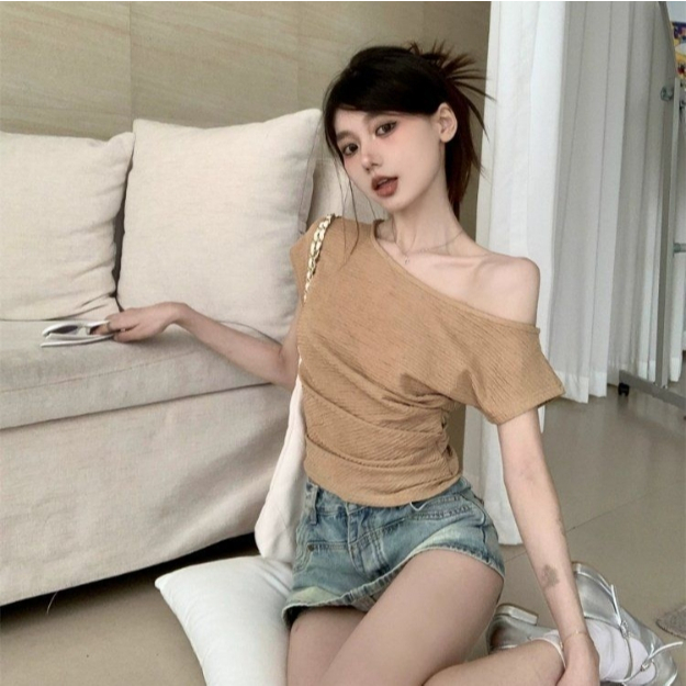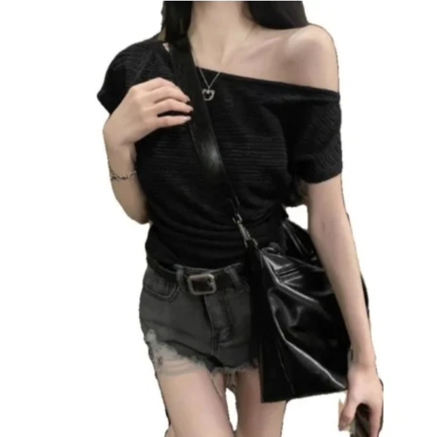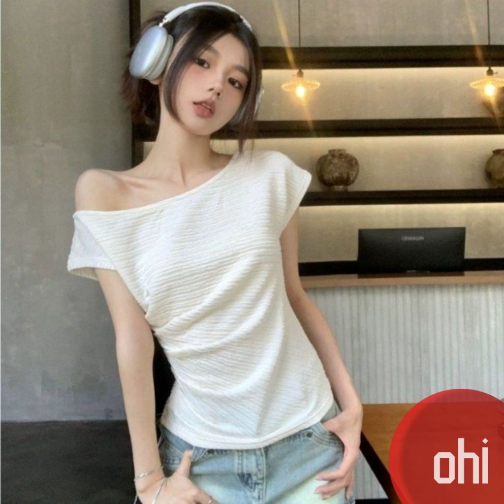【ohi】純欲風辣妹斜領露肩短袖上衣 百搭上衣 女生上衣 針織上衣 女裝 顯瘦上衣 韓版上衣 GWHD87黑色,F碼(均碼40-55KG可穿)|白色,F碼(均碼40-55KG可穿)|卡其色,F碼(均碼40-55KG可穿)OthersOHI衣著