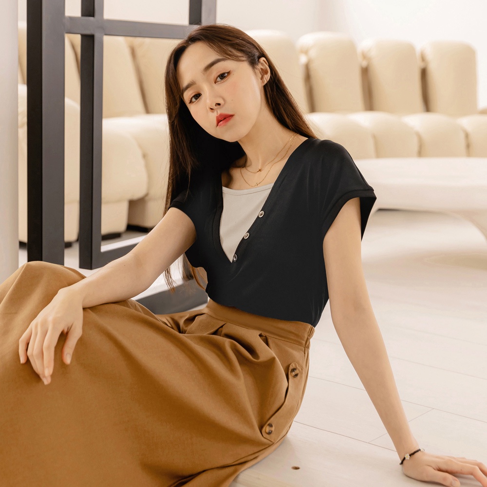 OB嚴選 假兩件彈力坑條針織素色寬袖上衣 《AB18328》大尺碼/現貨/女裝黑,2L|深藍,M|深藍,XL|灰紫,L|土黃,XL|土黃,3L|黑,M|深藍,3L|灰紫,S|灰紫,XL|灰紫,2L|黑,S|黑,XL|黑,3L|深藍,S|深藍,L|深藍,2L|灰紫,3L|土黃,S|黑,L|土黃,M|土黃,L|土黃,2L|灰紫,MT-shirtsOB嚴選官方旗艦店