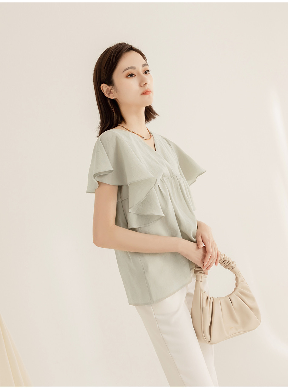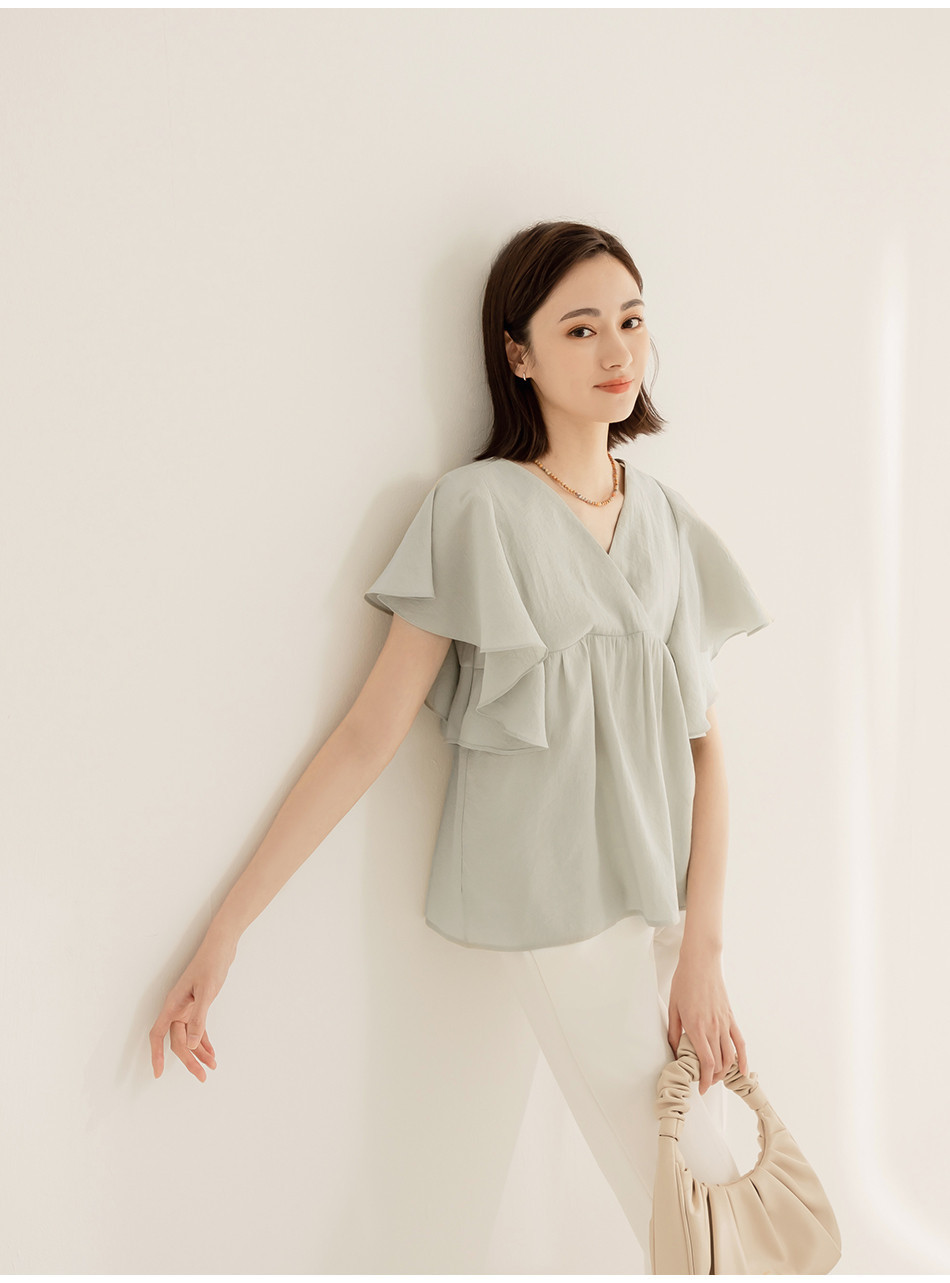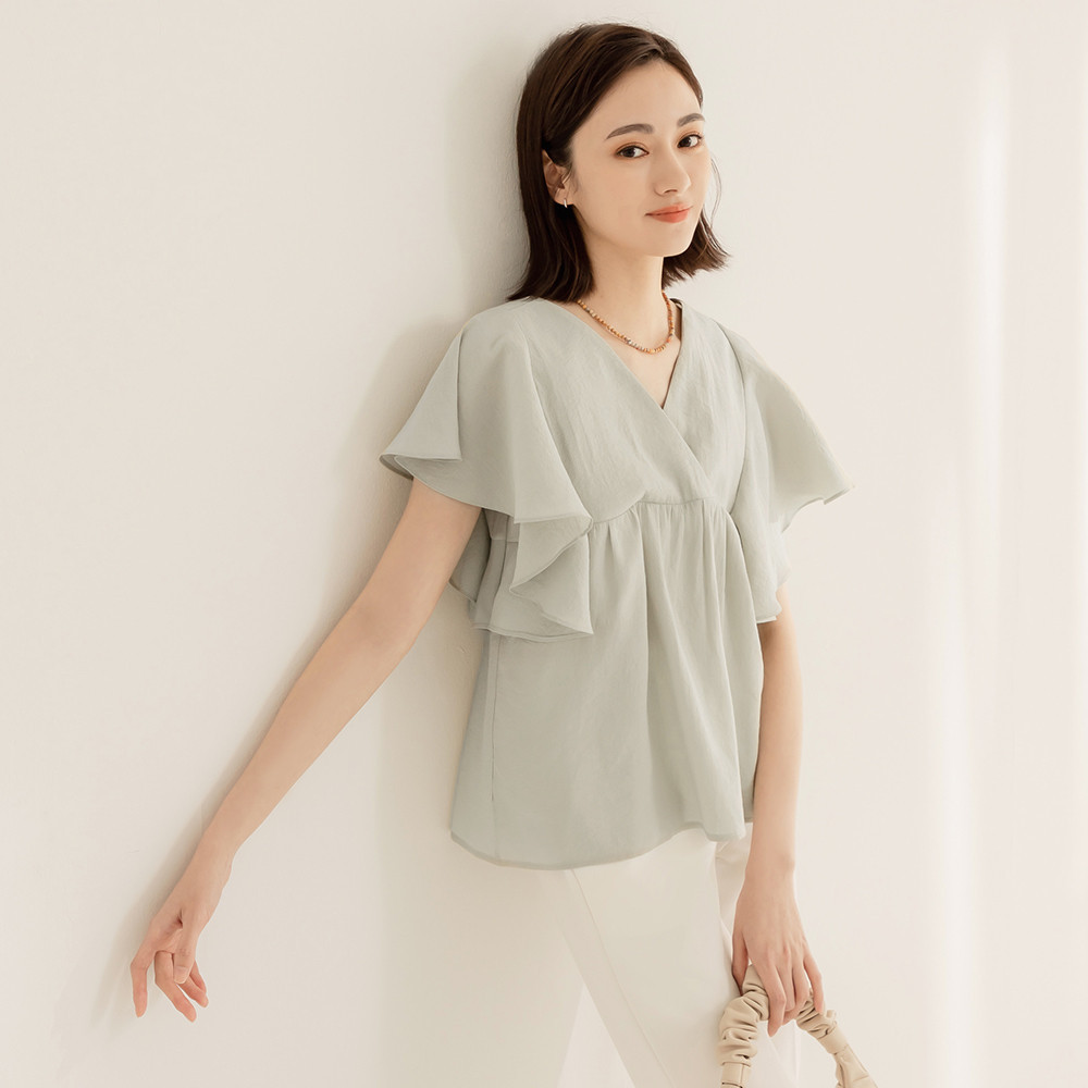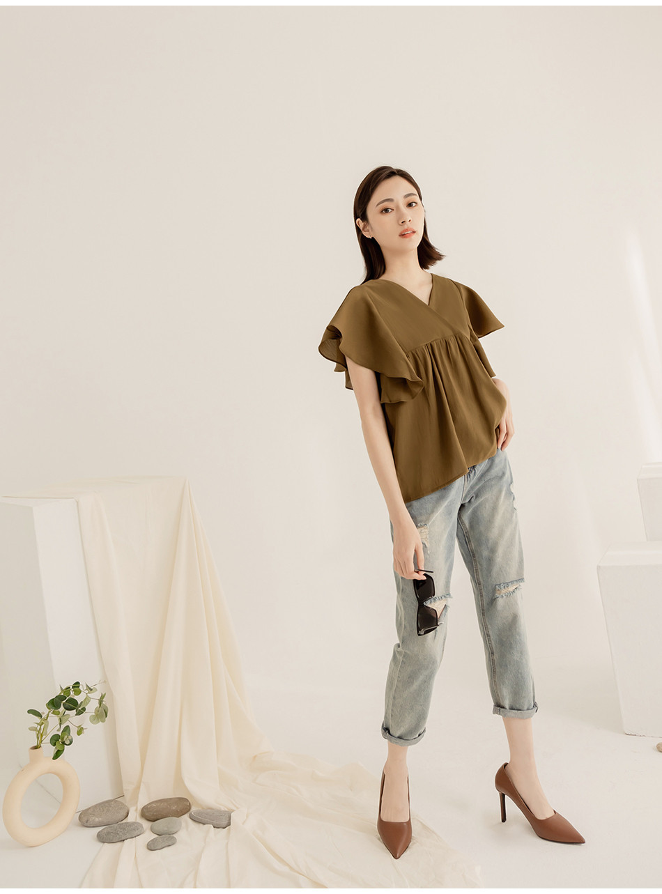 OB嚴選 小V臉.V領荷葉袖傘襬上衣 《AB18356》大尺碼/現貨/女裝灰綠,S|灰綠,M|灰綠,L|灰綠,XL|灰綠,2L|灰綠,3L|褐,S|褐,M|褐,L|褐,XL|褐,2L|褐,3LT-shirtsOB嚴選官方旗艦店