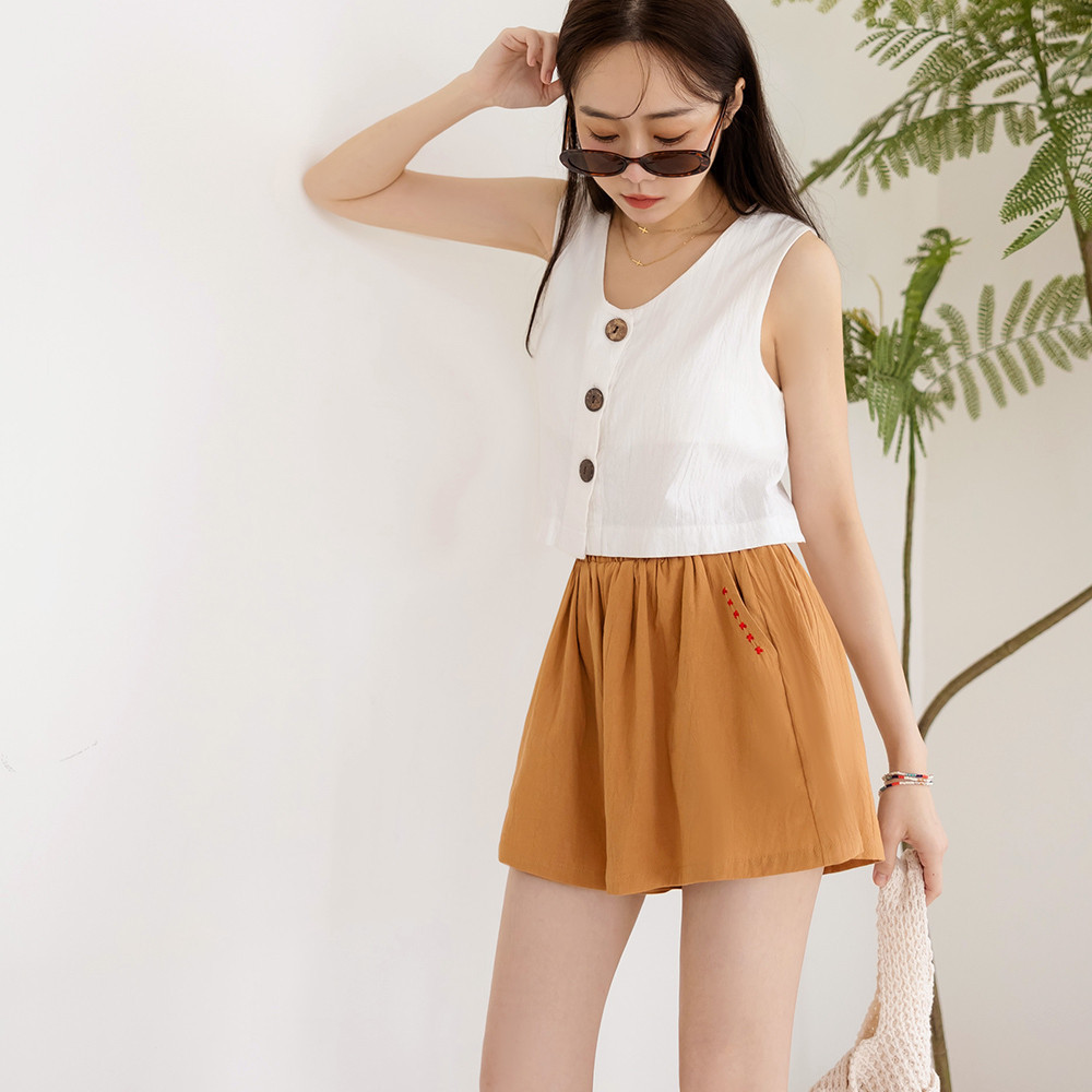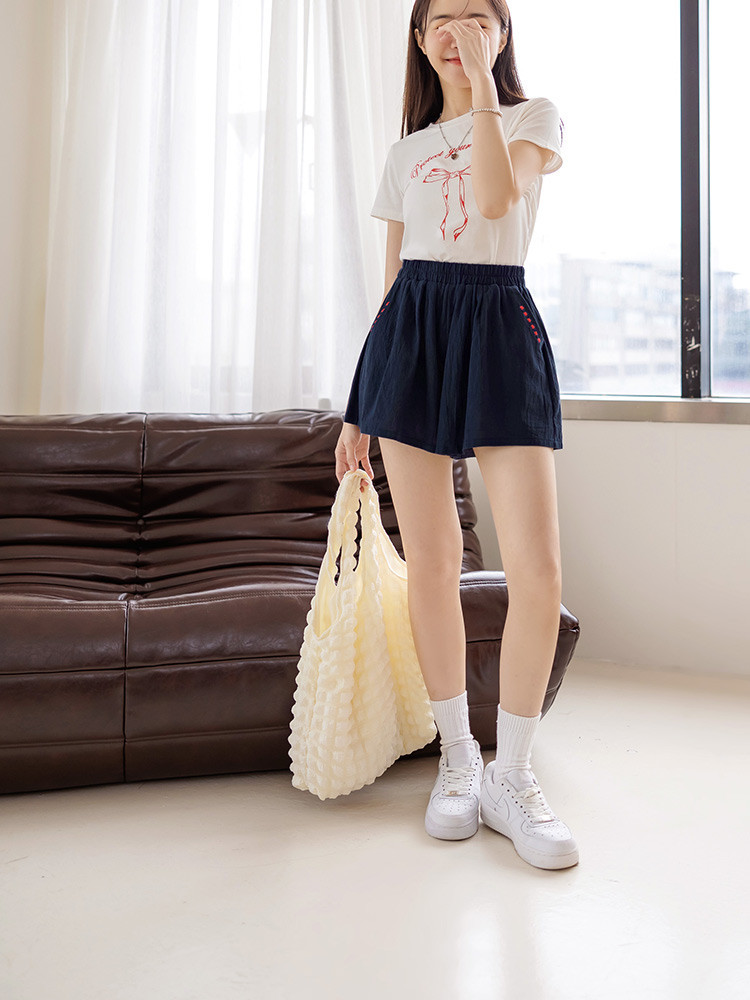 OB嚴選 純棉刺繡圖案腰鬆緊寬鬆短褲 《BA7517》大尺碼/女裝/現貨卡其,S|卡其,M|卡其,L|卡其,XL|卡其,2L|卡其,3L|深藍,S|深藍,M|深藍,L|深藍,XL|深藍,2L|深藍,3LShortsOB嚴選官方旗艦店