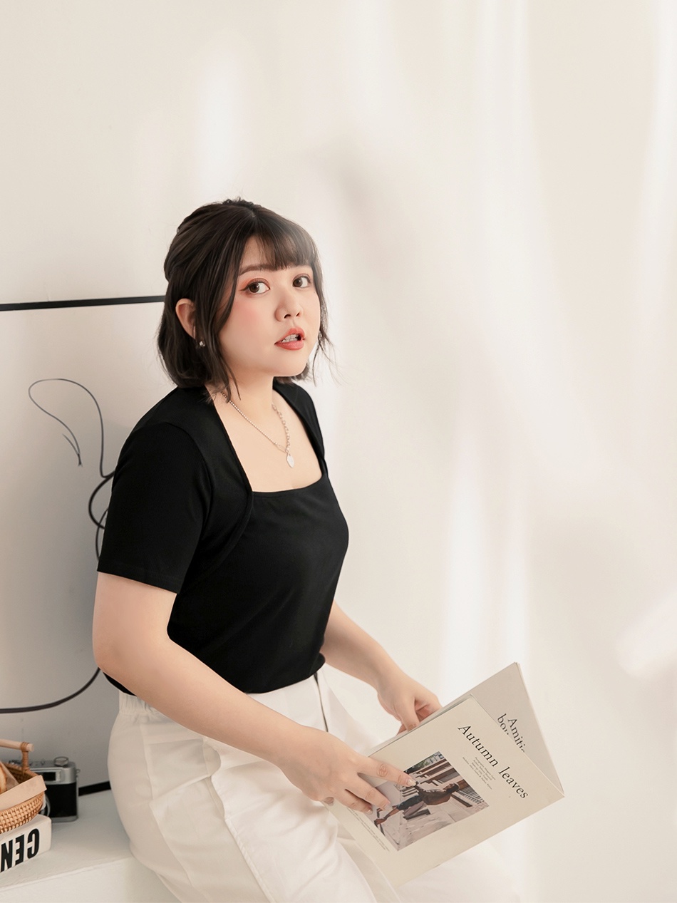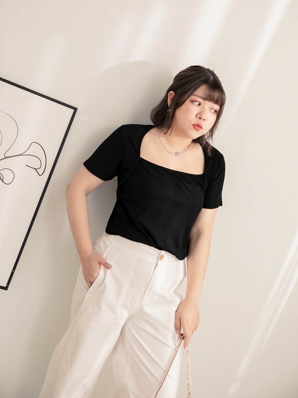 OB嚴選 小V臉.方領彈性針織短袖上衣-雲朵自訂款 《AB16847》大尺碼/現貨/女裝黑,XL|黑,3L|卡其杏,XL|灰粉,3L|卡其杏,2L|卡其杏,3L|黑,2L|灰粉,XL|灰粉,2LT-shirtsOB嚴選官方旗艦店