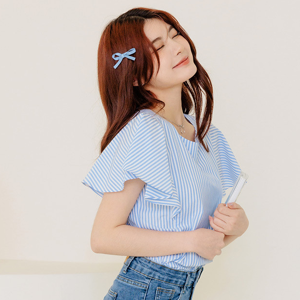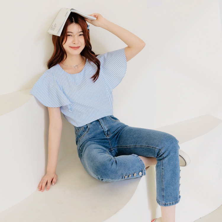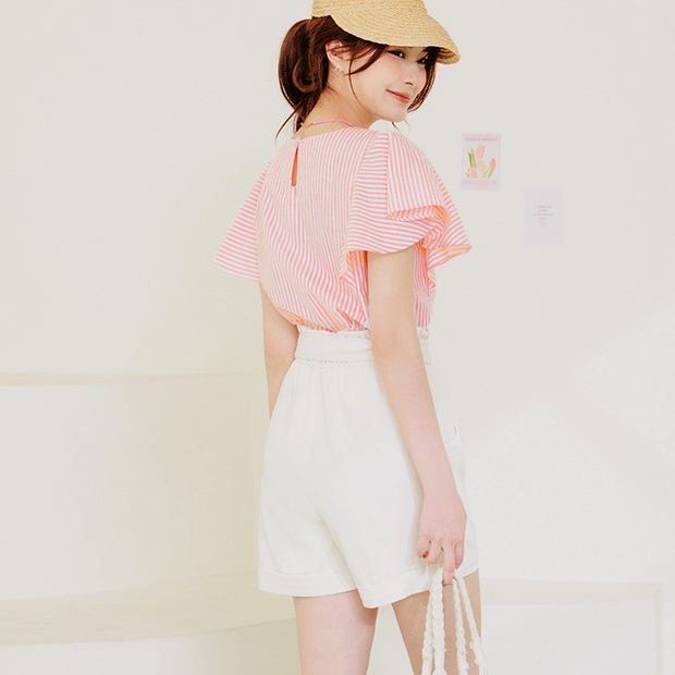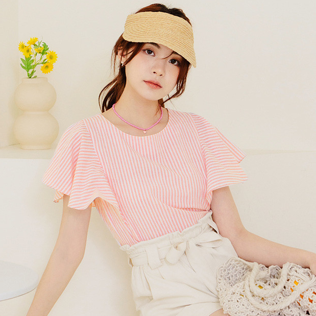 OB嚴選 不易皺直條紋荷葉袖上衣 《AB19384》大尺碼/現貨/女裝粉紅,S|粉紅,M|粉紅,L|粉紅,XL|粉紅,2L|粉紅,3L|淺水藍,S|淺水藍,M|淺水藍,L|淺水藍,XL|淺水藍,2L|淺水藍,3LOthersOB嚴選官方旗艦店
