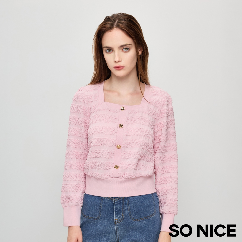 SO NICE【特惠】甜美粉方領立體紗拼接羅紋短版上衣|都會時尚女裝 【75431001】淺粉,36(S)|淺粉,38(M)|淺粉,40(L)|淺粉,42(XL)|淺粉,34(XS)T-shirtsSO NICE 官方旗艦店