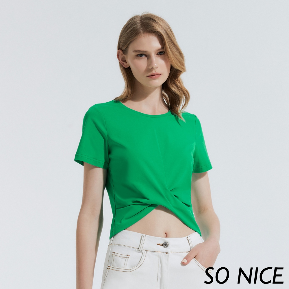 SO NICE【特惠】交叉紐結冰瓷棉上衣|綠/紫紅|都會時尚女裝 【65331034】紫紅,38(M)|紫紅,40(L)|綠,34(XS)|綠,36(S)|綠,38(M)|綠,40(L)|紫紅,34(XS)|紫紅,36(S)T-shirtsSO NICE 官方旗艦店
