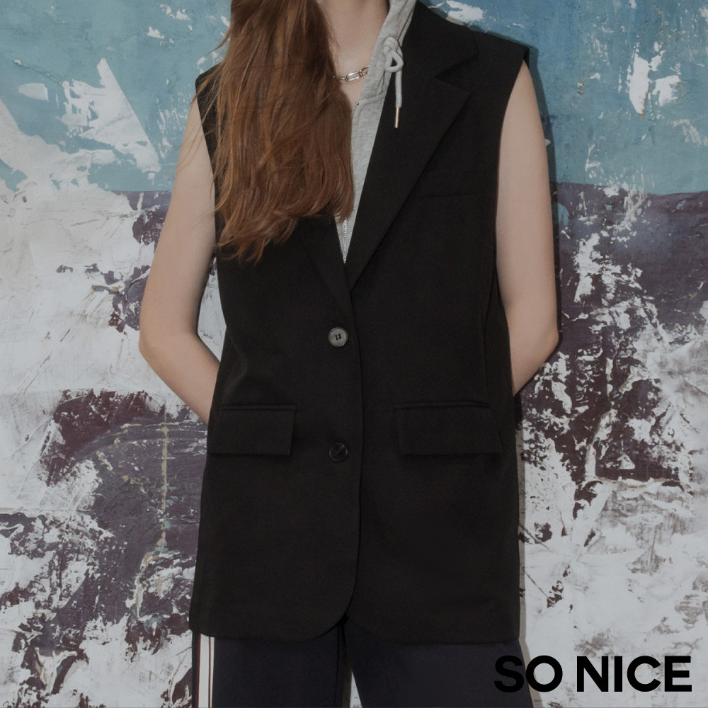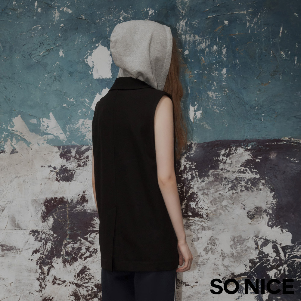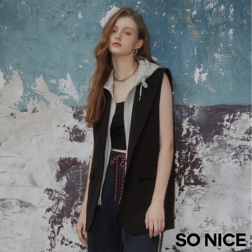 SO NICE Miu系學院運動風可拆式連帽兩件式長版背心西裝外套|都會時尚女裝【52545004】黑,34(XS)|黑,36(S)|黑,38(M)|黑,40(L)|黑,42(XL)OthersSO NICE 官方旗艦店