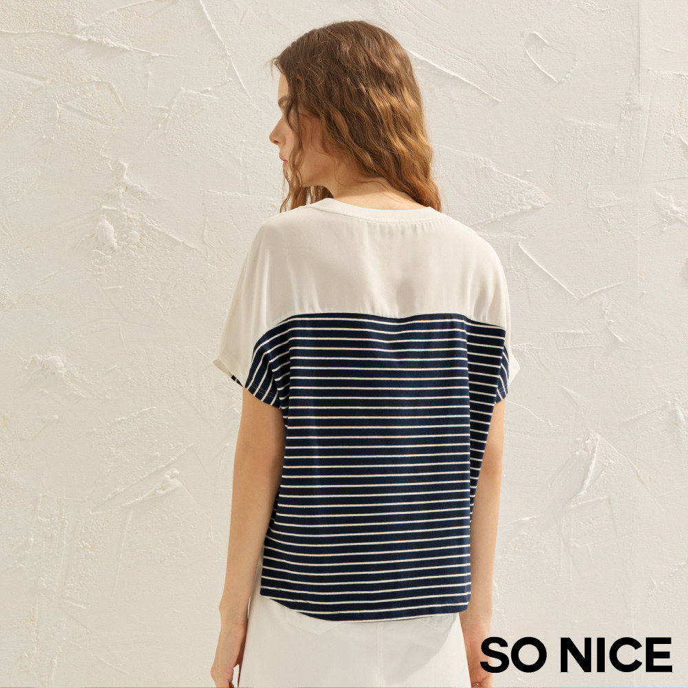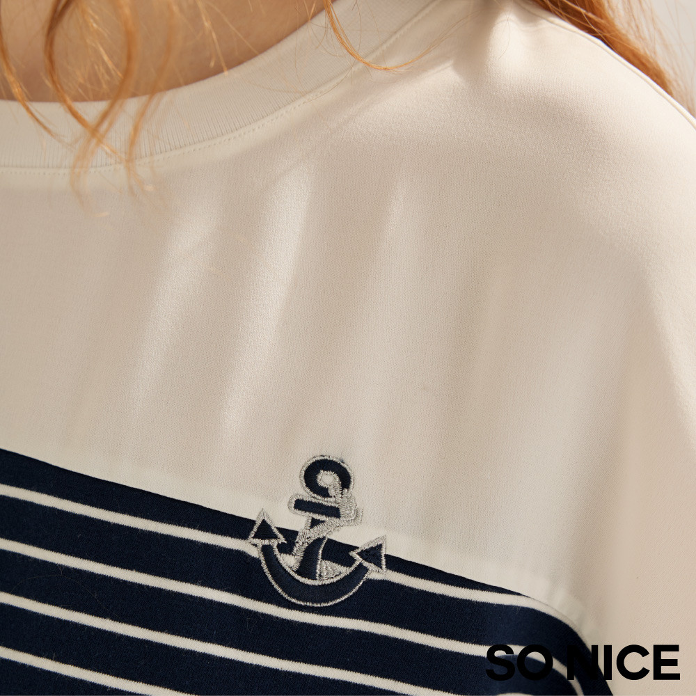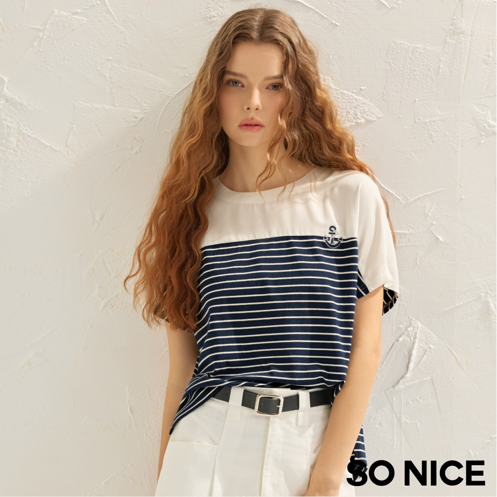 SO NICE 航海系撞色條紋寬鬆版棉質上衣|都會時尚女裝【29541008】深藍,34(XS)|深藍,36(S)|深藍,38(M)|深藍,40(L)T-shirtsSO NICE 官方旗艦店