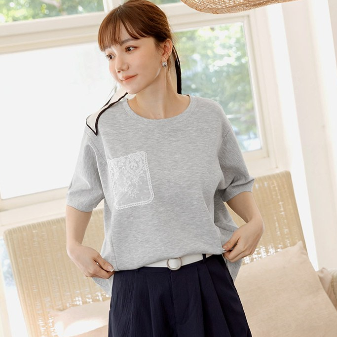 OB嚴選 輕柔空氣棉蕾絲口袋寬鬆上衣 《AB20337》大尺碼/女裝/現貨淺水藍,F|淺水藍,XL|淺水藍,2L|淺水藍,3L|淺水藍,4L|淺灰,F|淺灰,XL|淺灰,2L|淺灰,3L|淺灰,4L|深藍,F|深藍,XL|深藍,2L|深藍,3L|深藍,4LT-shirtsOB嚴選官方旗艦店