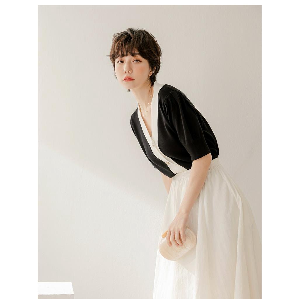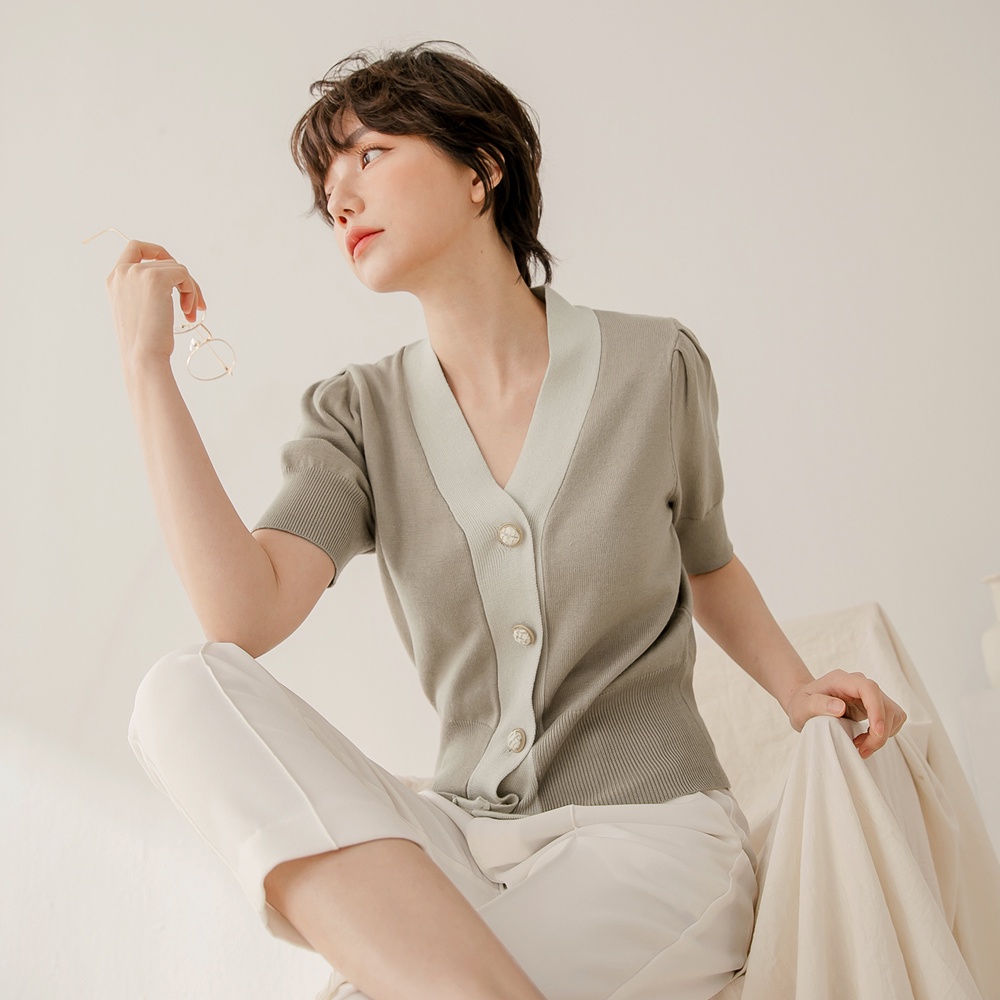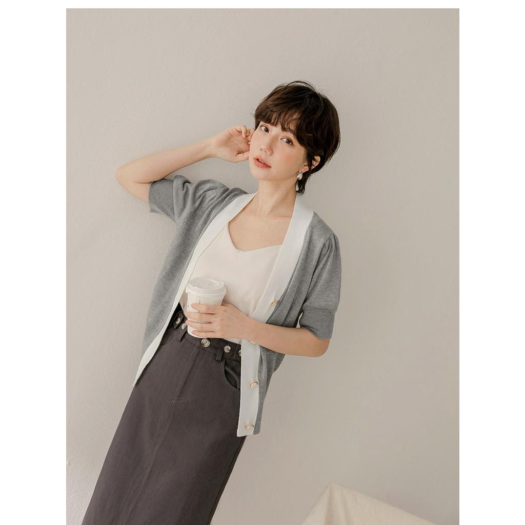 OB嚴選 絲光棉撞色泡袖短版開襟毛衣/上衣 《FA2552》大尺碼/現貨/女裝黑,M|黑,L|卡其杏,M|淺灰,XL|卡其杏,2L|淺灰,M|淺灰,L|淺灰,2L|黑,XL|黑,2L|卡其杏,L|卡其杏,XLOB嚴選官方旗艦店