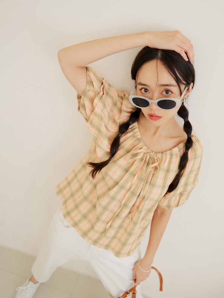 OB嚴選 細緻格紋鬆緊兩穿領拋袖上衣 《AB18923》大尺碼/女裝/現貨灰紫,M|灰紫,2L|橘,M|橘,L|橘,2L|橘,3L|灰紫,S|灰紫,L|灰紫,XL|灰紫,3L|橘,S|橘,XLT-shirtsOB嚴選官方旗艦店