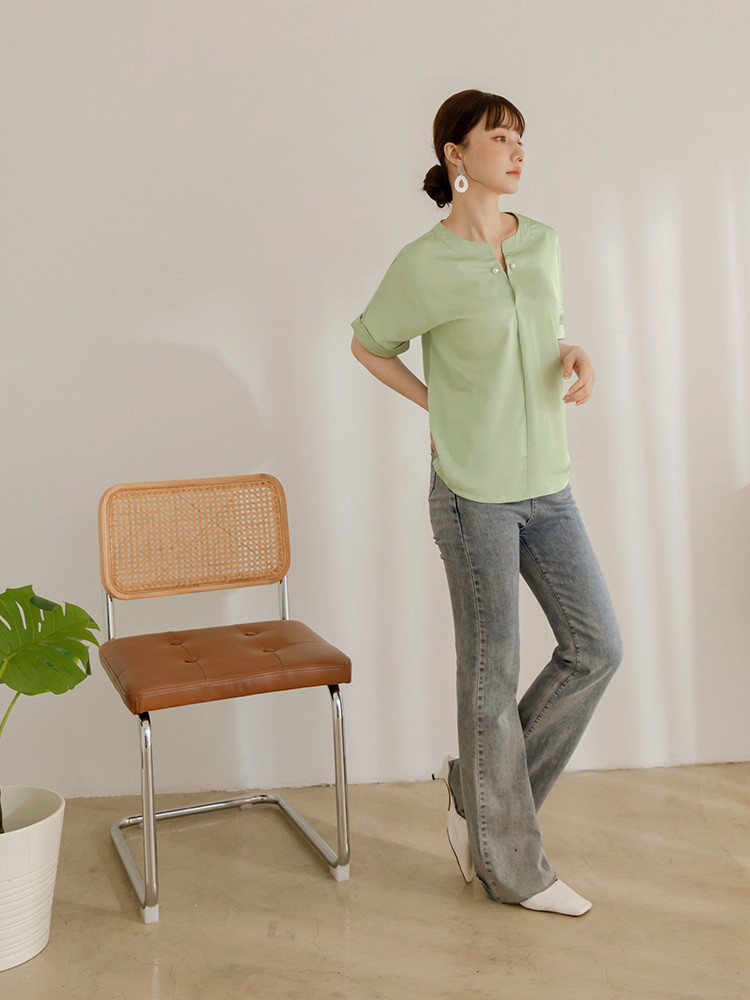 OB嚴選 不易皺V領打褶造型短袖上衣 《AB20357》