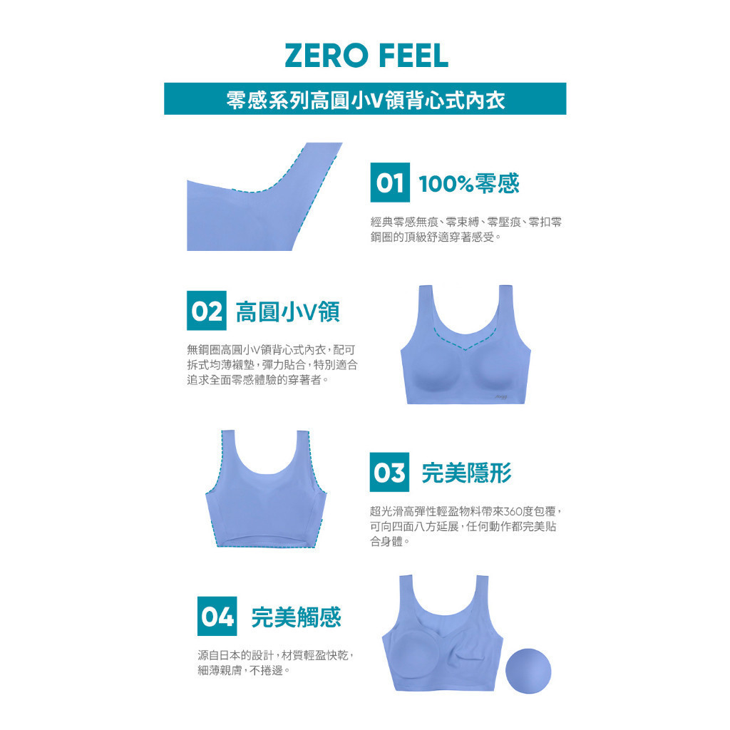 sloggi ZERO FEEL TOP零感系列高圓小V領背心式無鋼圈內衣 藍色地中海|88-299 IBL|EL|S|MBrassloggi 官方旗艦店