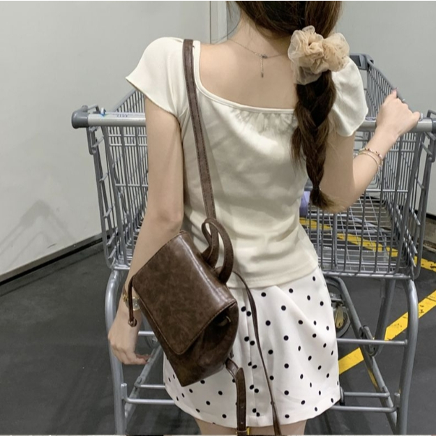 【ohi】方領露臂泡泡袖針織上衣美背上衣短袖T恤上衣 辣妹短版上衣GWD3117白色|駝色T-shirtsOHI衣著