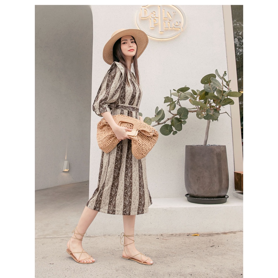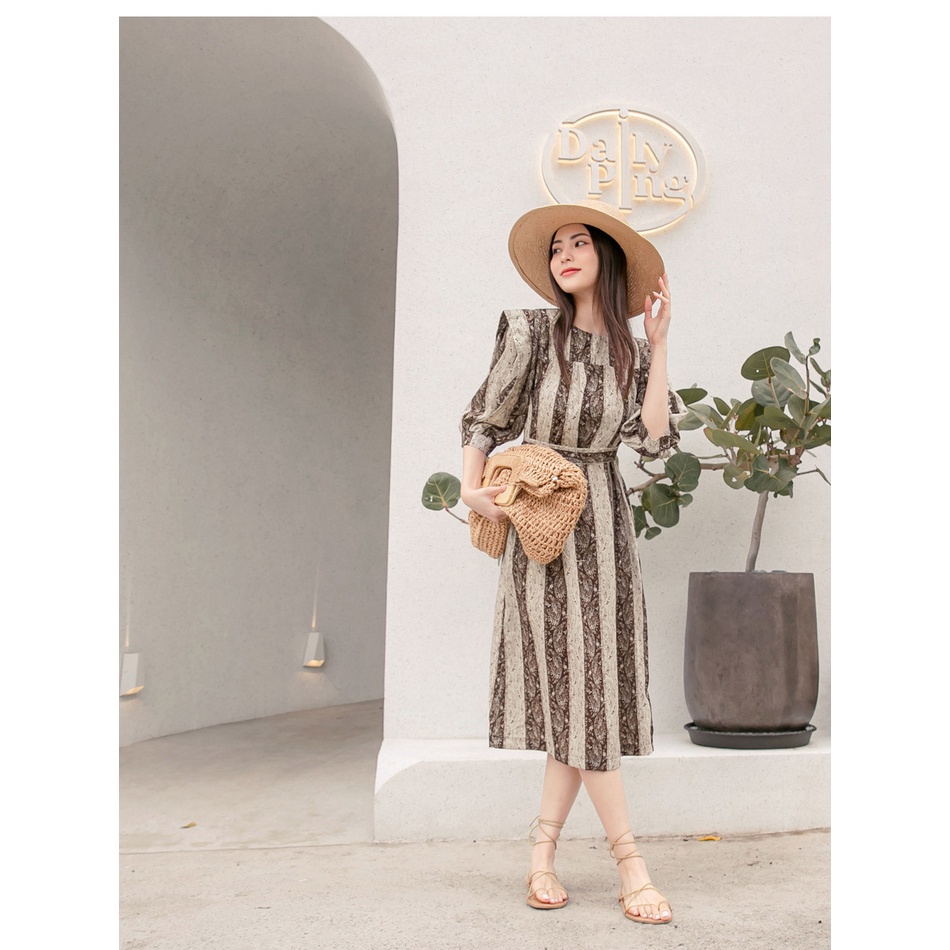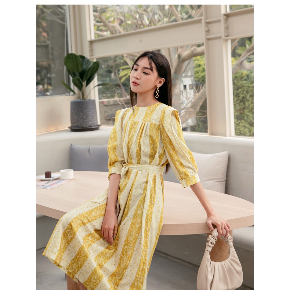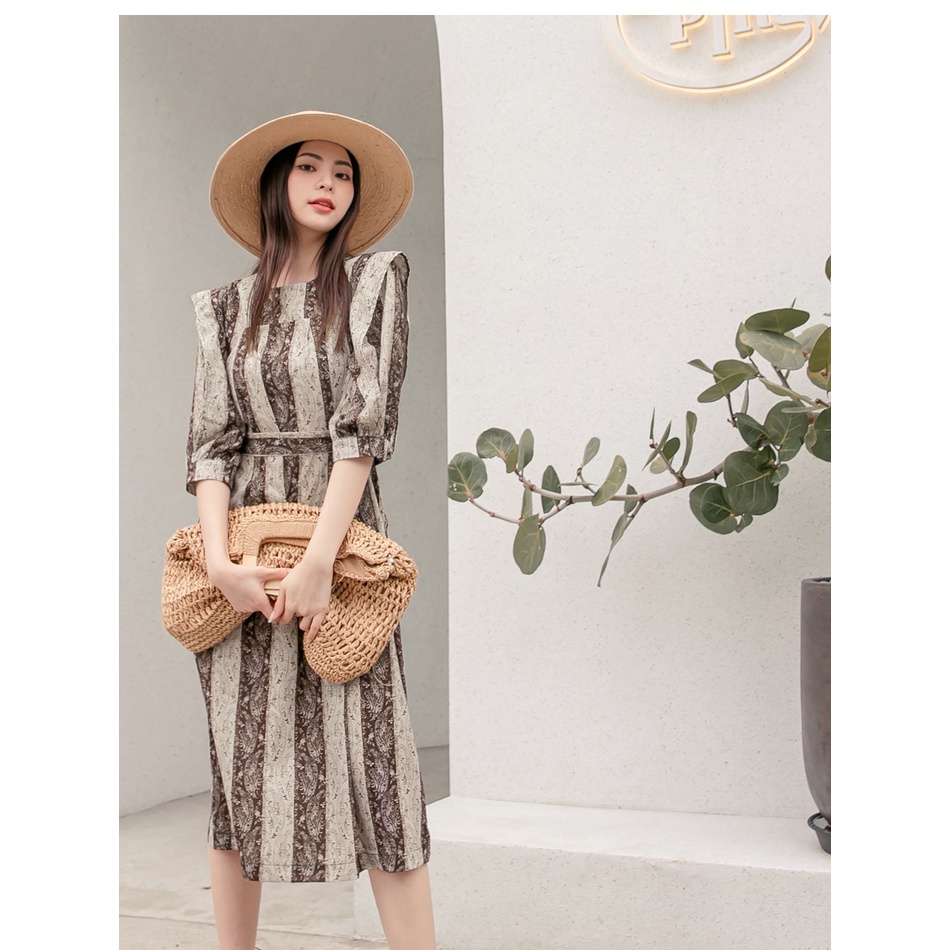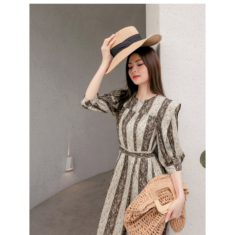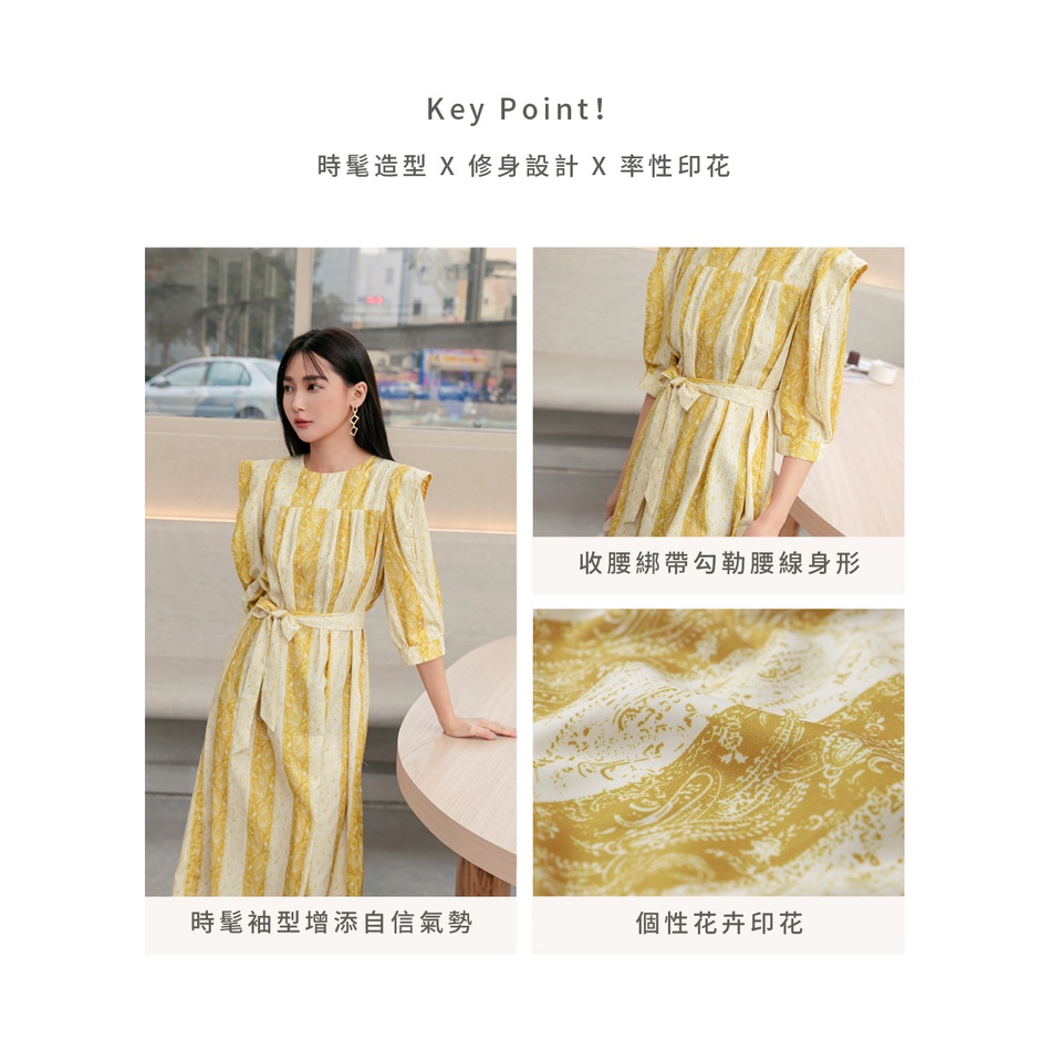 OB嚴選 撞色花卉印花寬肩袖收腰綁帶長洋裝 《DA9163》大尺碼/女裝/現貨芥黃,3L|芥黃,XL|芥黃,S|咖啡,XL|芥黃,L|咖啡,S|芥黃,2L|咖啡,3L|咖啡,2L|咖啡,M|芥黃,M|咖啡,LOB嚴選官方旗艦店