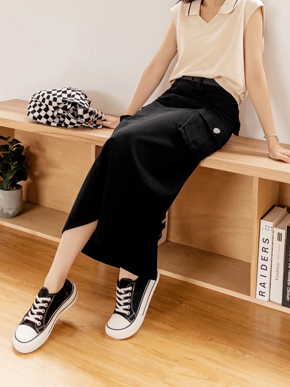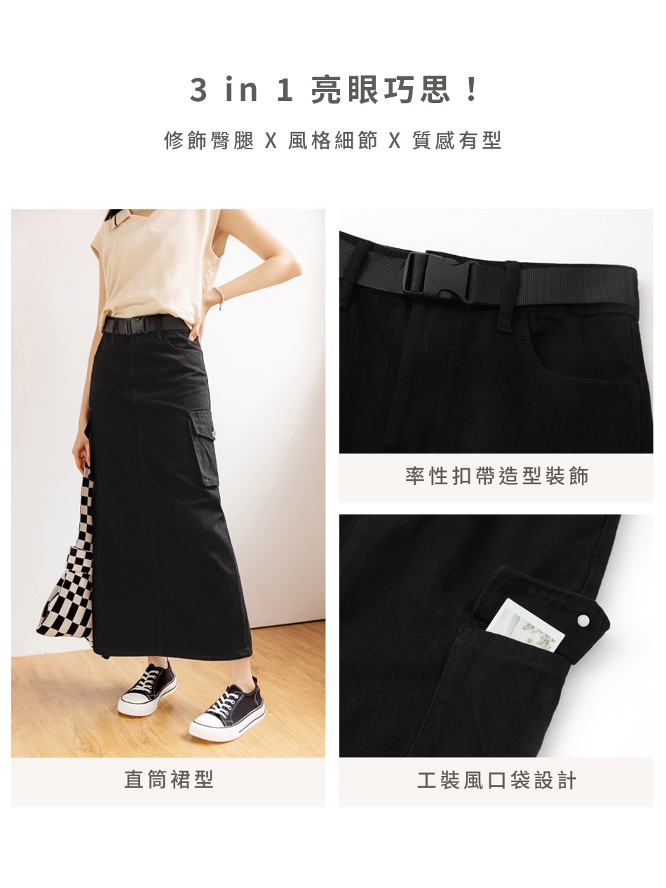 OB嚴選 棉質素色裝飾扣帶後開衩直筒長裙 《CA2763》大尺碼/現貨/女裝白,3L|黑,S|黑,L|黑,XL|白,S|白,M|白,2L|黑,2L|白,L|白,4L|黑,M|黑,4L|白,XL|黑,3LOB嚴選官方旗艦店