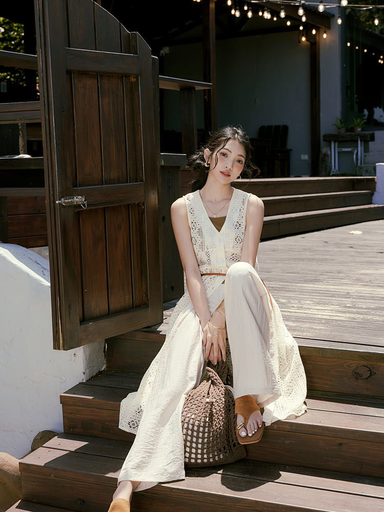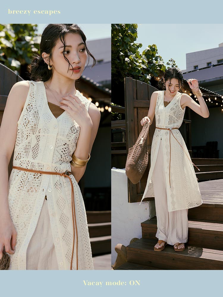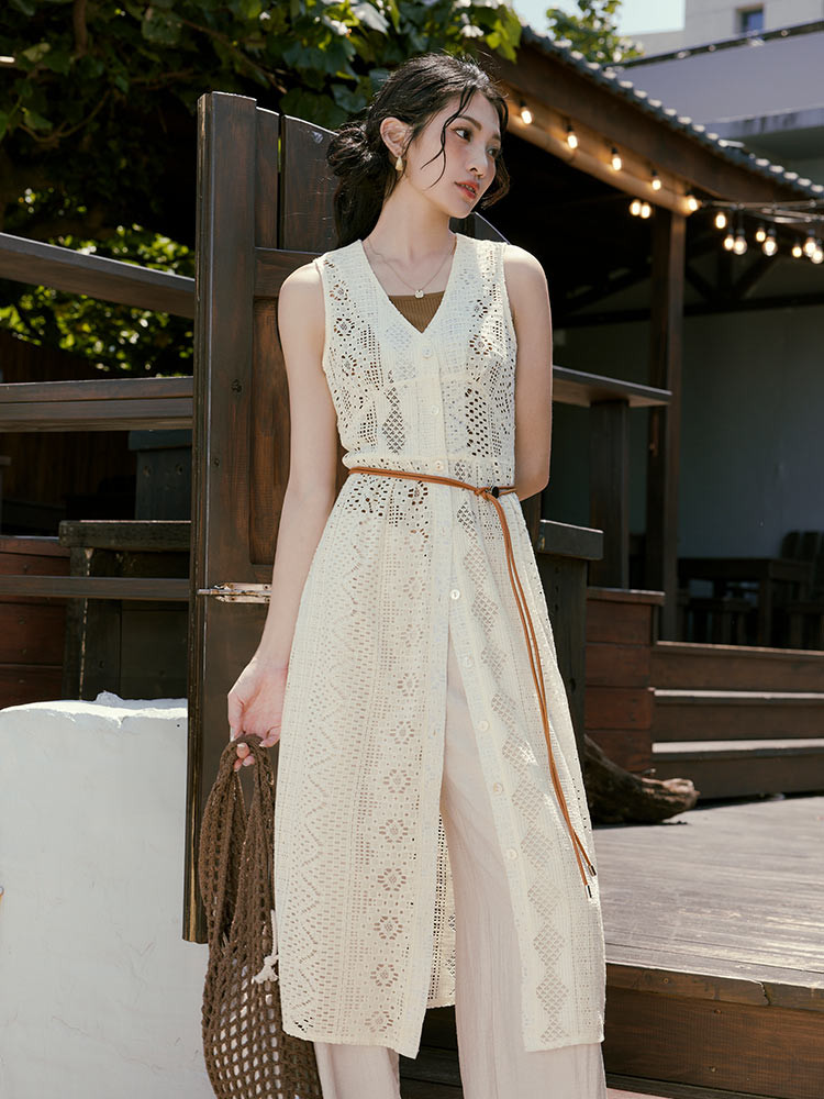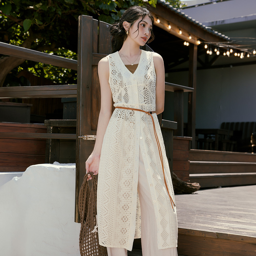OB嚴選 幾何鏤空蕾絲排釦罩衫洋裝 《DA10492》米黃,M|米黃,L|米黃,XL|米黃,2L|米黃,3L|黑,M|黑,L|黑,XL|黑,2L|黑,3LOB嚴選官方旗艦店
