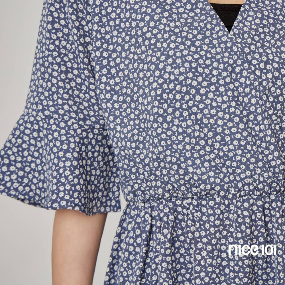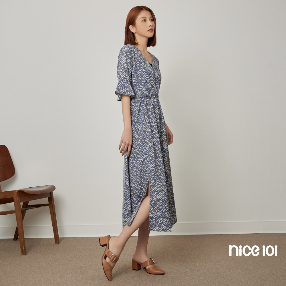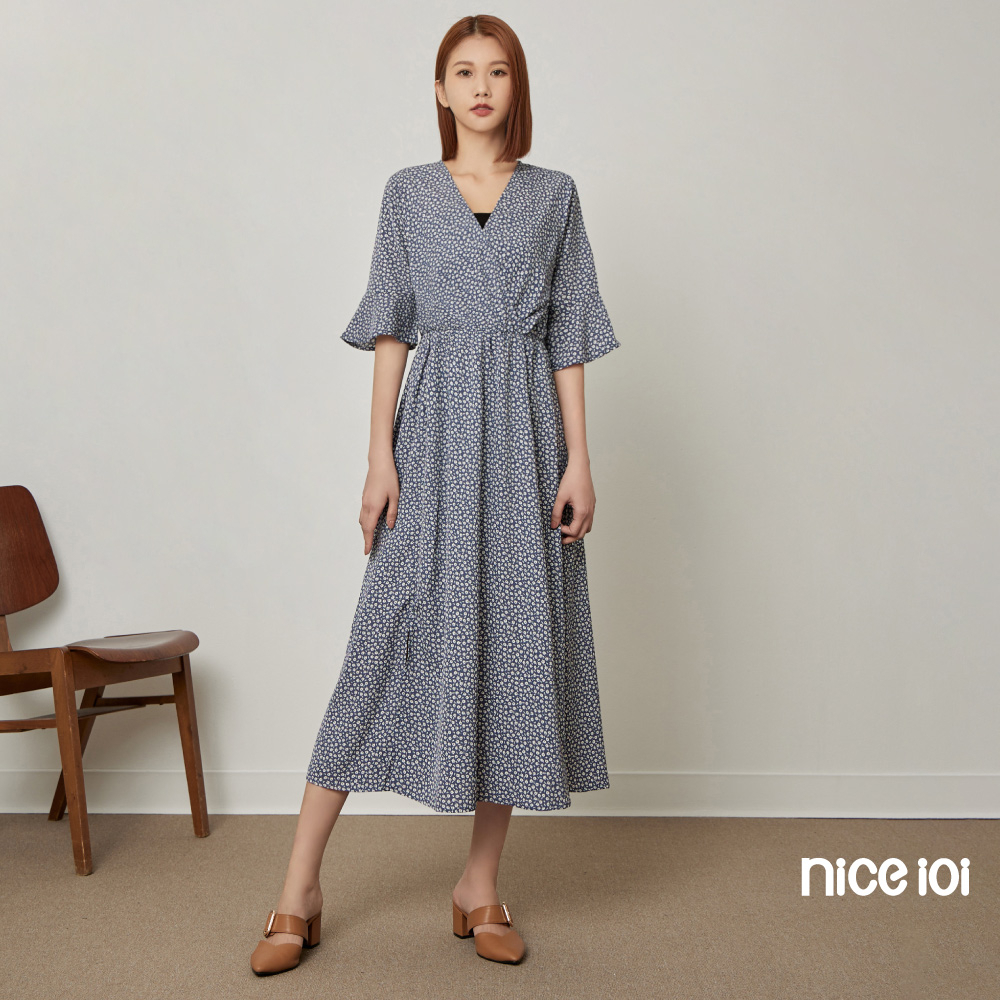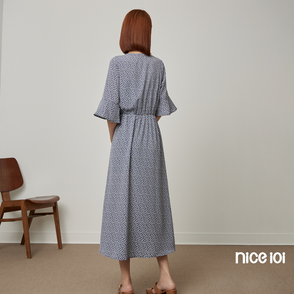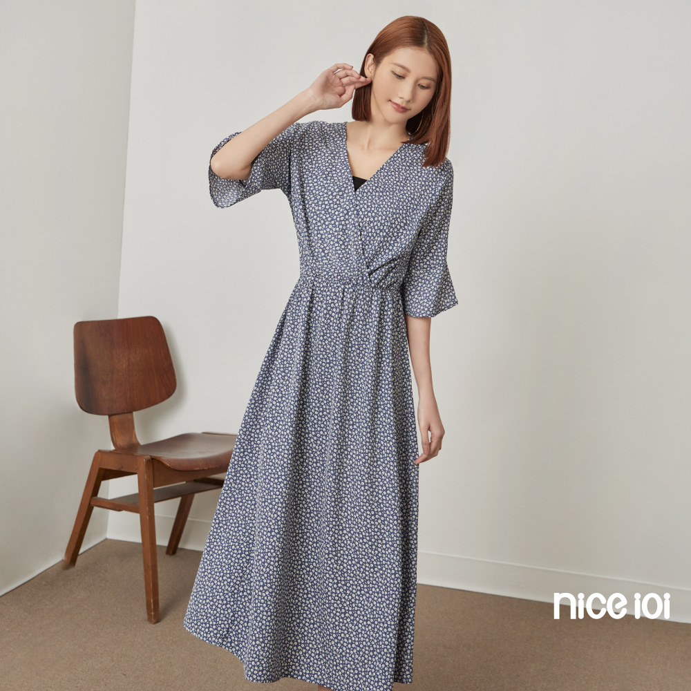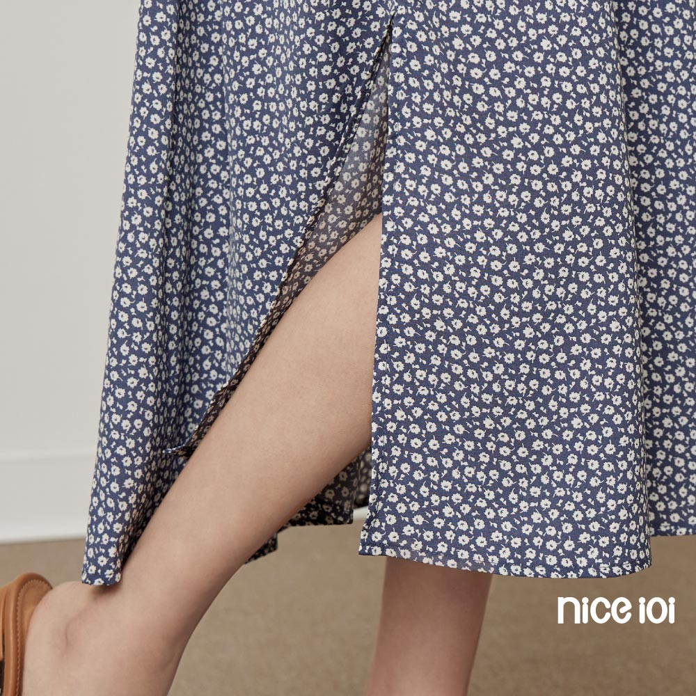 niceioi【特惠】復古小白花V領開衩洋裝 長洋裝 V領洋裝 碎花洋裝 女裝藍,S|藍,M|藍,L|藍,XLniceioi 官方旗艦店