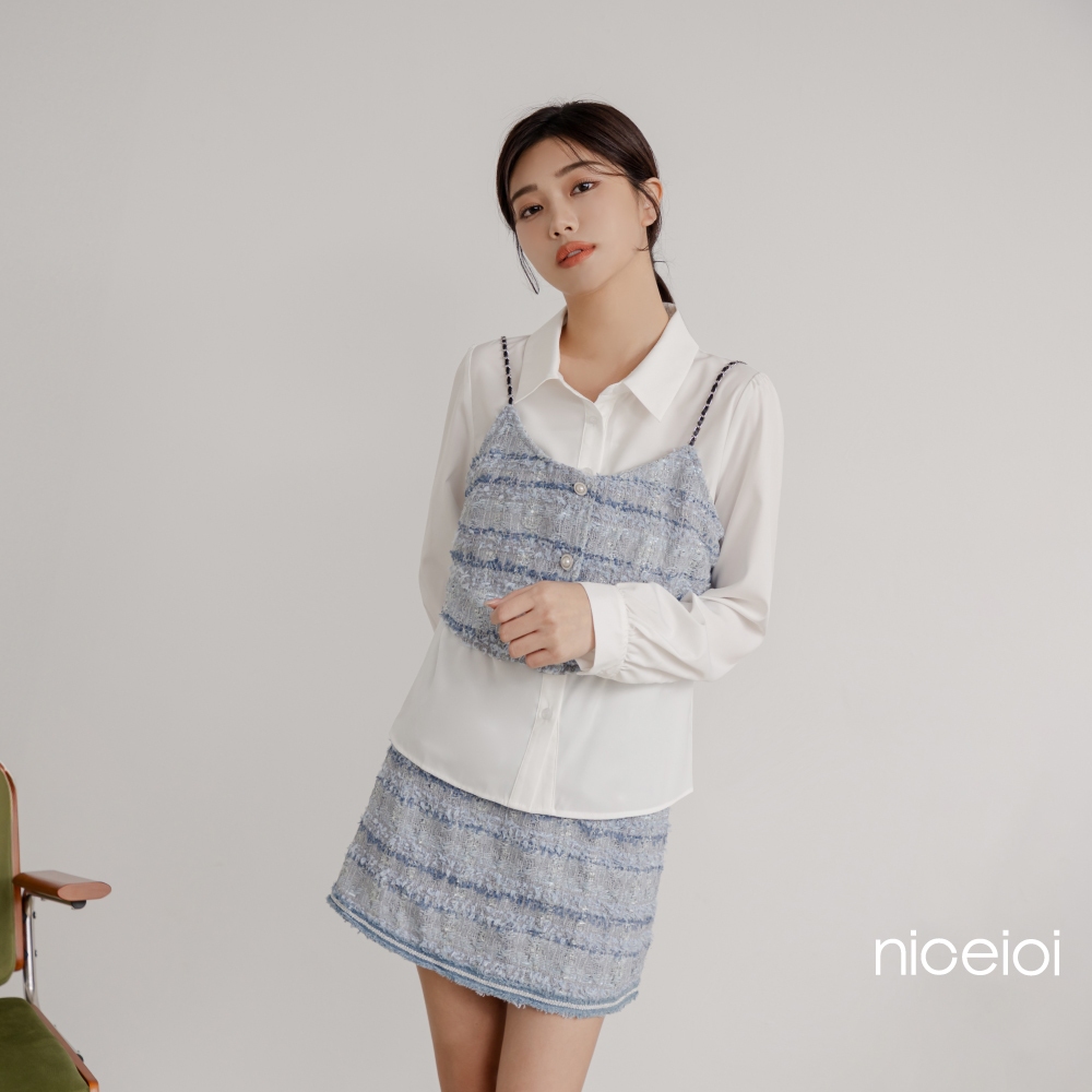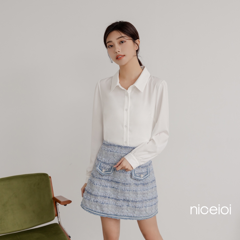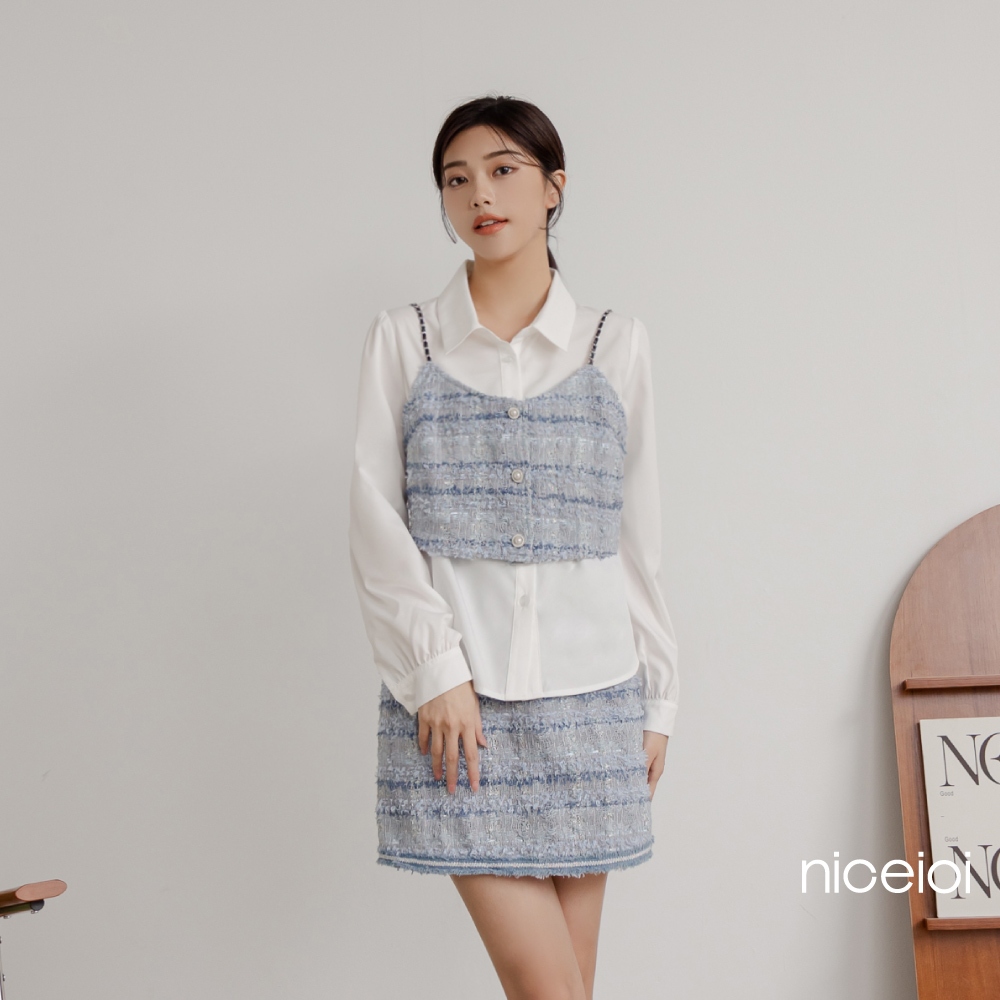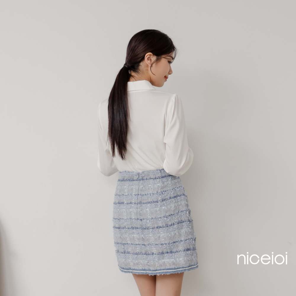 niceioi【特惠】時裝小香毛邊A字短裙 女裝藍,S|藍,M|藍,L|藍,XLniceioi 官方旗艦店