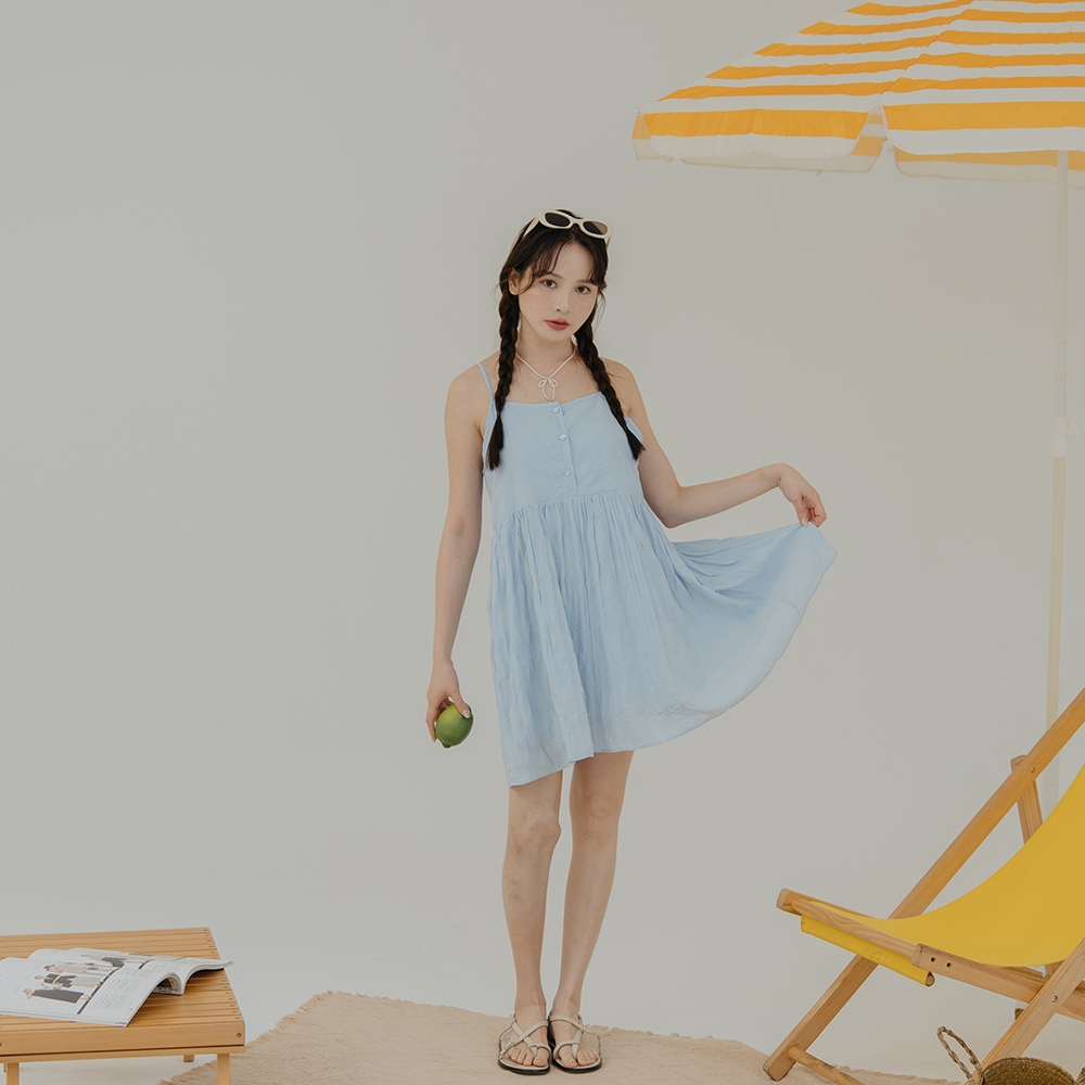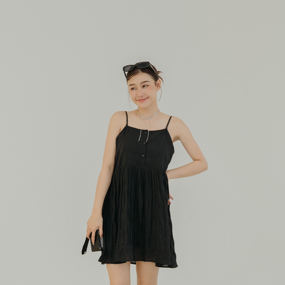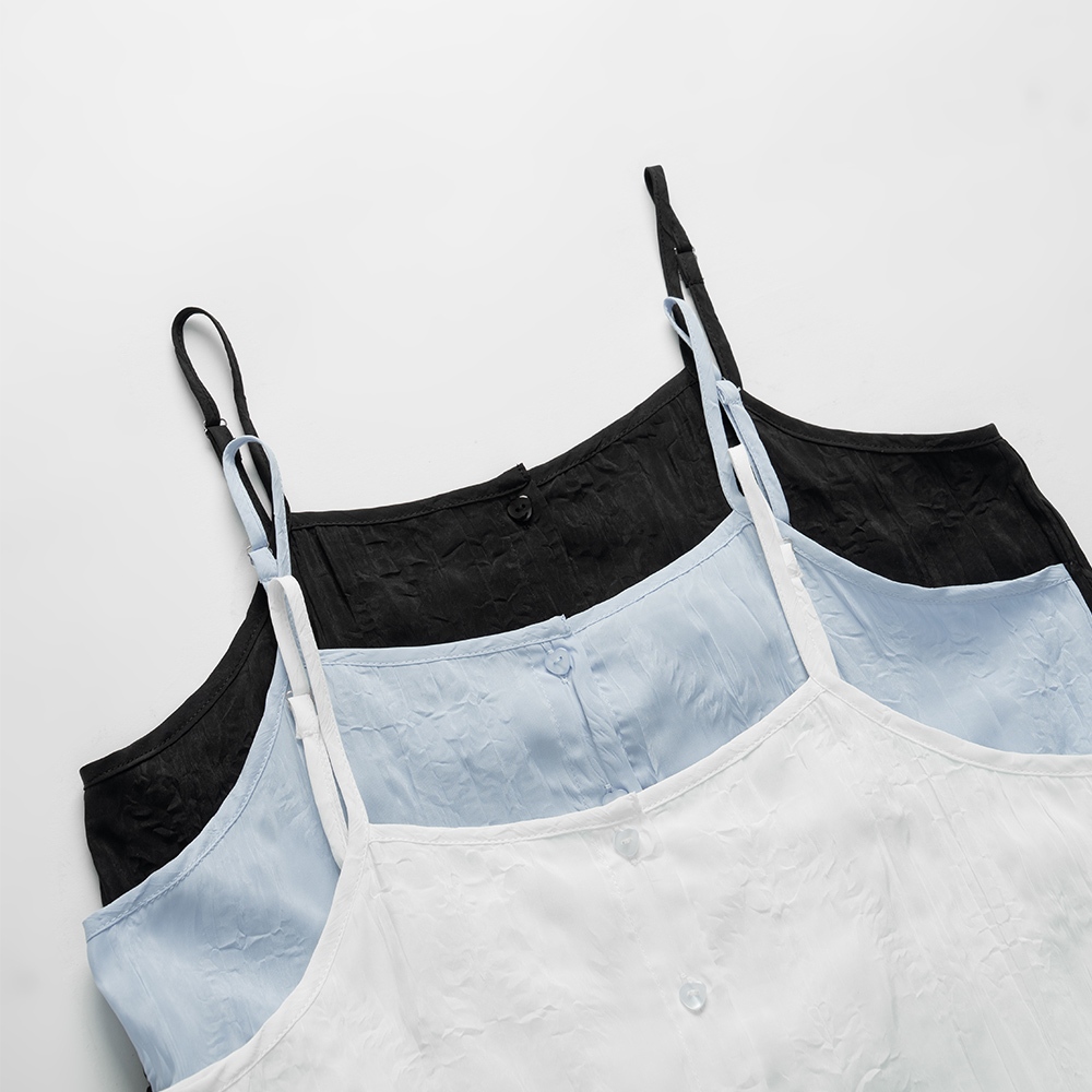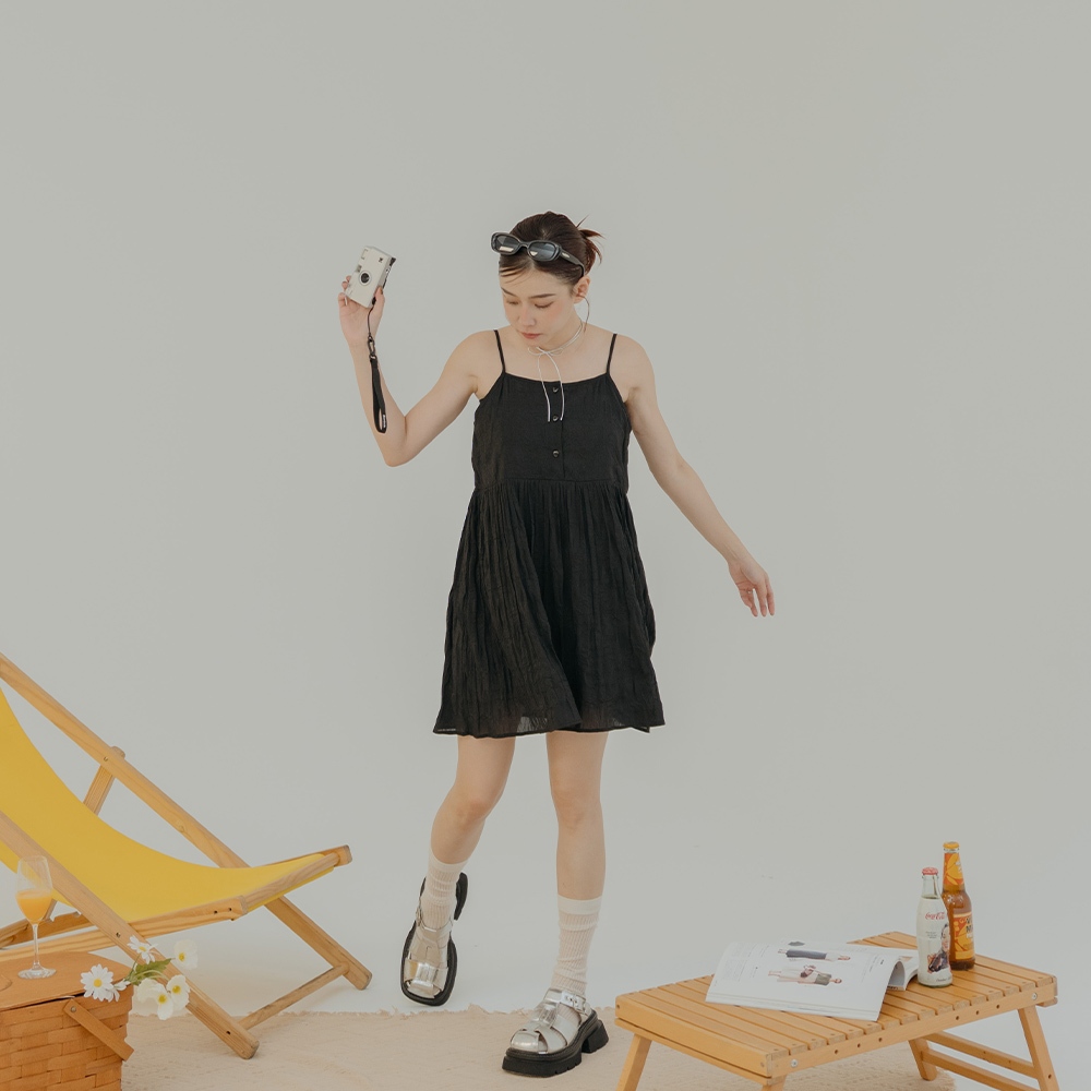 QUEENSHOP_ S 女裝 微光澤皺皺紋理細肩短洋裝 三色售 現+預 【01087087】黑|白|藍QUEENSHOP