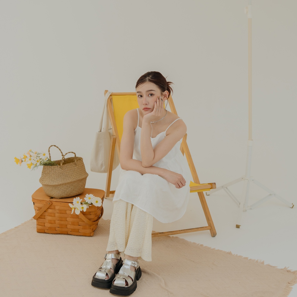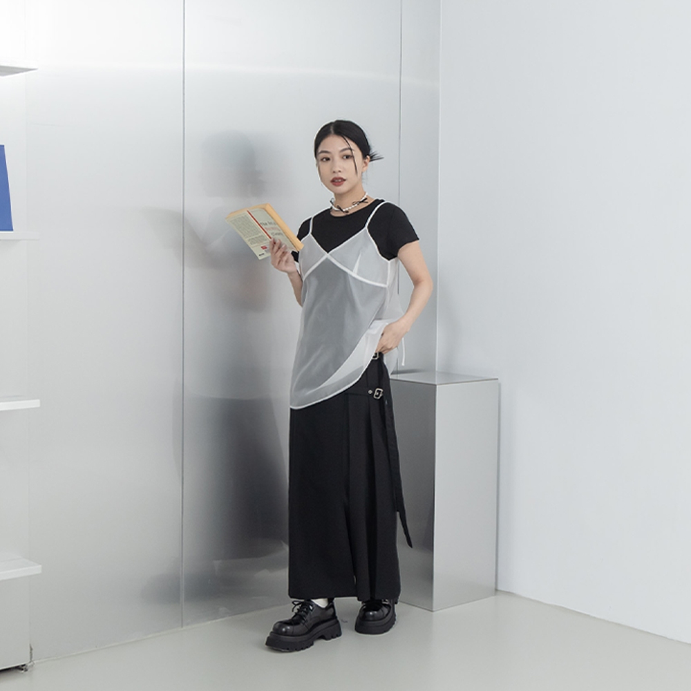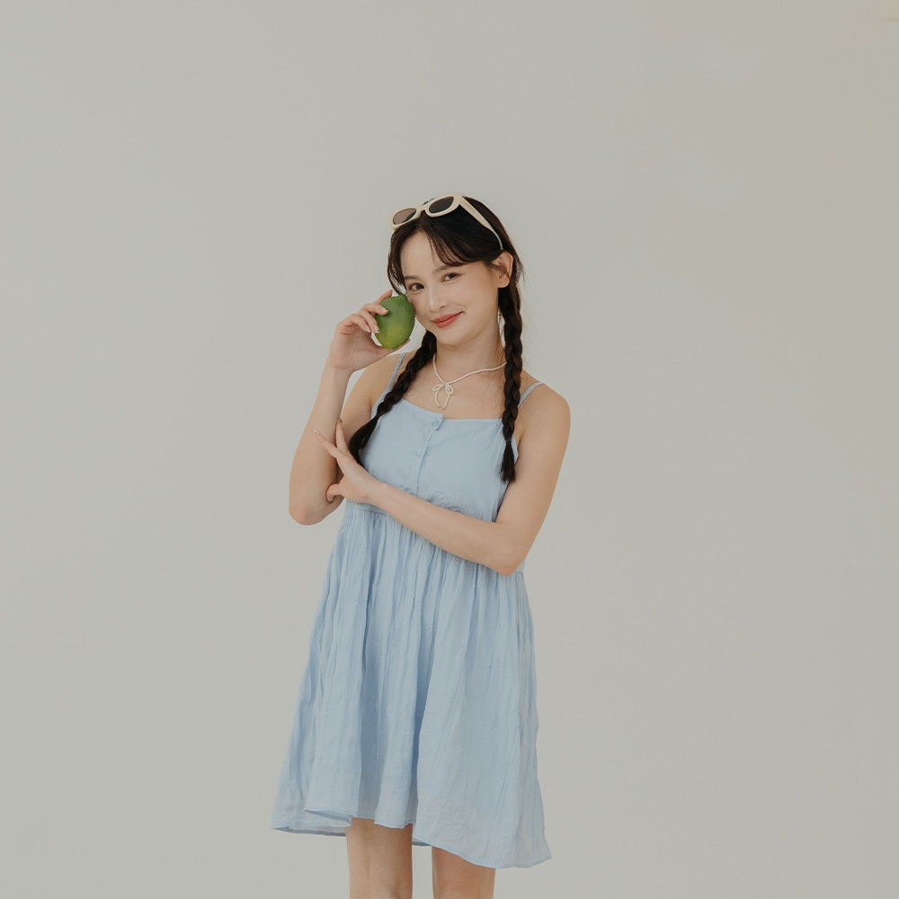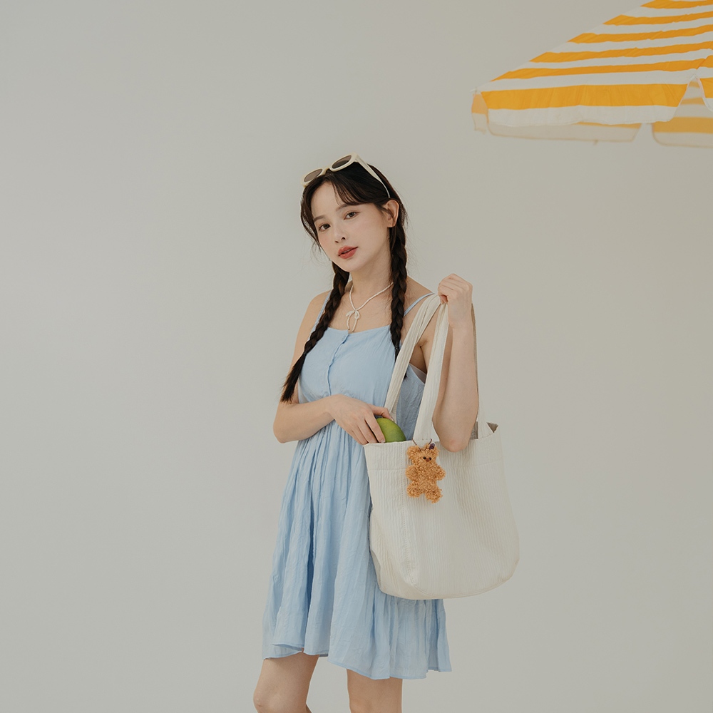 QUEENSHOP_ S 女裝 微光澤皺皺紋理細肩短洋裝 三色售 現+預 【01087087】黑|白|藍QUEENSHOP