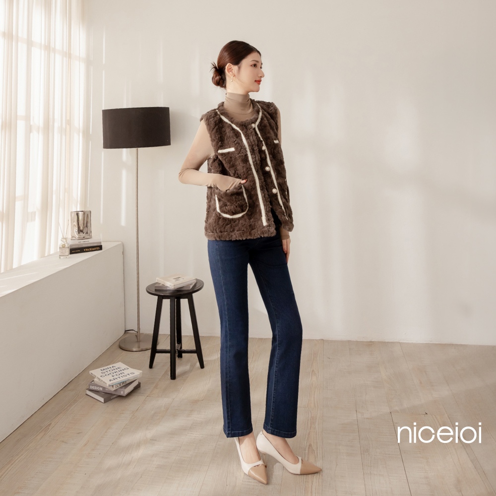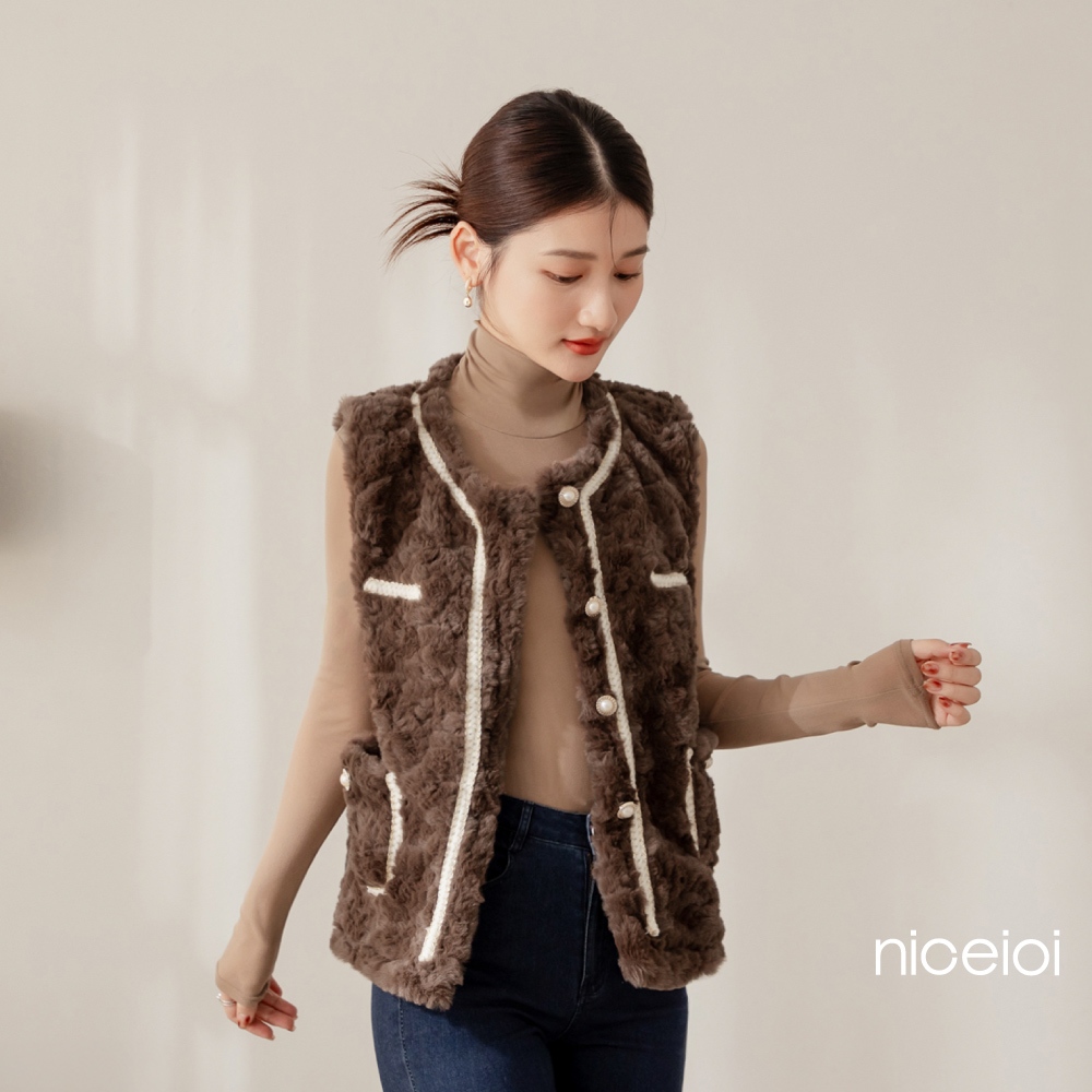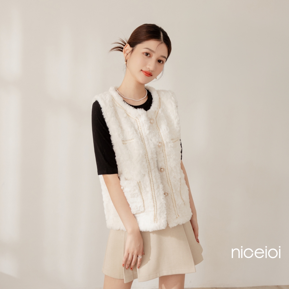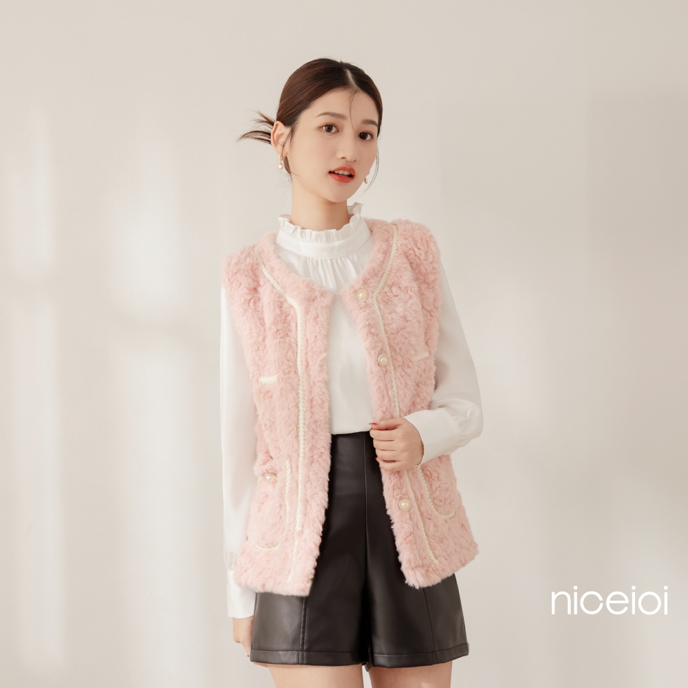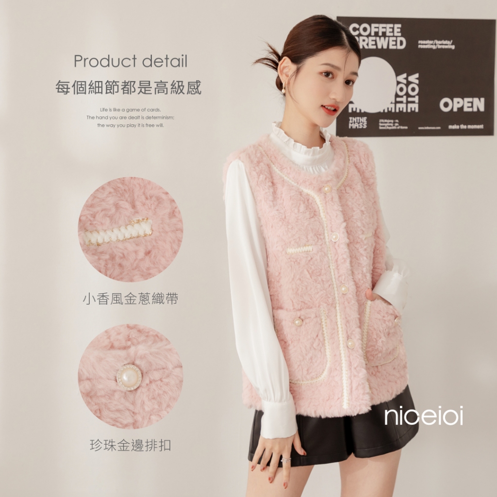 niceioi【特惠】小香風背心 背心 保暖背心 白色 [富貴千金貂毛珍珠釦小香保暖背心] 必敗選品 女裝小香風保暖背心-藍色,F|小香風保暖背心-咖色,F|小香風保暖背心-白色,F|小香風保暖背心-粉色,FVestsniceioi 官方旗艦店
