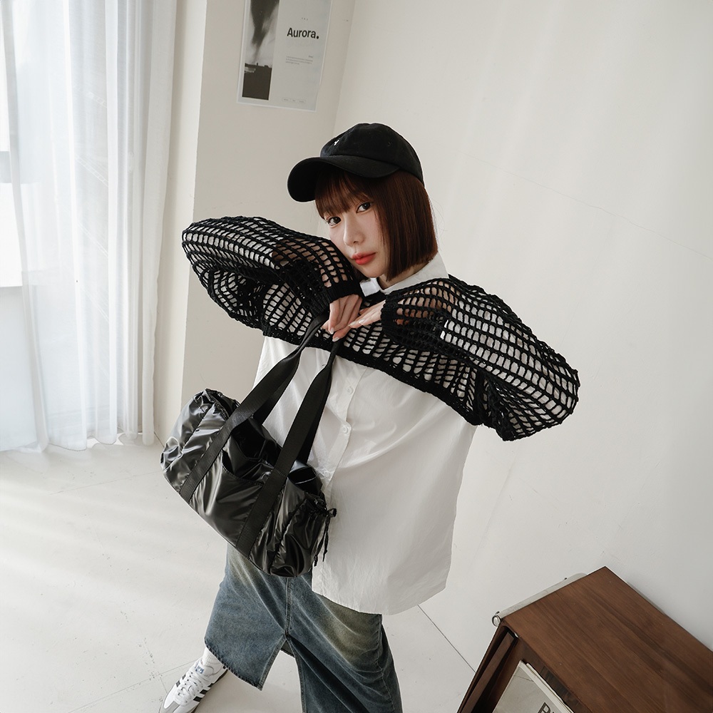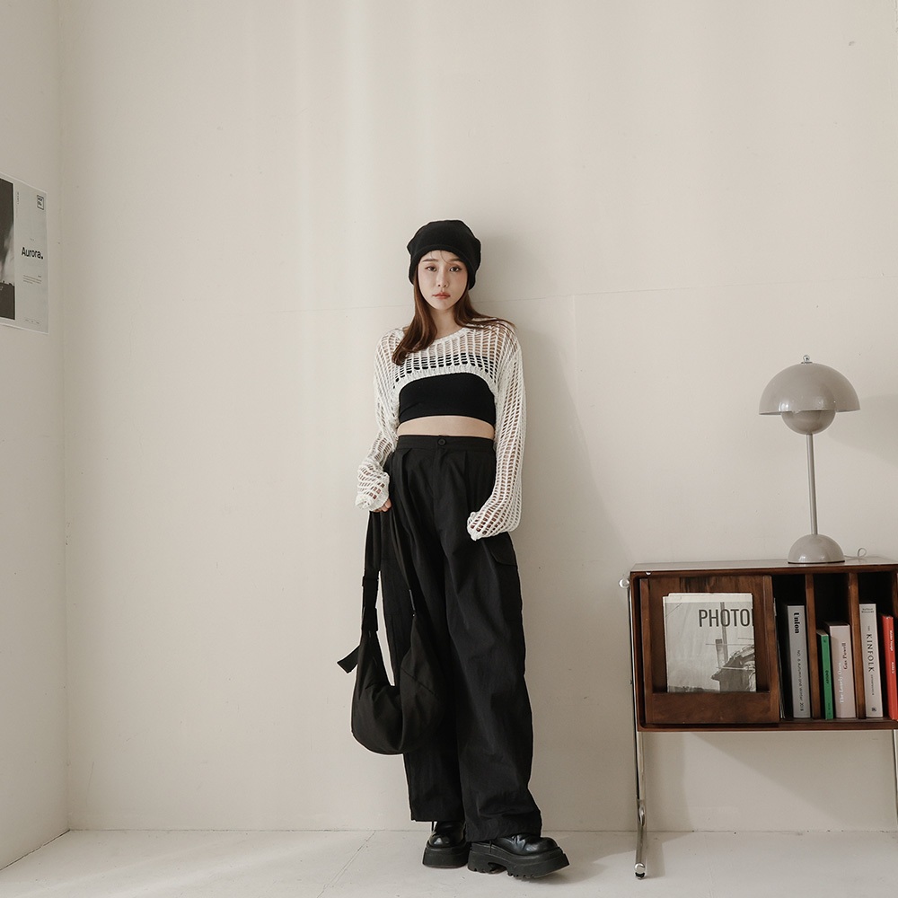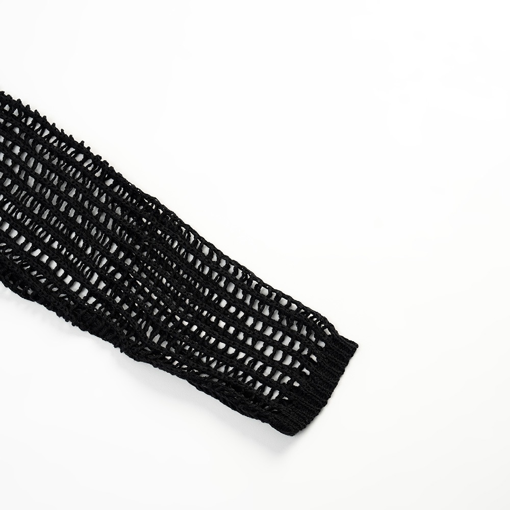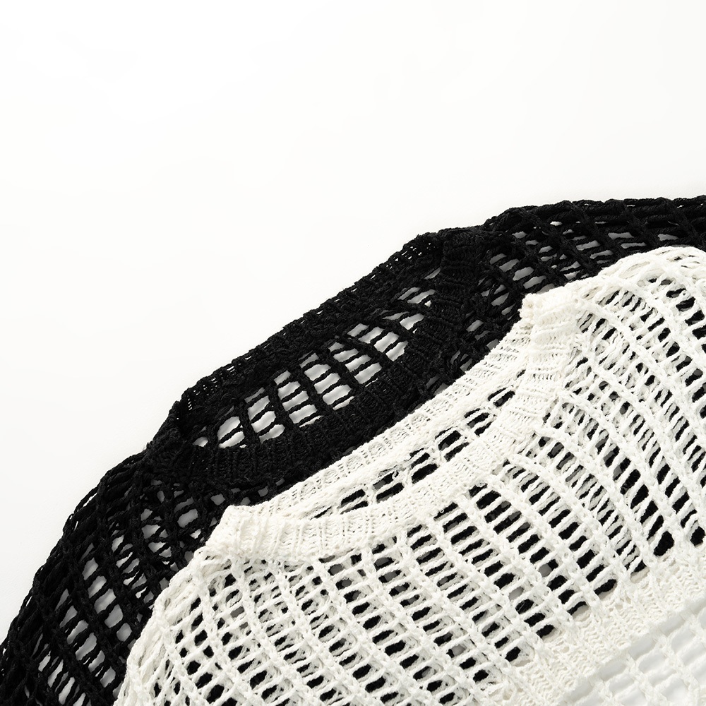 QUEENSHOP_ S 女裝 長袖 洞洞鏤空針織短版罩衫上衣 兩色售 現+預 【01013429】黑|米白QUEENSHOP