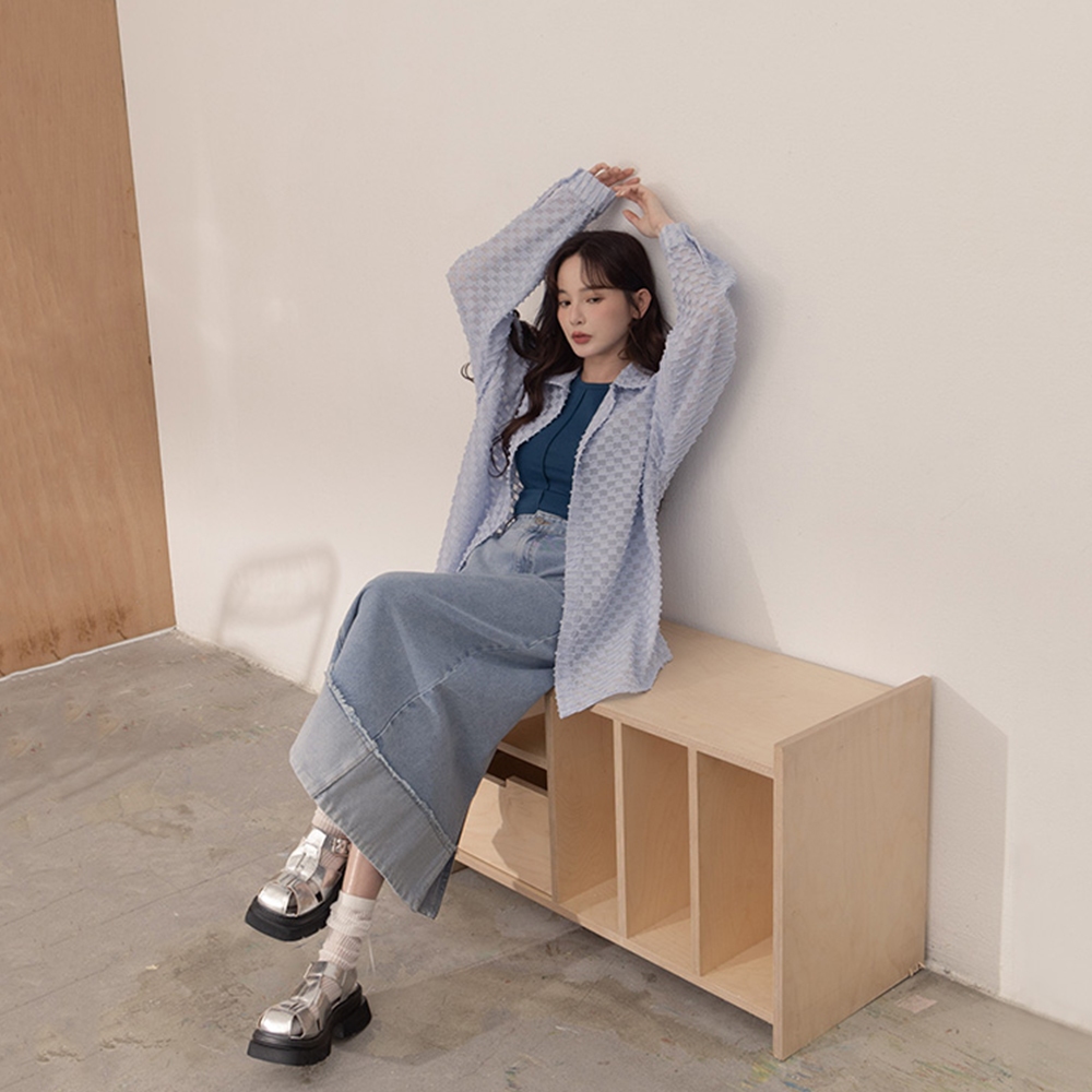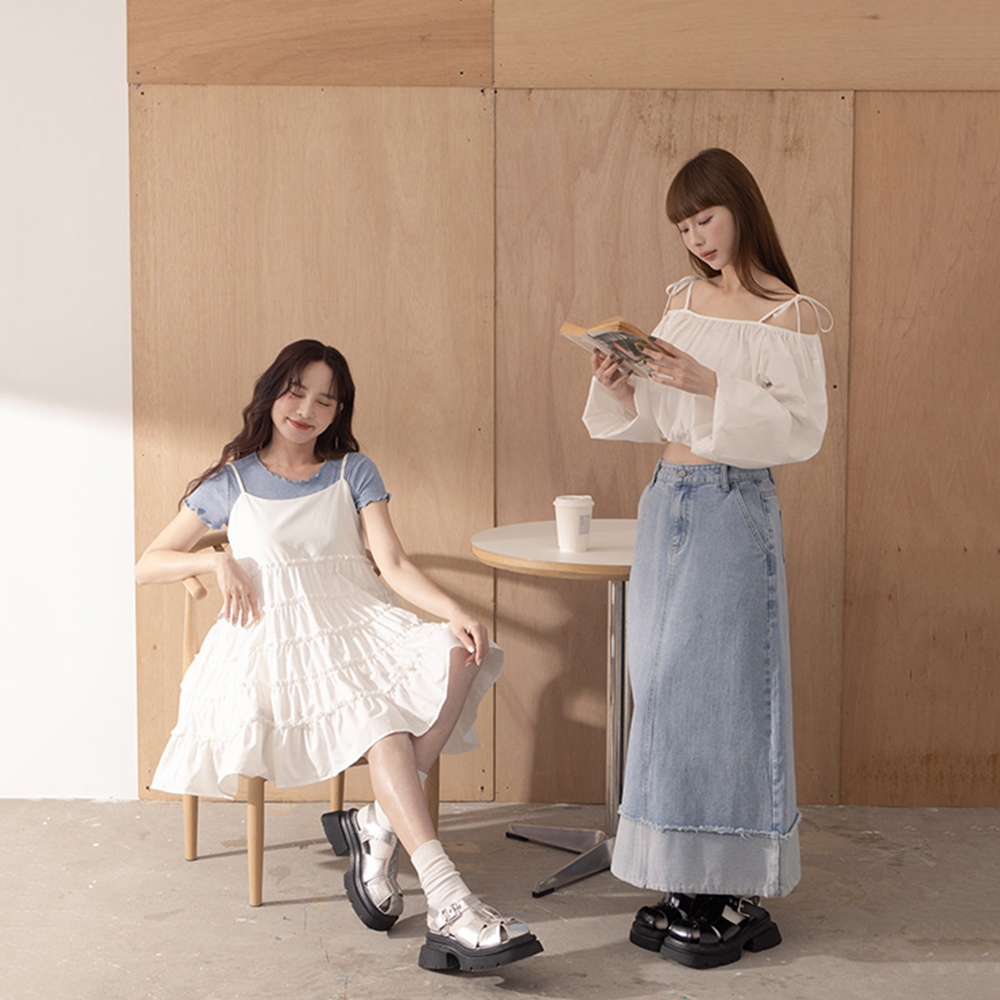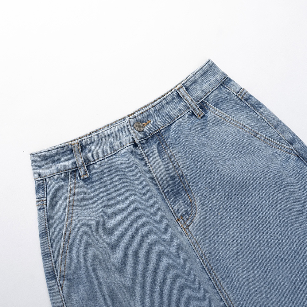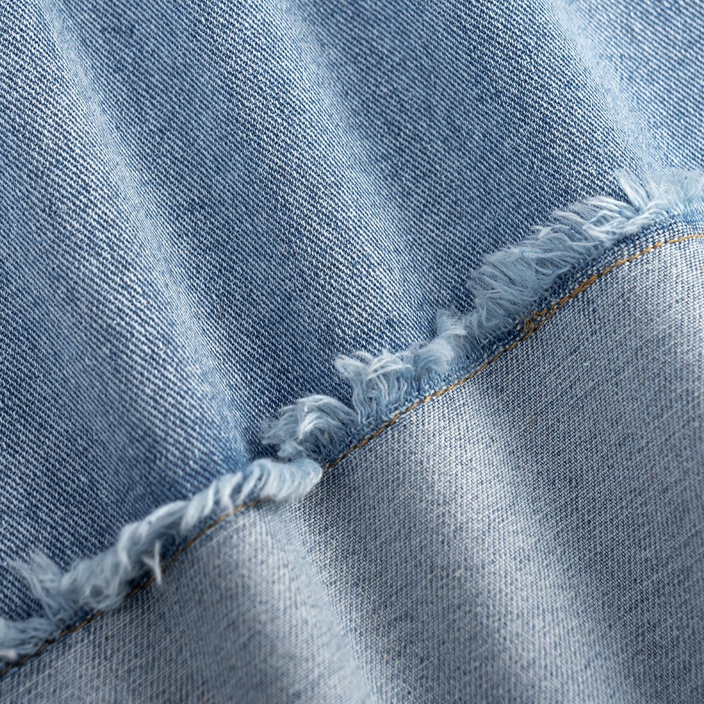 QUEENSHOP_ S 女裝 下擺反折剪接鬚邊牛仔裙 S/M/L 現+預 【03021600】S|M|LQUEENSHOP