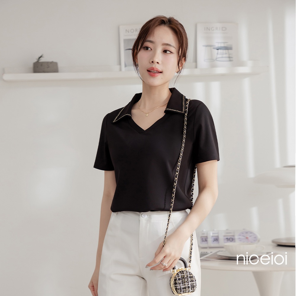 niceioi Polo衫 短袖 短袖t恤 黑色 [羅馬假期小香織帶POLO領上衣] S-XXL 超值推薦 大尺碼女裝polo衫-白,S|polo衫-白,XL|polo衫-白,XXL|polo衫-黑,XXL|polo衫-白,M|polo衫-黑,S|polo衫-黑,M|polo衫-黑,XL|polo衫-黑,L|polo衫-白,LT-shirtsniceioi 官方旗艦店