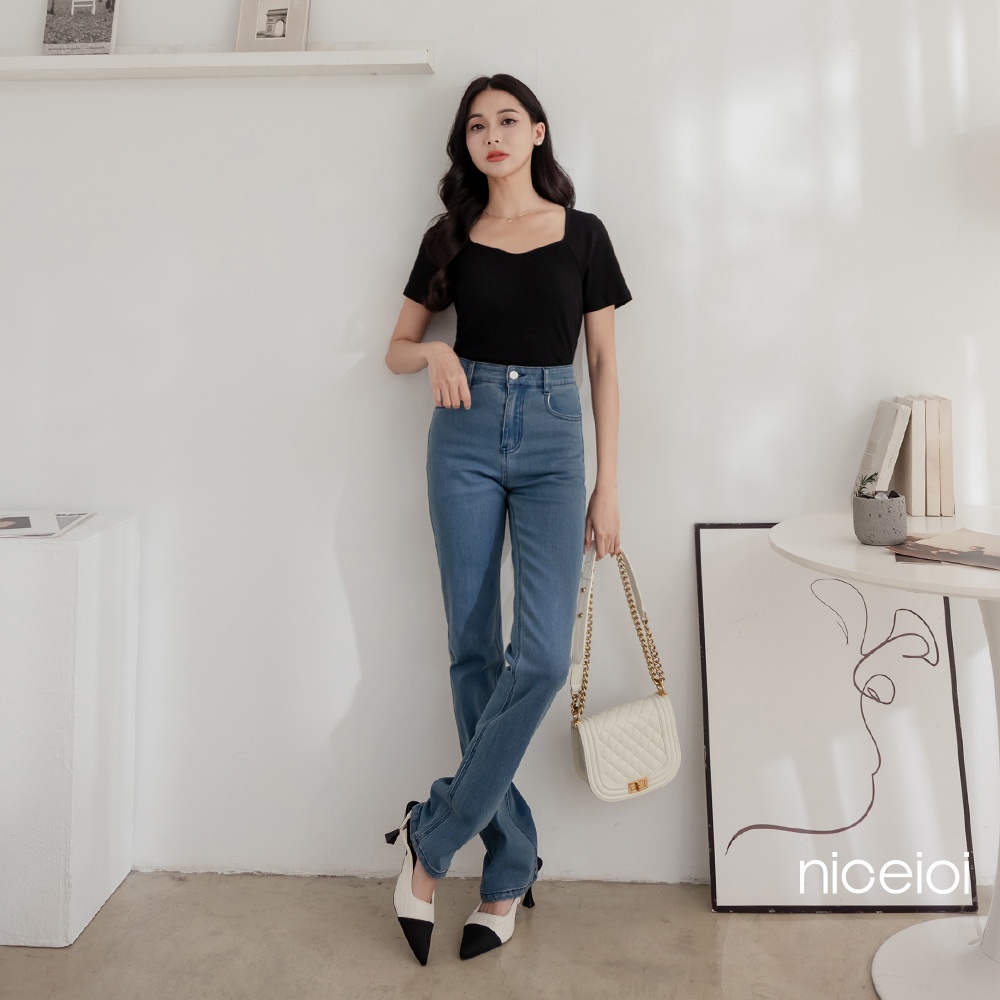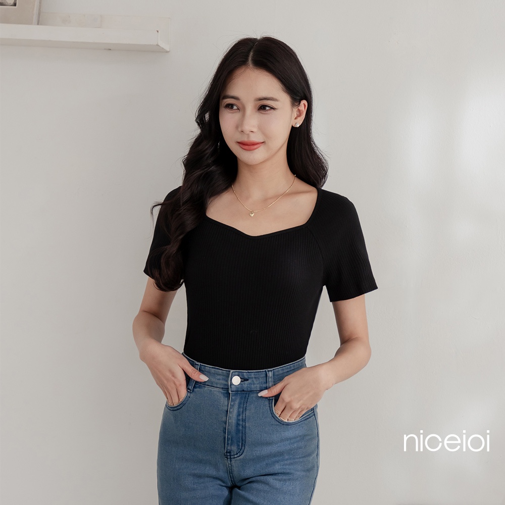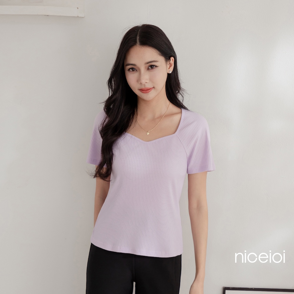 niceioi 爭奇鬥艷盾型領坑條羅紋輕量上衣 (共3色) 女裝綠,M|紫,S|紫,M|綠,XL|紫,L|黑,S|黑,M|黑,L|黑,XL|綠,S|綠,L|紫,XLT-shirtsniceioi 官方旗艦店