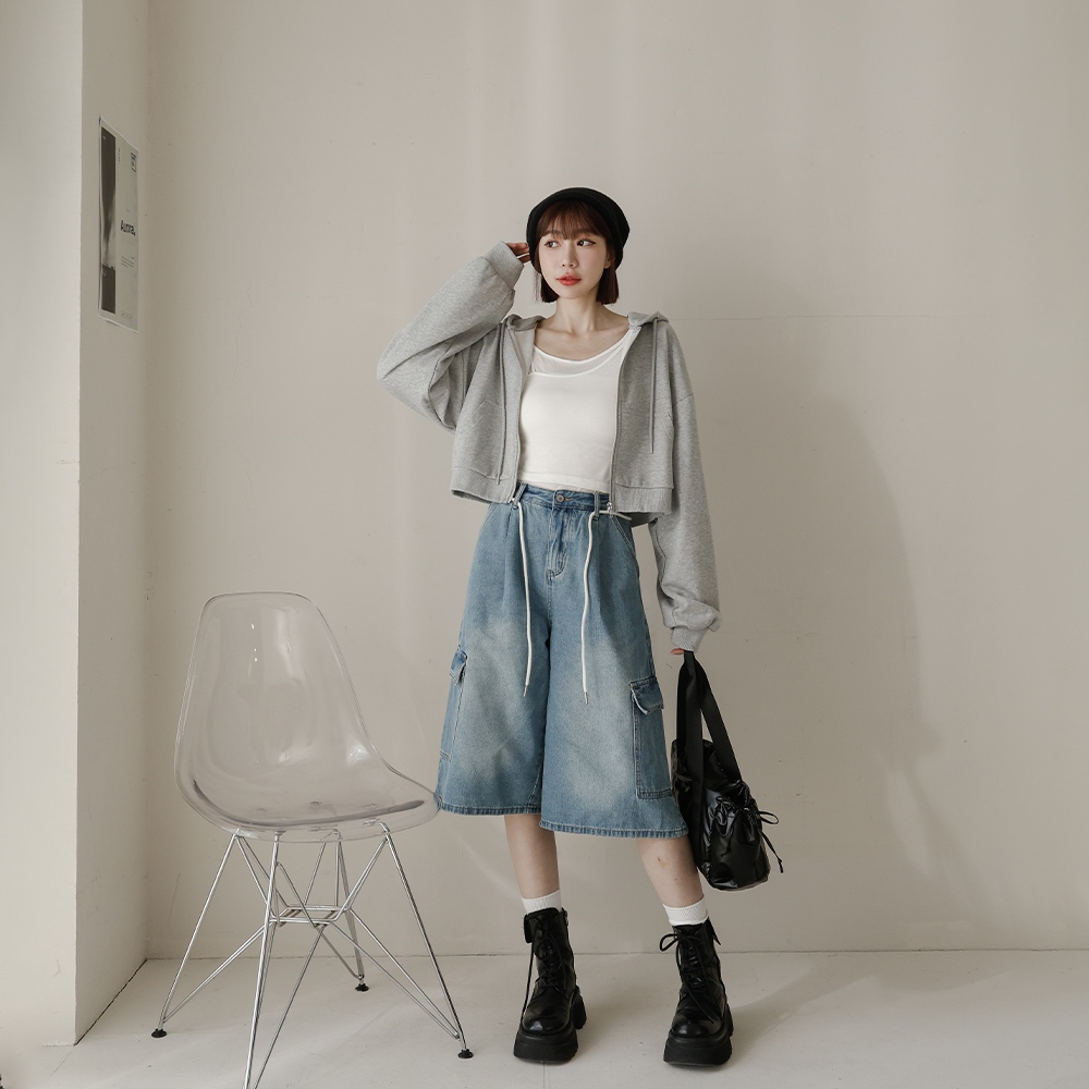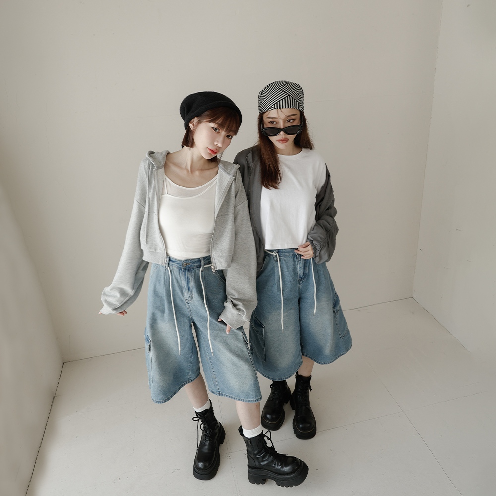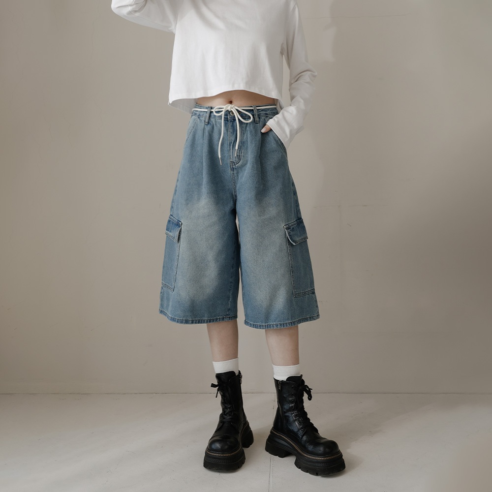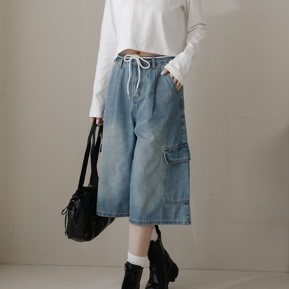 QUEENSHOP_ S 女裝 低腰復古附綁繩牛仔七分褲 S/M/L 現+預 【04011801】L|S|MQUEENSHOP