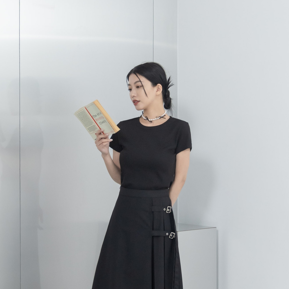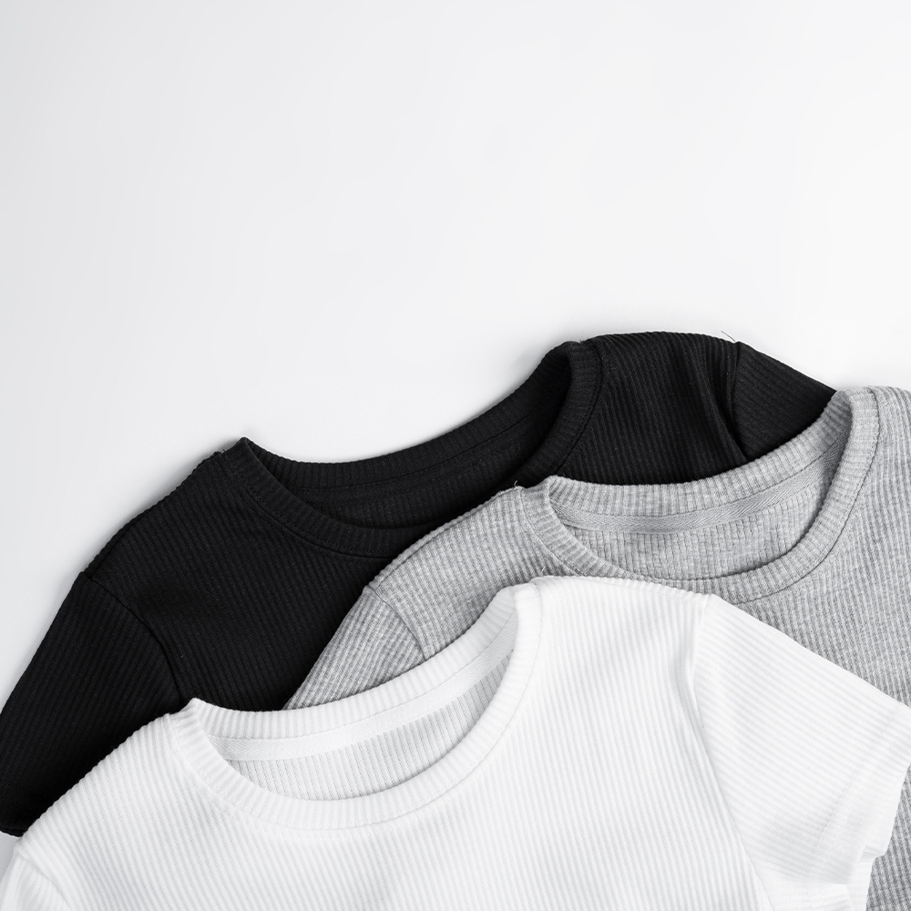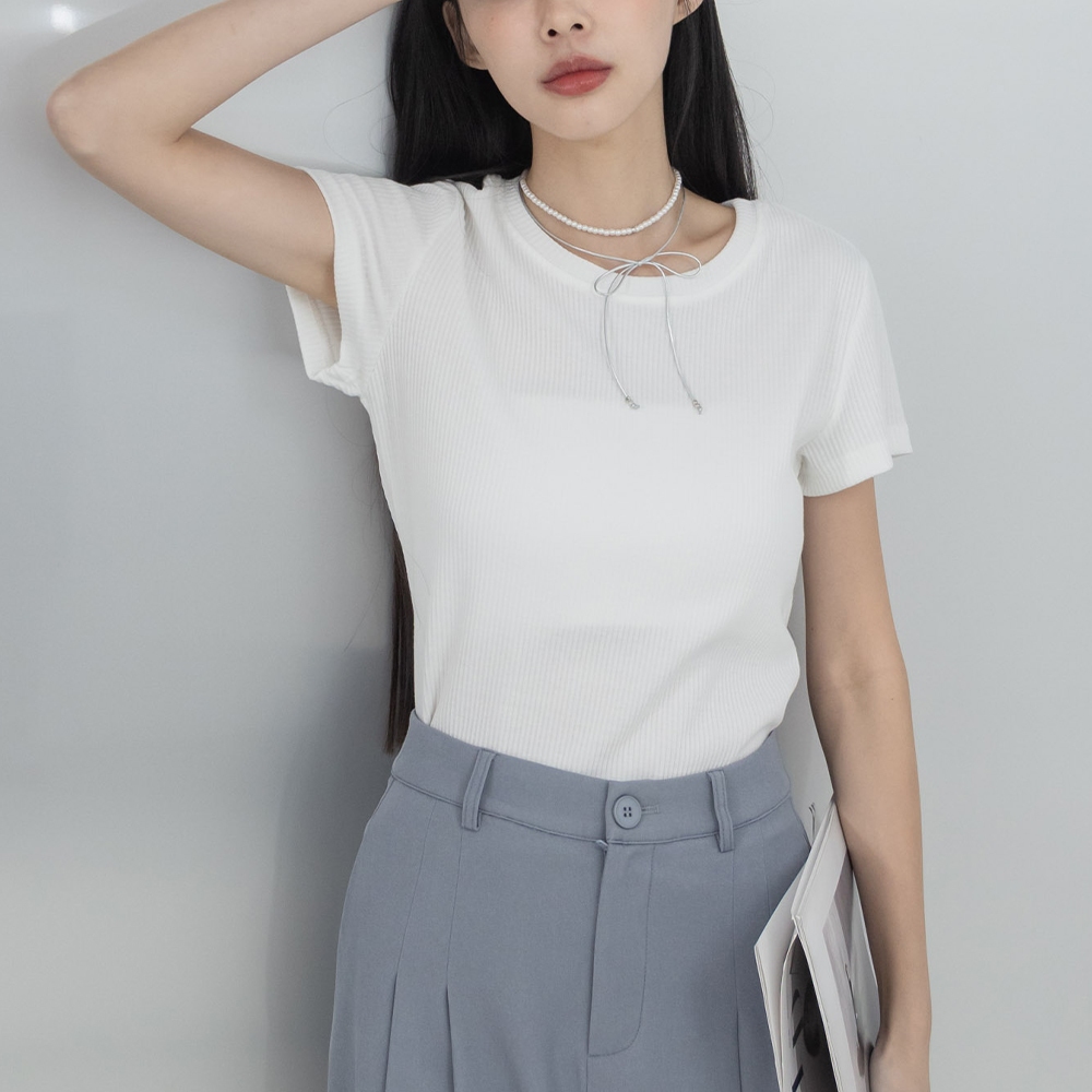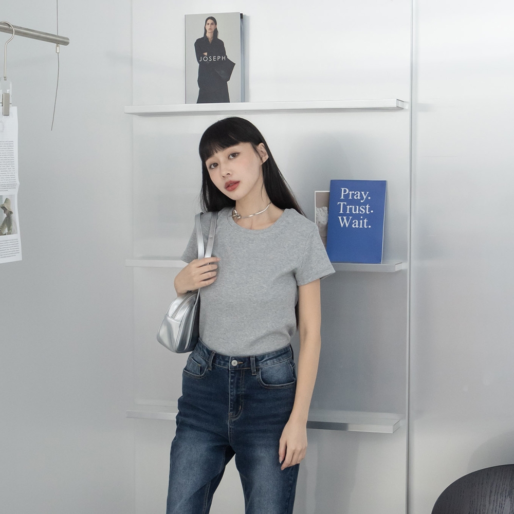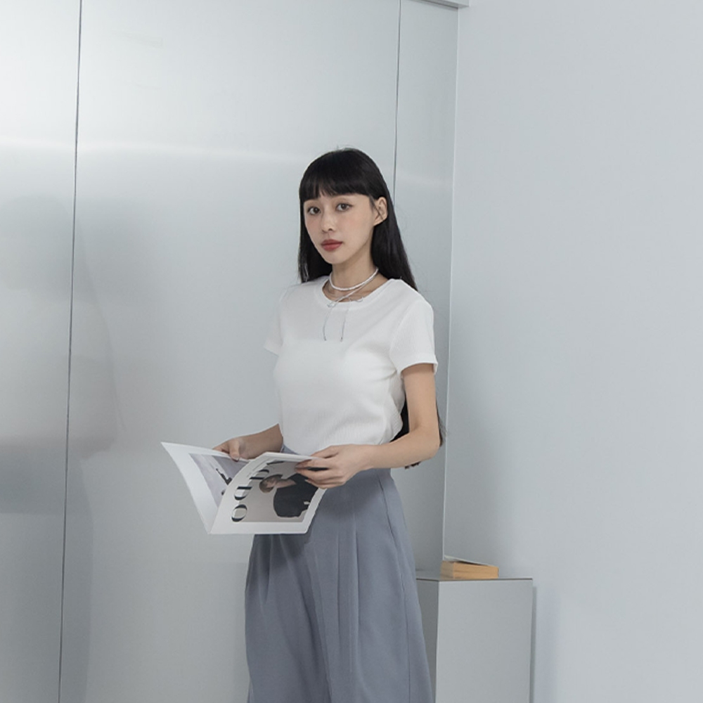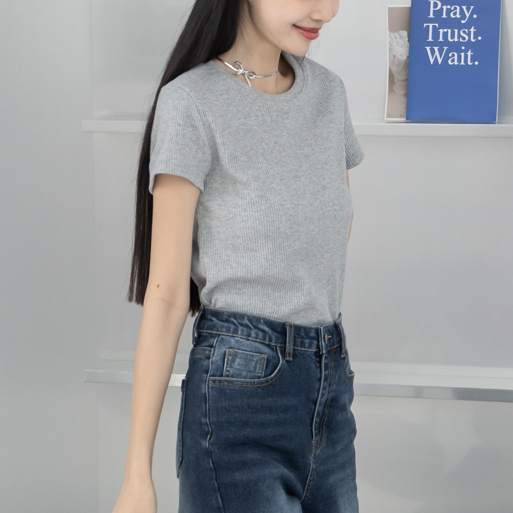 QUEENSHOP_ S 女裝 短袖 基本素面羅紋圓領純棉短袖上衣 三色售 現+預 【01190207】黑|白|花灰T-shirtsQUEENSHOP