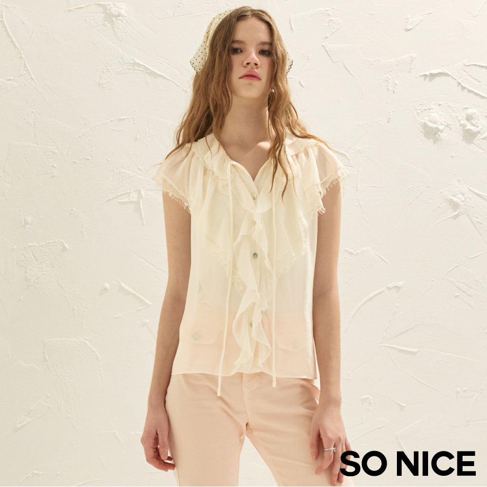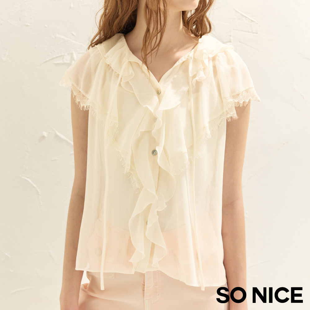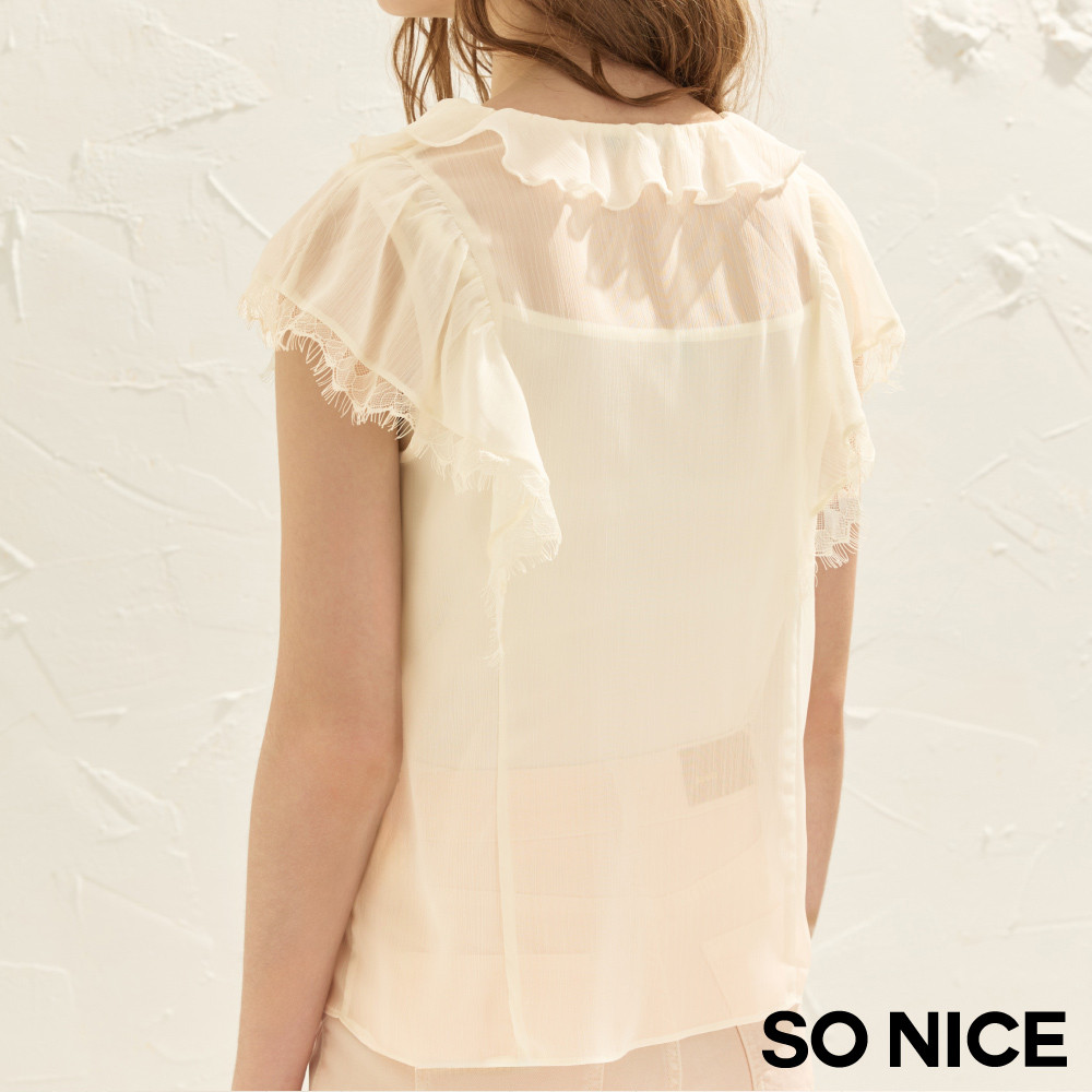 SO NICE 法式優雅荷葉領小蓋袖楊柳雪紡上衣|都會時尚女裝【75531028】米,34(XS)|米,36(S)|米,38(M)|米,40(L)|米,42(XL)OthersSO NICE 官方旗艦店