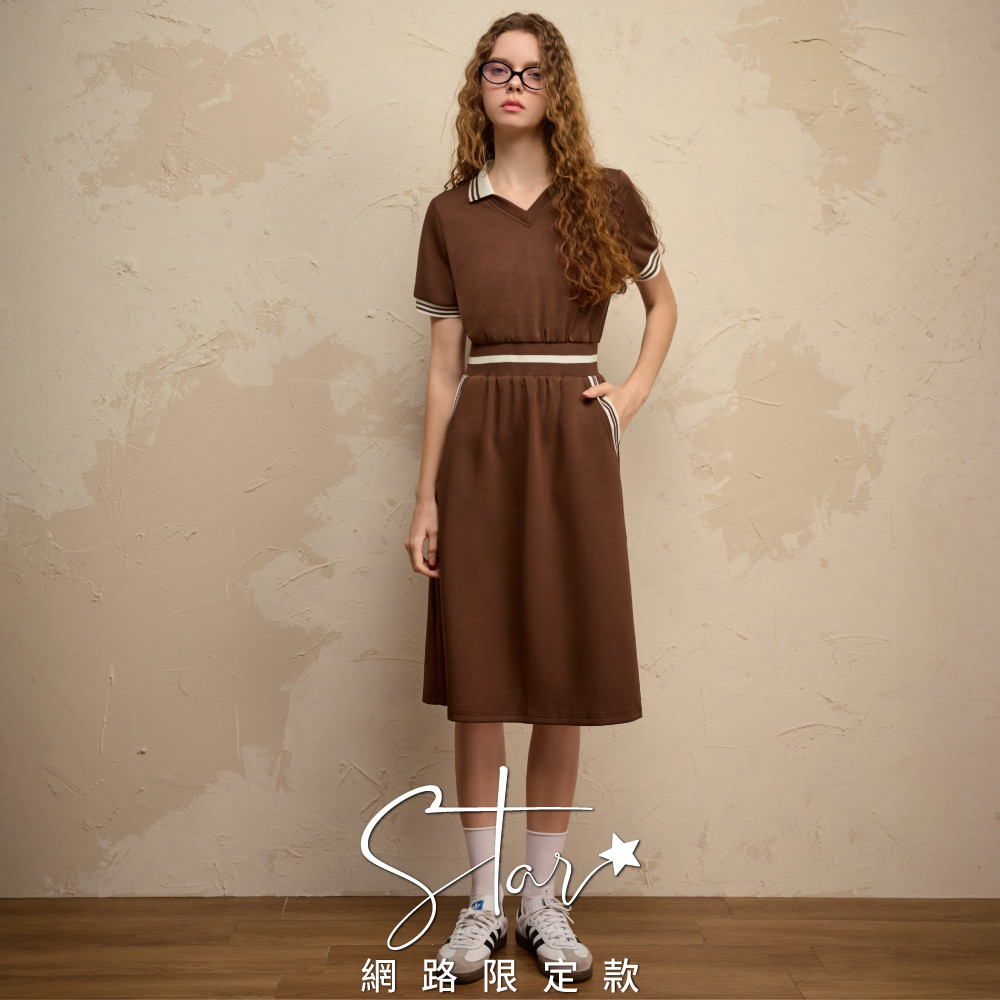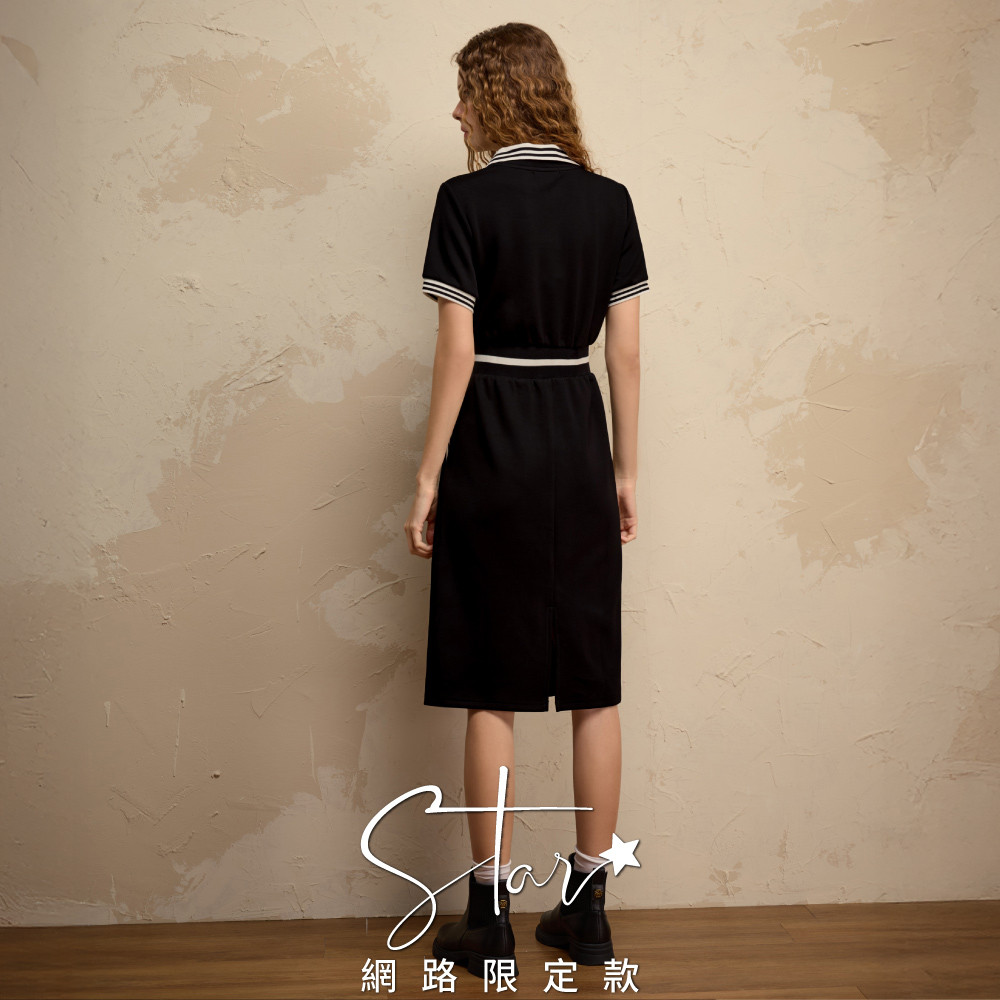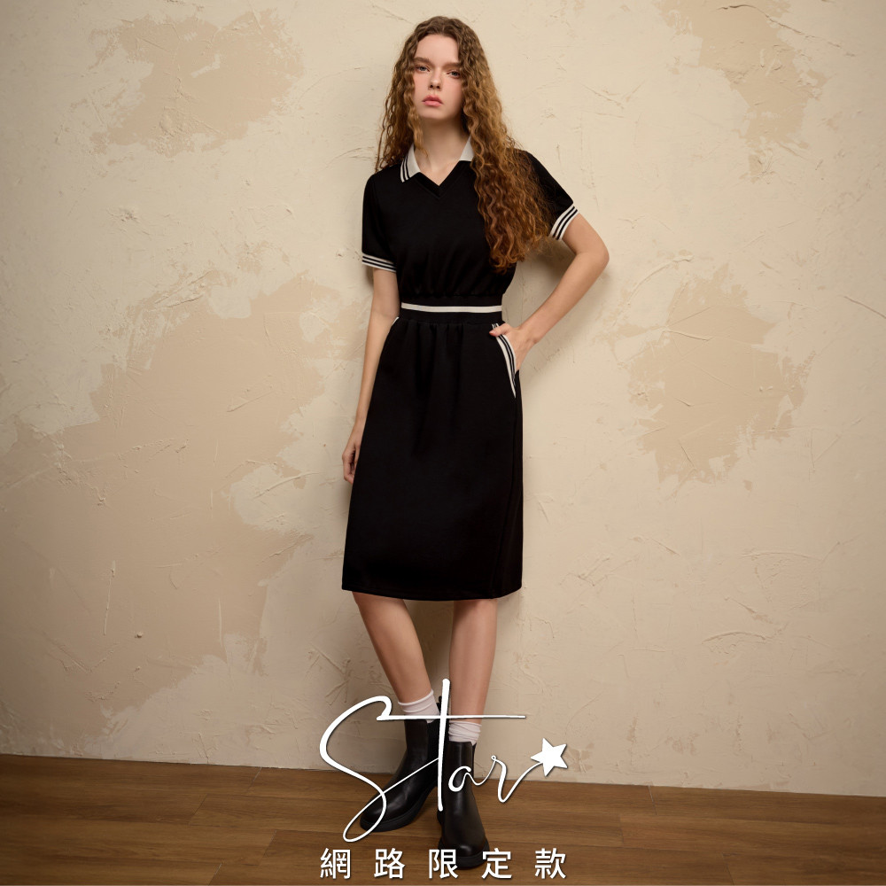SO NICE 撞色邊收腰高磅羅馬布襯衫領洋裝|黑/咖|STAR|都會時尚女裝【2554F010】黑,34(XS)|黑,36(S)|黑,38(M)|咖,38(M)|咖,40(L)|咖,42(XL)|黑,40(L)|黑,42(XL)|咖,34(XS)|咖,36(S)SO NICE 官方旗艦店