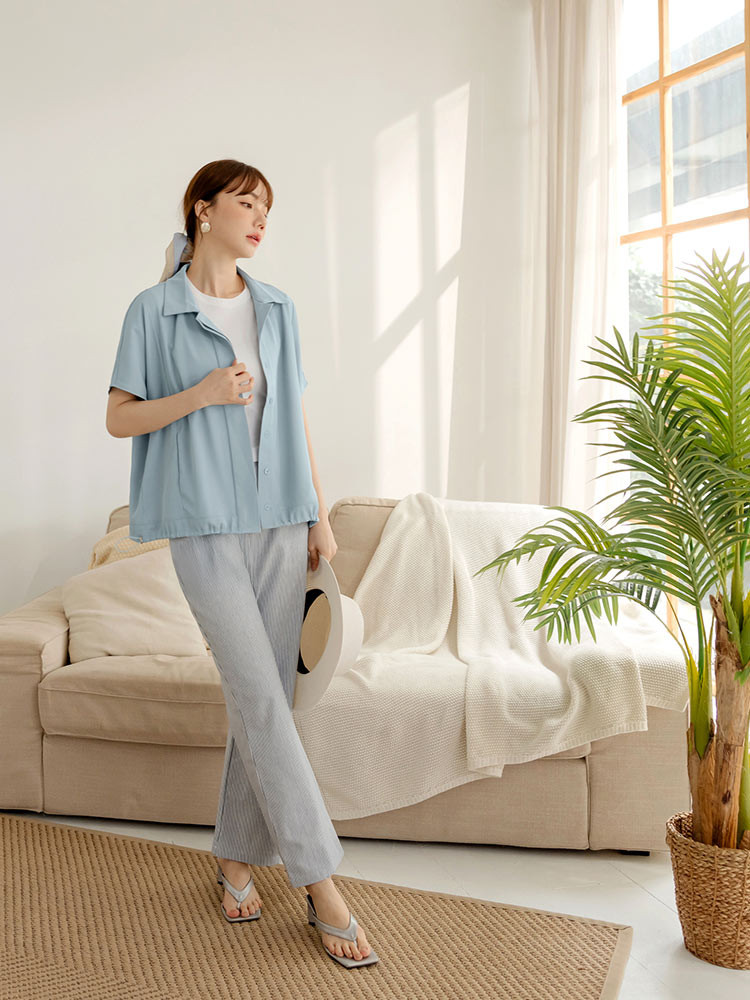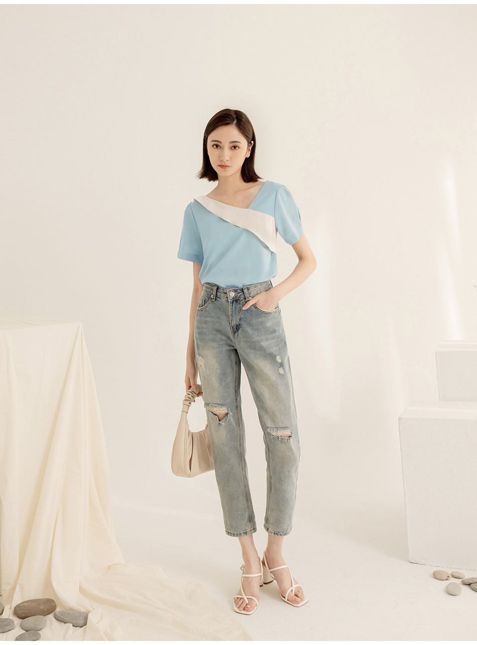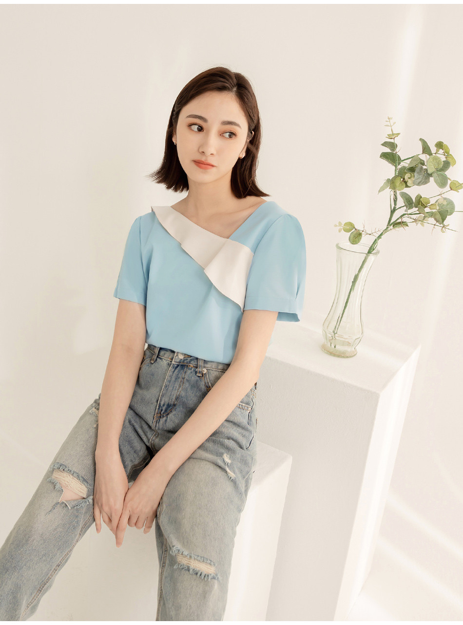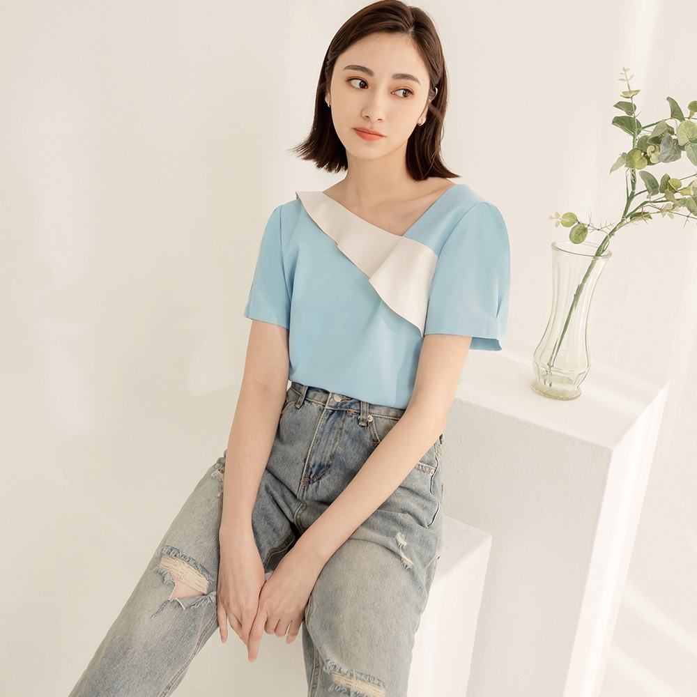 OB嚴選 撞色荷葉領短袖上衣 《AB18455》大尺碼/現貨/女裝淺丹寧藍,S|淺丹寧藍,M|淺丹寧藍,L|淺丹寧藍,XL|淺丹寧藍,2L|淺丹寧藍,3L|霧粉,S|霧粉,M|霧粉,L|霧粉,XL|霧粉,2L|霧粉,3LT-shirtsOB嚴選官方旗艦店