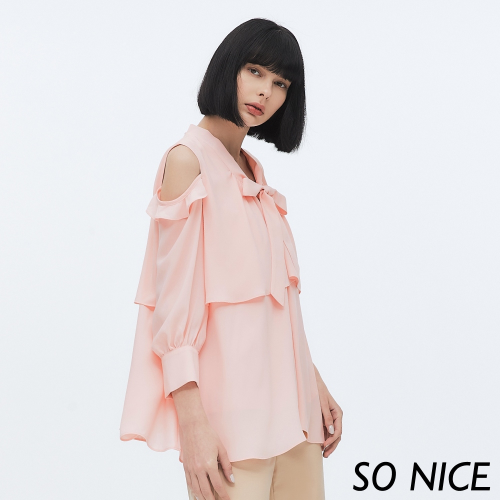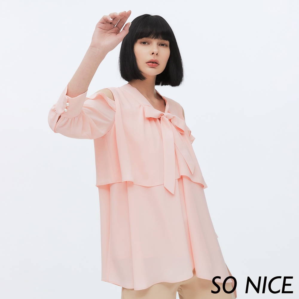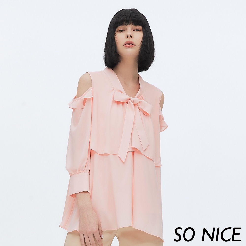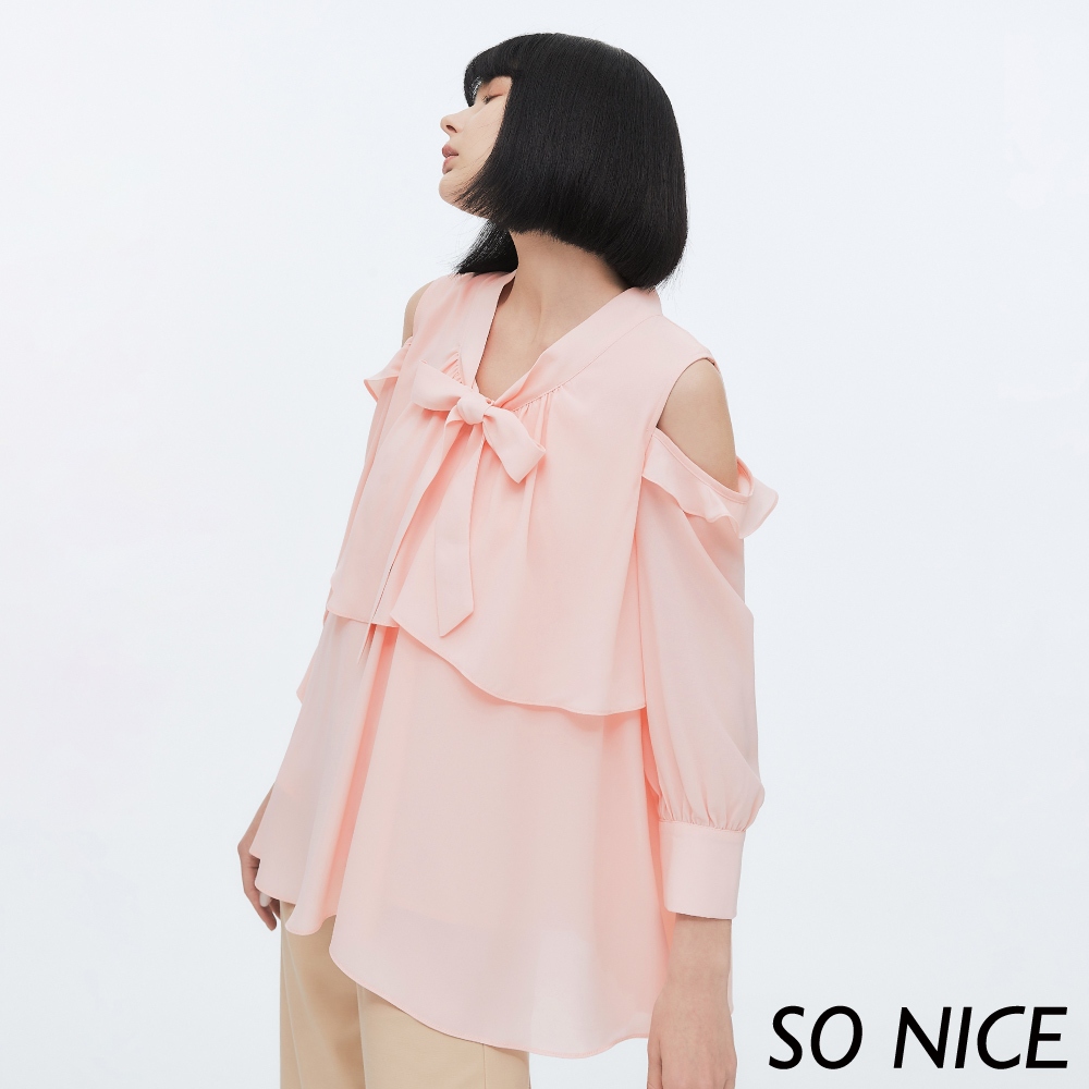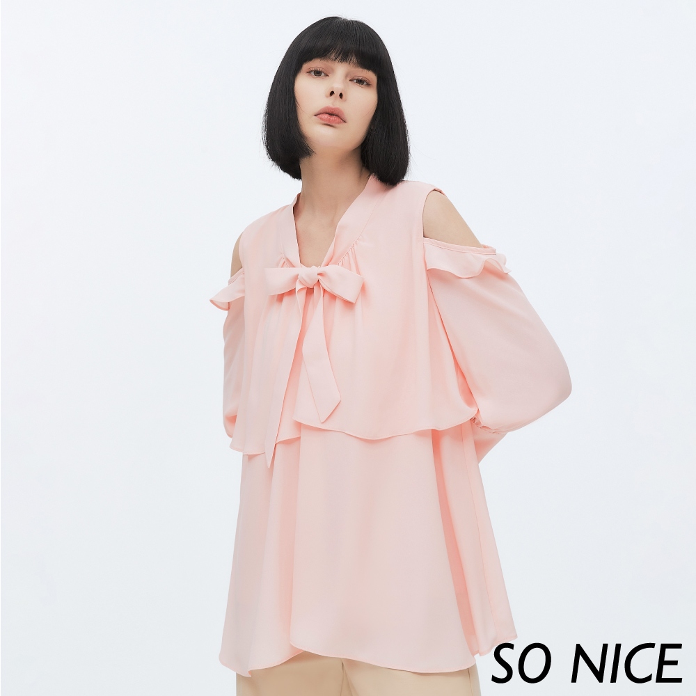 SO NICE【特惠】大蝴蝶結挖肩雪紡上衣|都會時尚女裝 【29331011】粉,40(L)|粉,34(XS)|粉,36(S)|粉,38(M)SO NICE 官方旗艦店