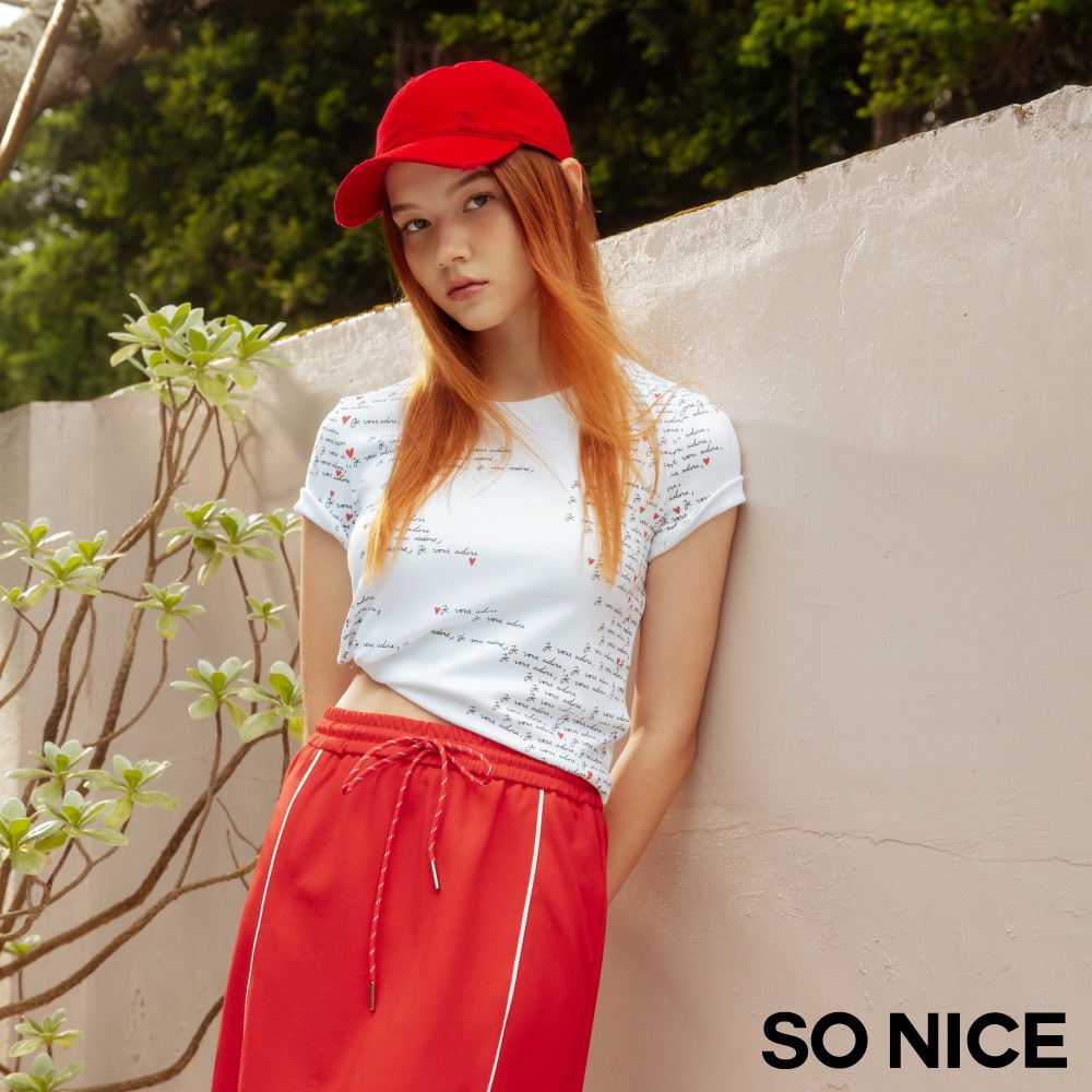 SO NICE【美白冰紗系列】圓領字母印花修身抗曬涼感短版上衣|都會時尚女裝【58531026】白,42(XL)|白,34(XS)|白,36(S)|白,38(M)|白,40(L)T-shirtsSO NICE 官方旗艦店