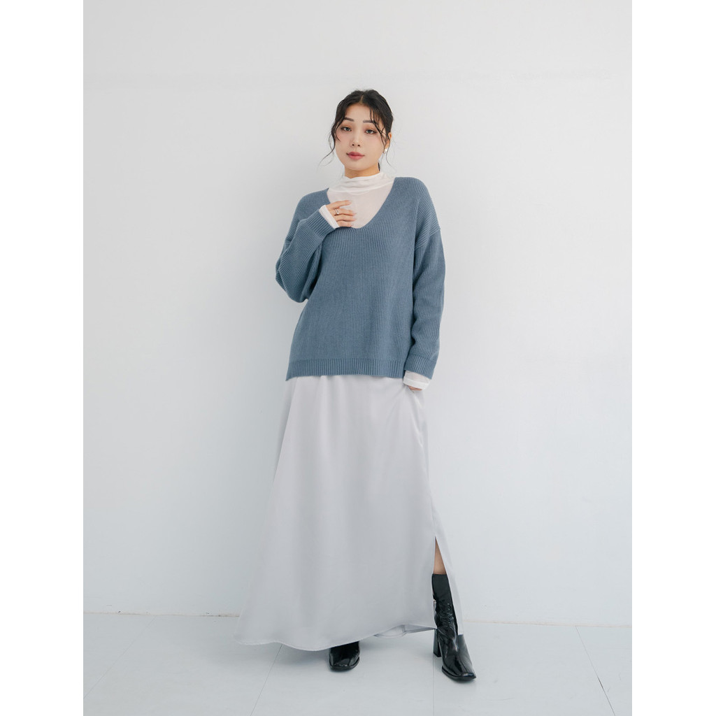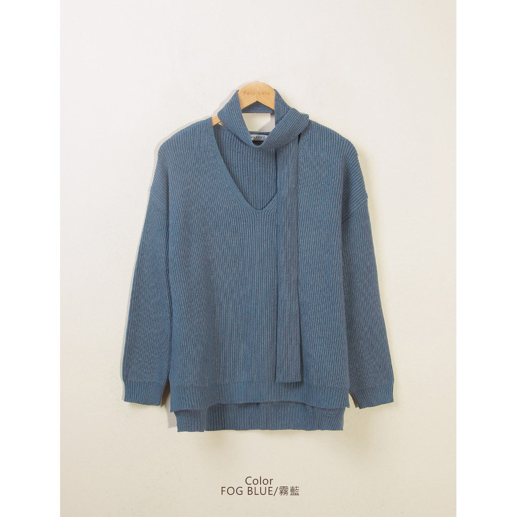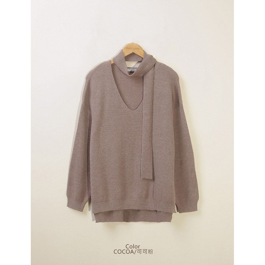 【PolyLulu】 MISS.溫柔慵懶多色V領針織長袖上衣(附綁帶) 中大尺碼上衣