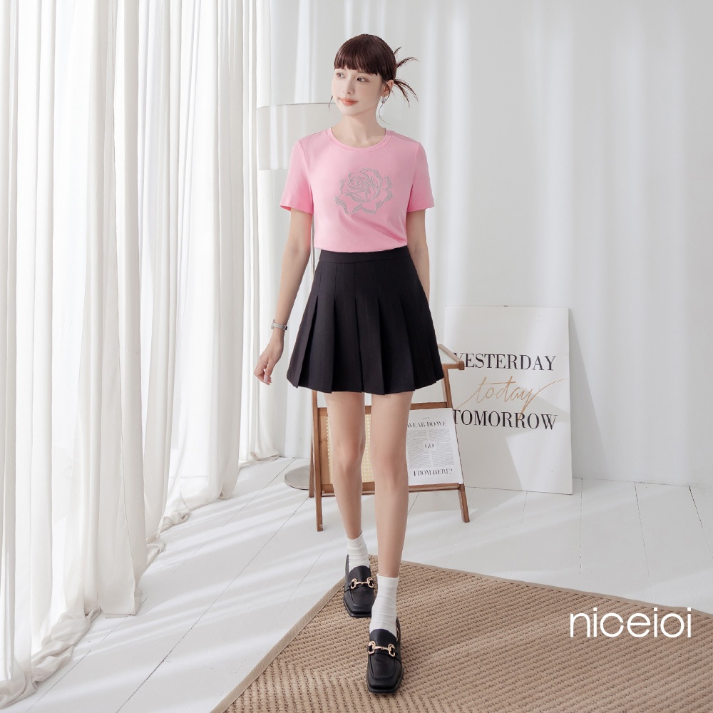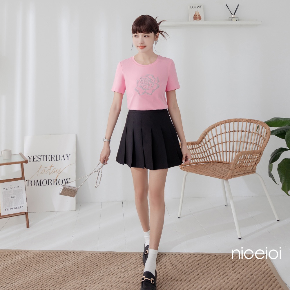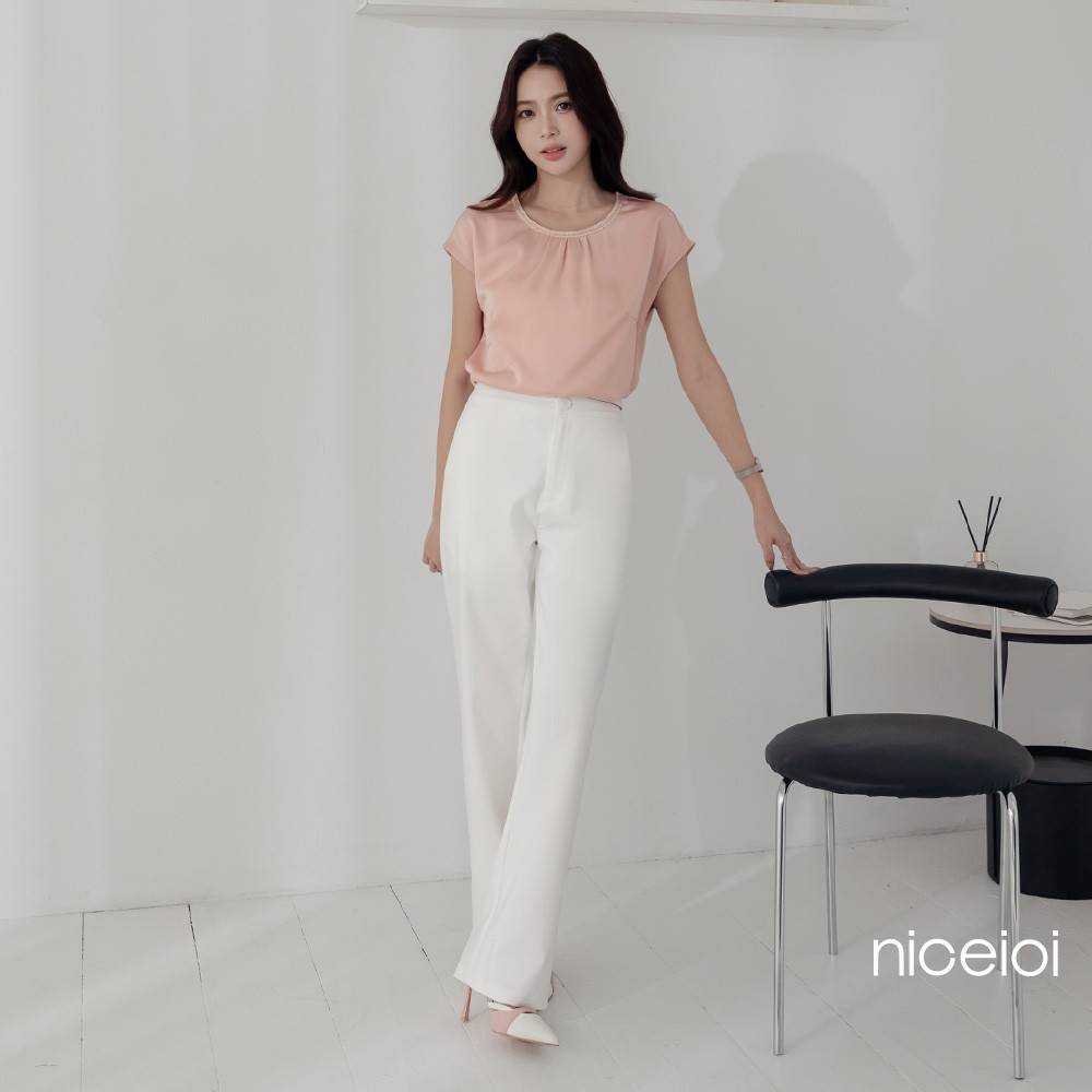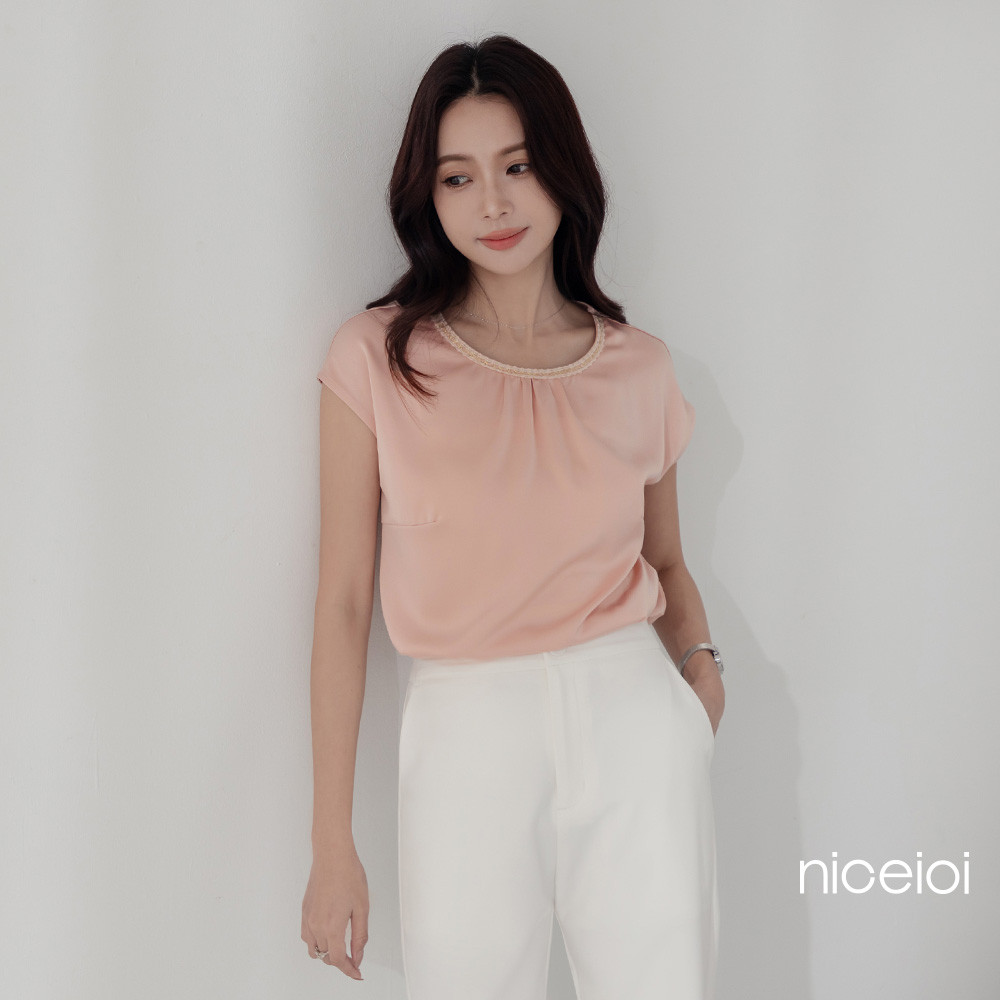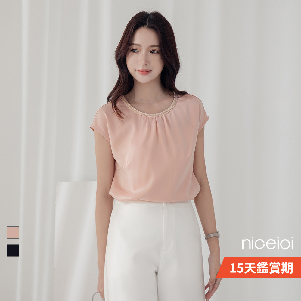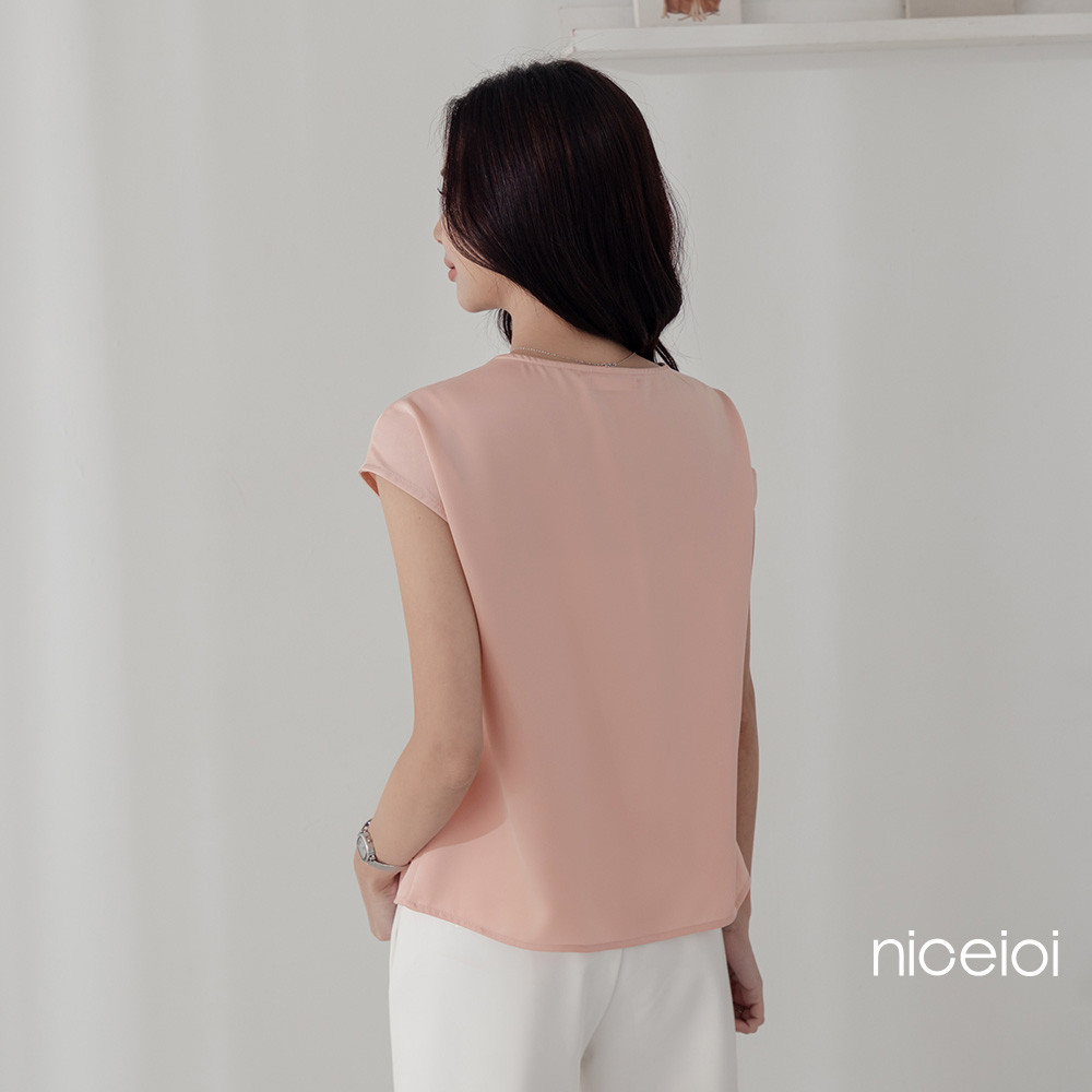 niceioi 微甜素雅抓褶時裝面料上衣 (共兩色) 女裝藍黑,M|藍黑,XL|粉,L|粉,XL|藍黑,S|粉,S|粉,M|藍黑,LT-shirtsniceioi 官方旗艦店