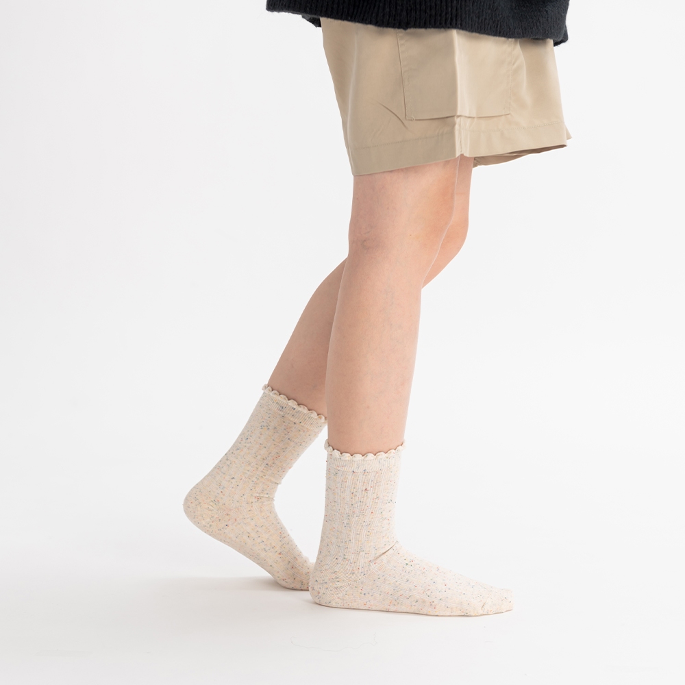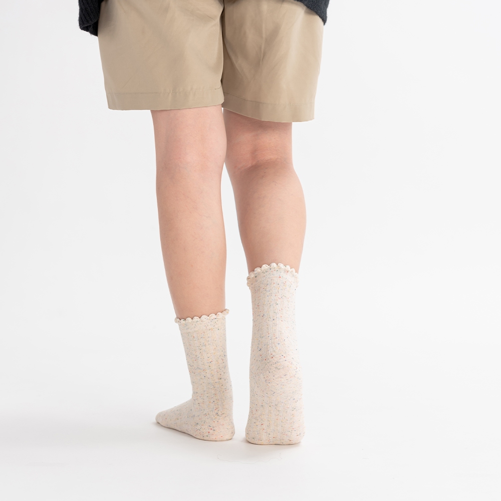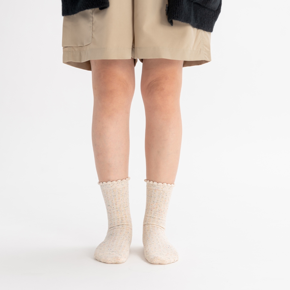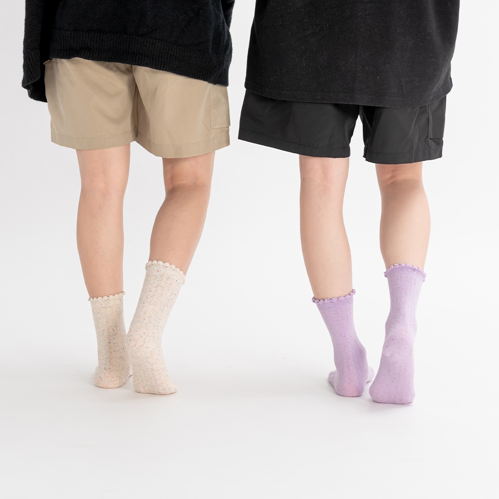 QUEENSHOP_ V 女裝 正韓 木耳邊繽紛點點造型中筒襪 兩色售 現+預 【07110530】白|紫SocksQUEENSHOP