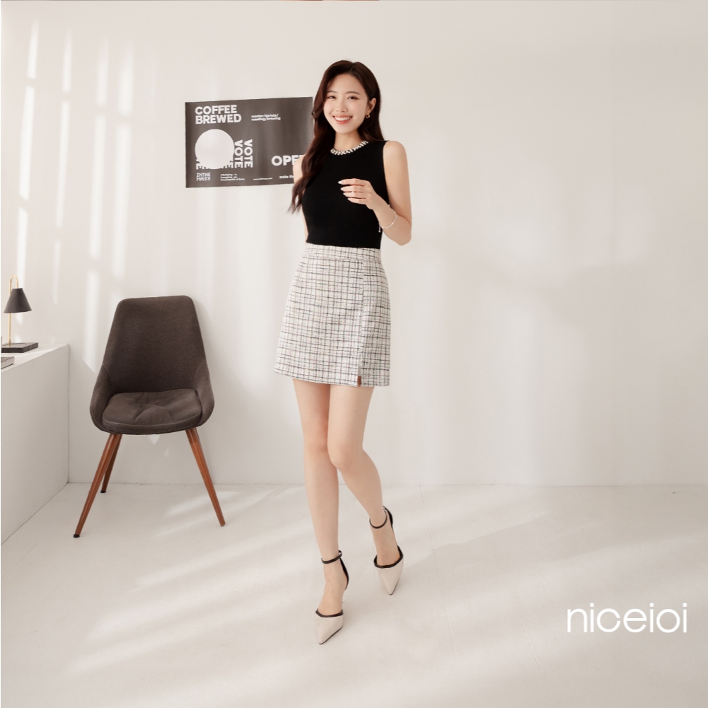 niceioi【特惠】小香風短裙 短裙 a字裙 白色 [清新脫俗高級小香小開衩短裙] 毛呢短裙 女裝a字短裙 白色,L|a字短裙 白色,XL|a字短裙 白色,S|a字短裙 白色,Mniceioi 官方旗艦店