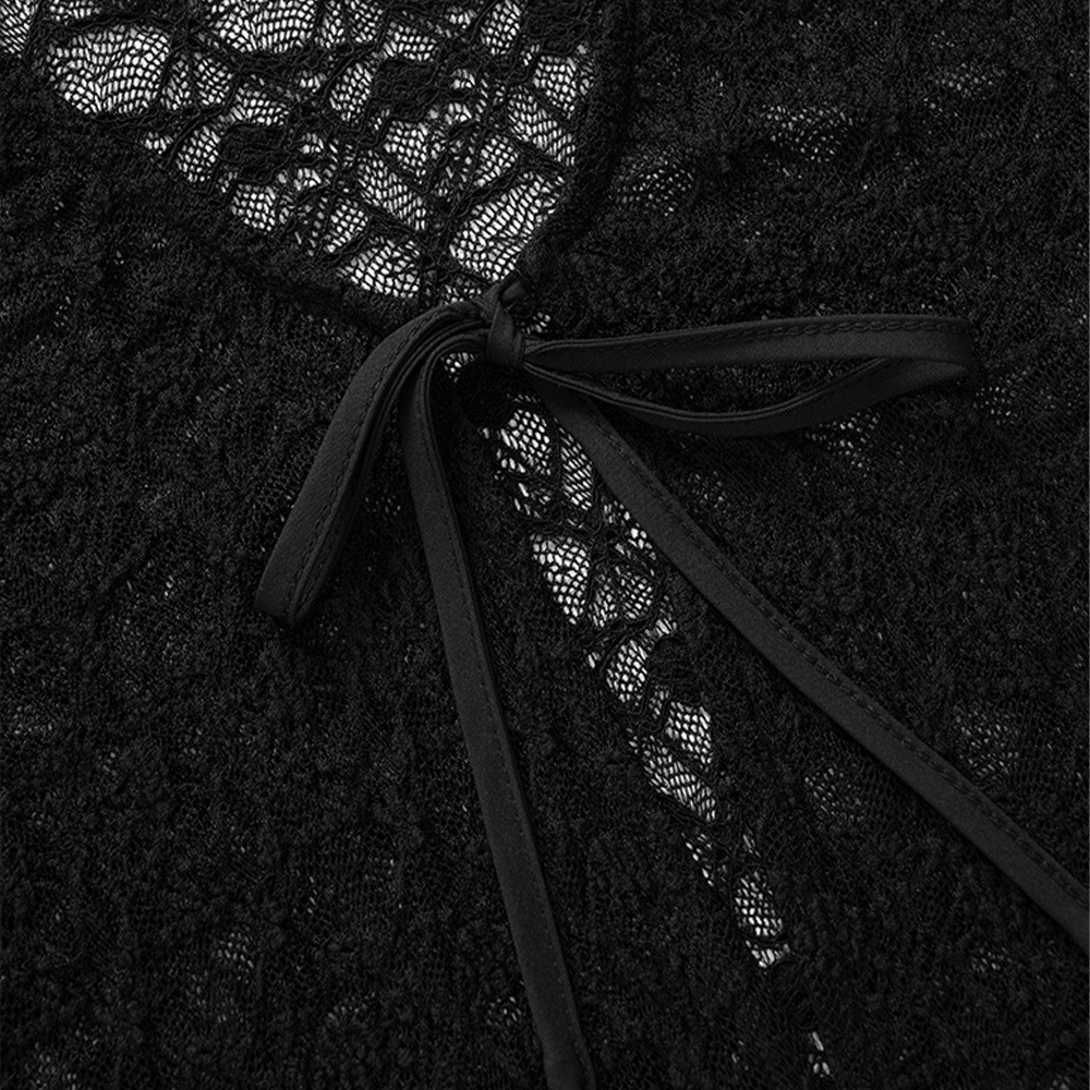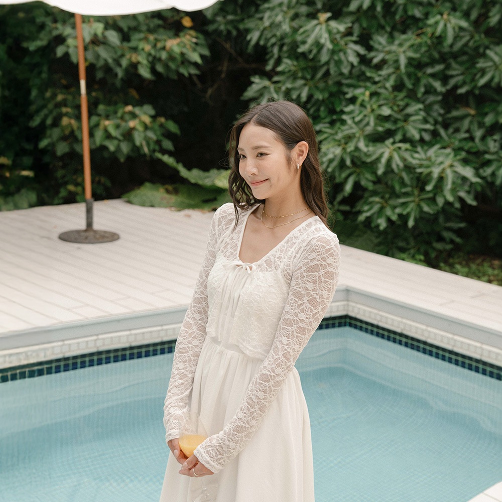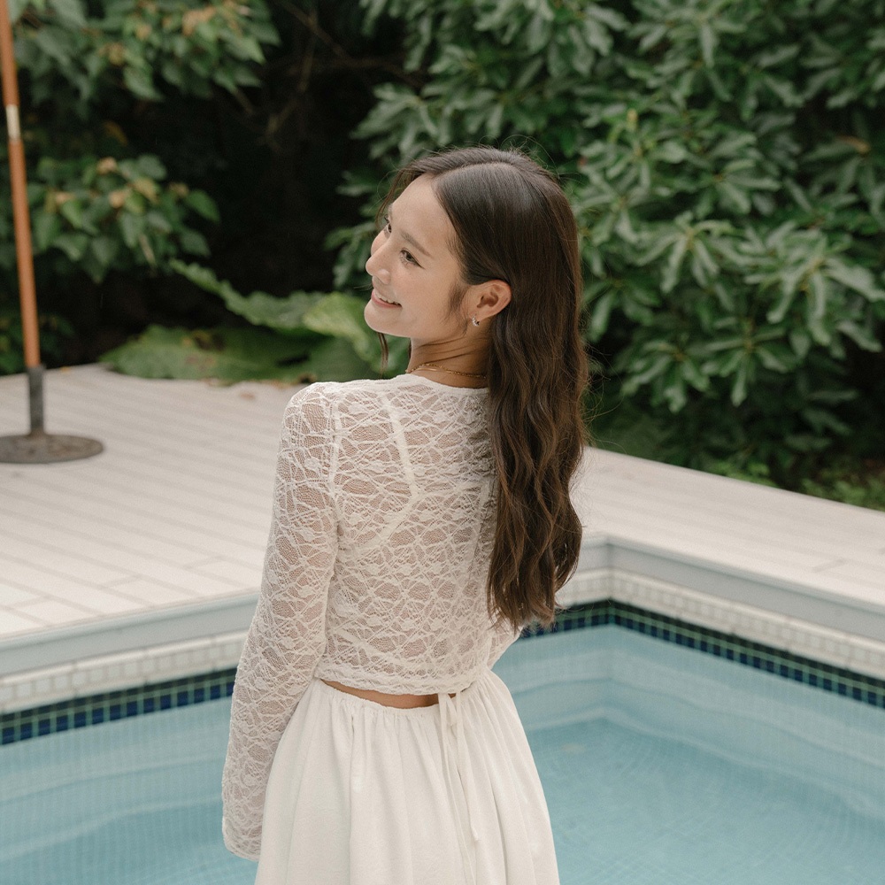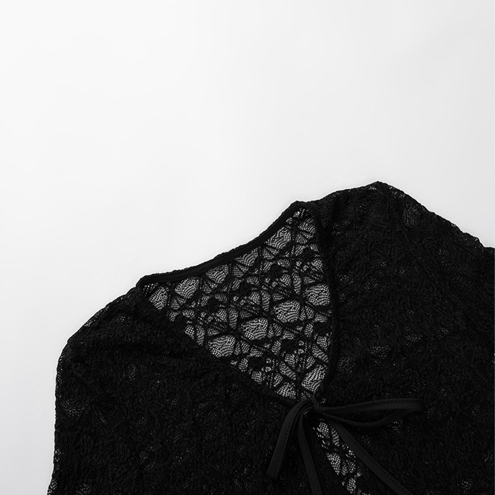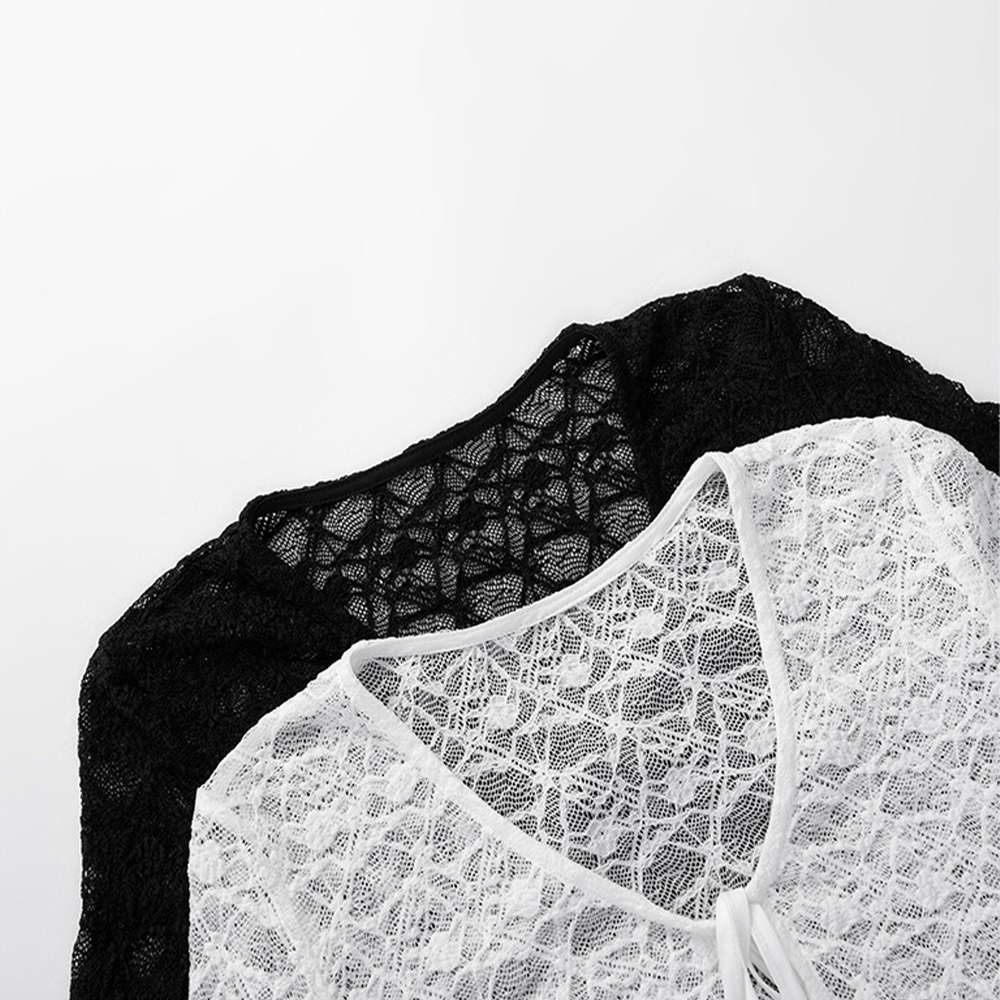 QUEENSHOP_ S 品子聯名 V領蕾絲綁帶短版長袖罩衫-白 現+預 【01099087】白OthersQUEENSHOP