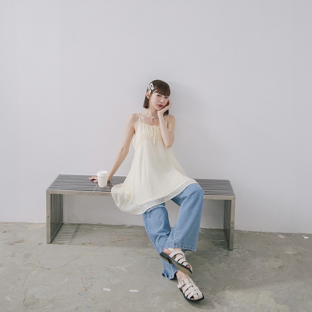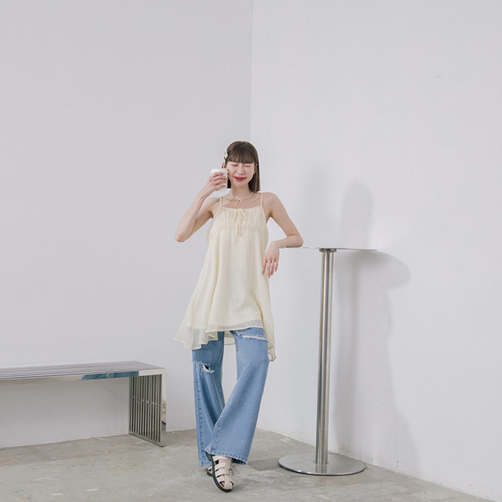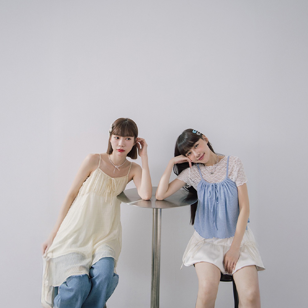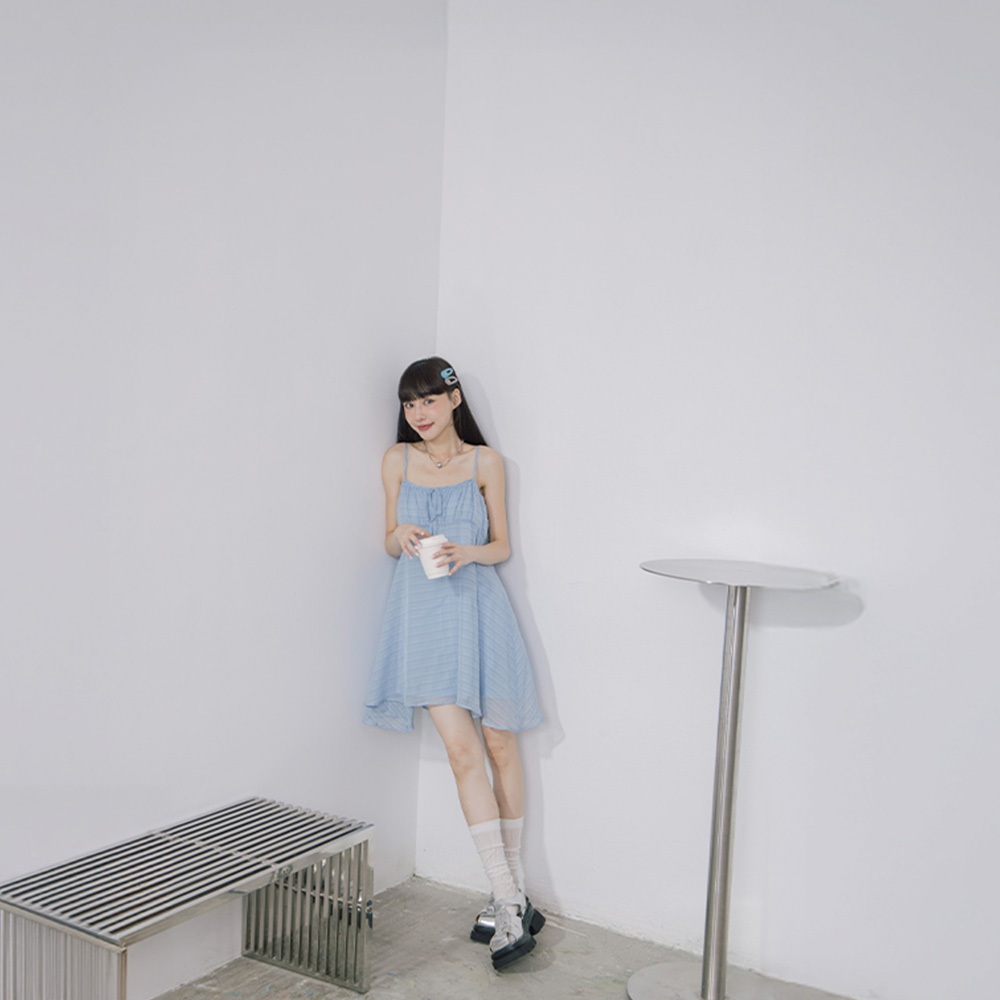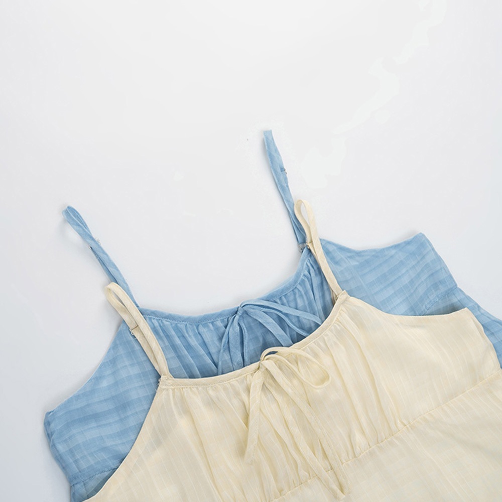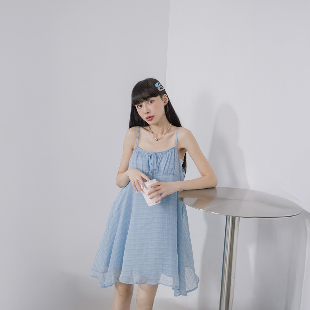 QUEENSHOP_ S 女裝 格紋前綁帶細肩雙層短洋裝 兩色售 現+預 【01086989】藍|黃QUEENSHOP