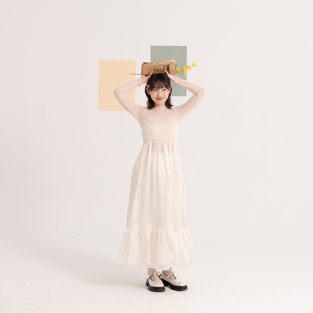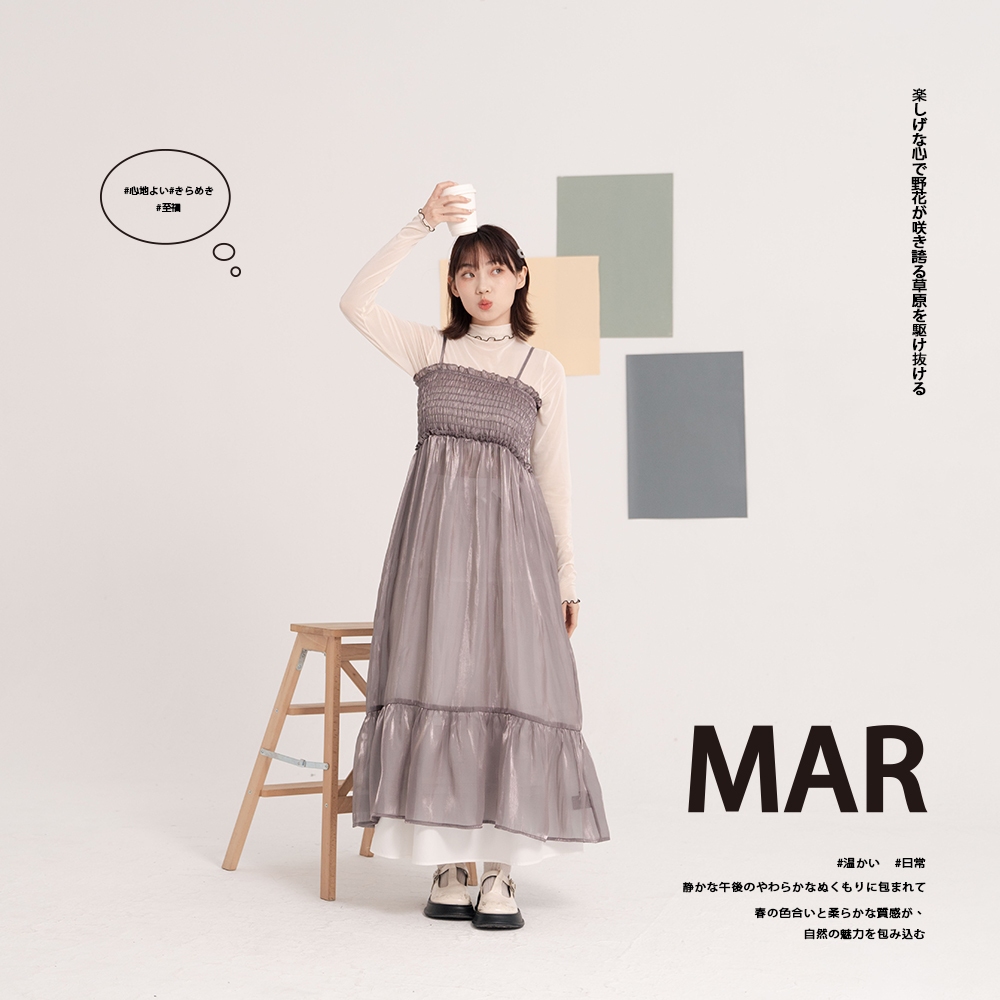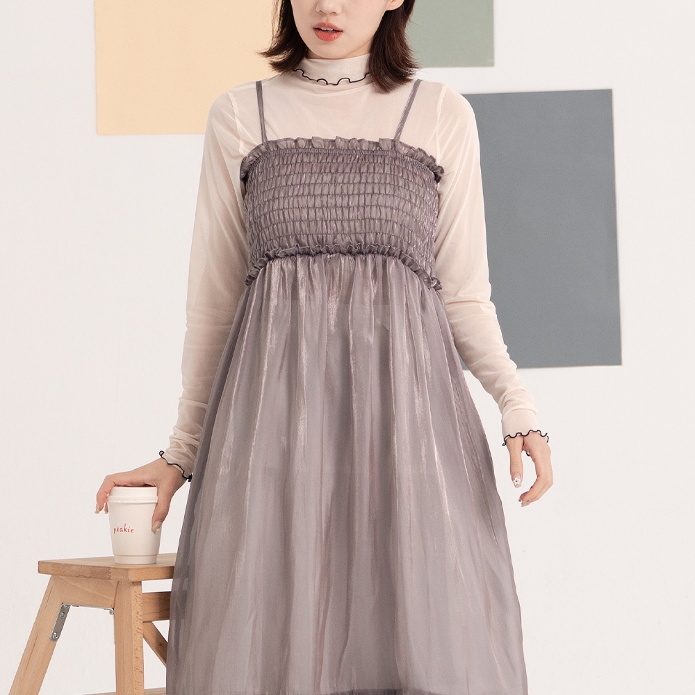 QUEENSHOP_ S 女裝 光澤透紗前抓皺洋裝長罩衫 兩色售 現+預 【01098957】灰|杏QUEENSHOP