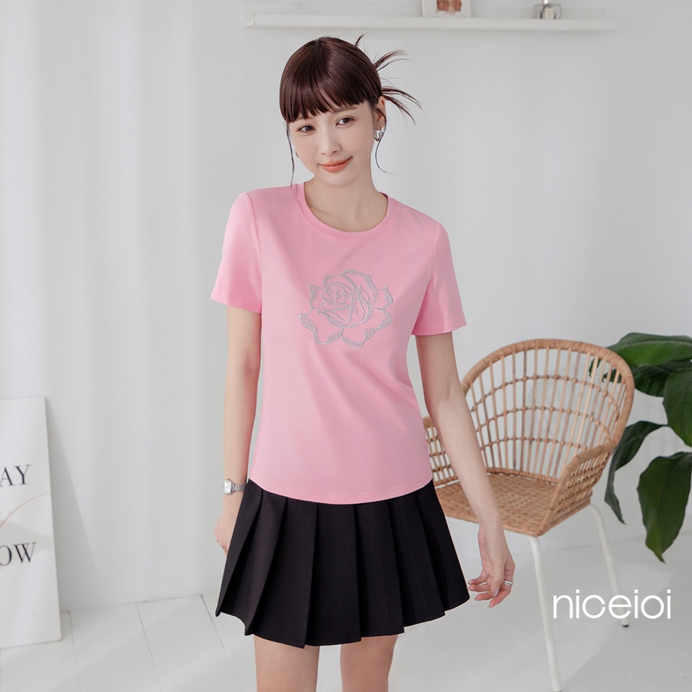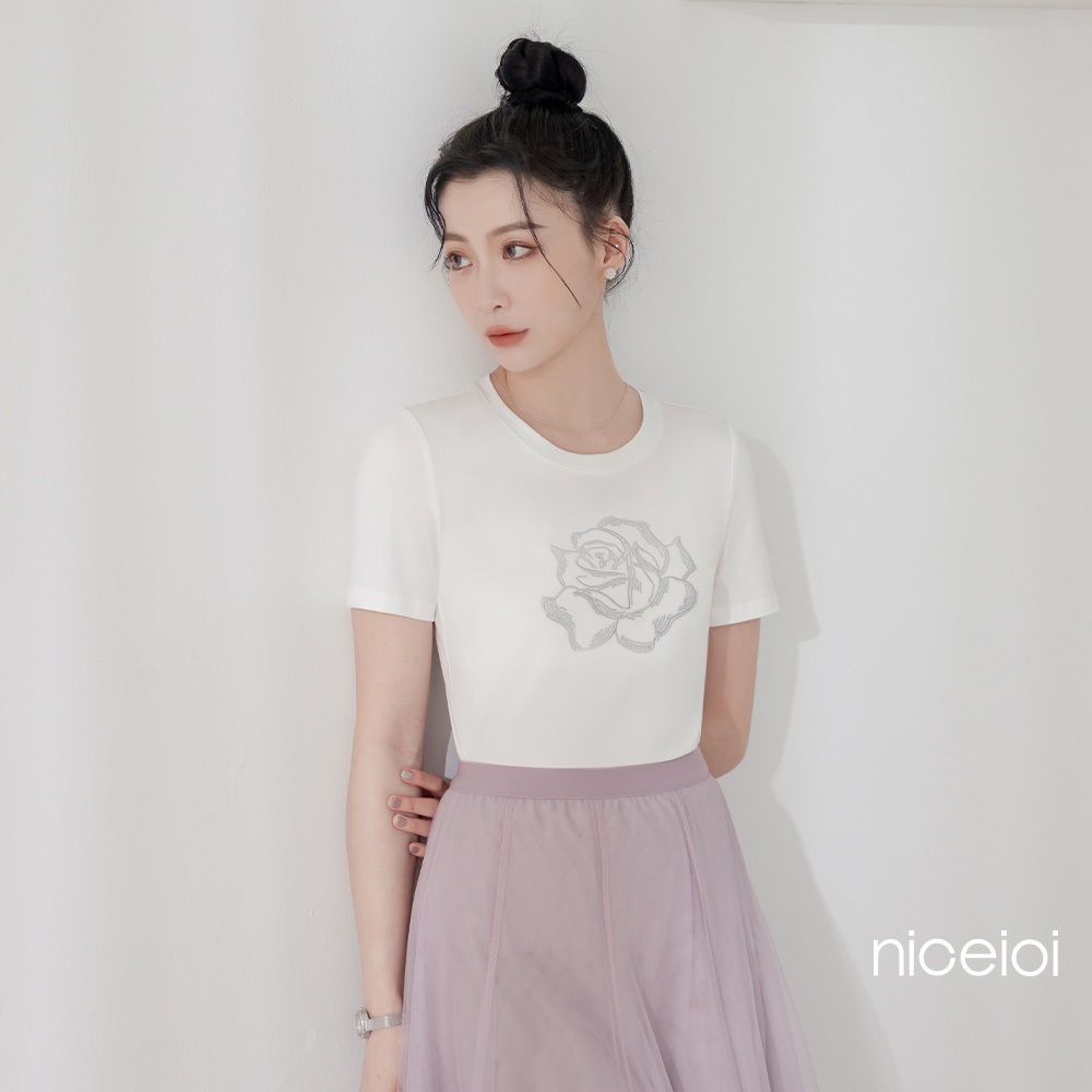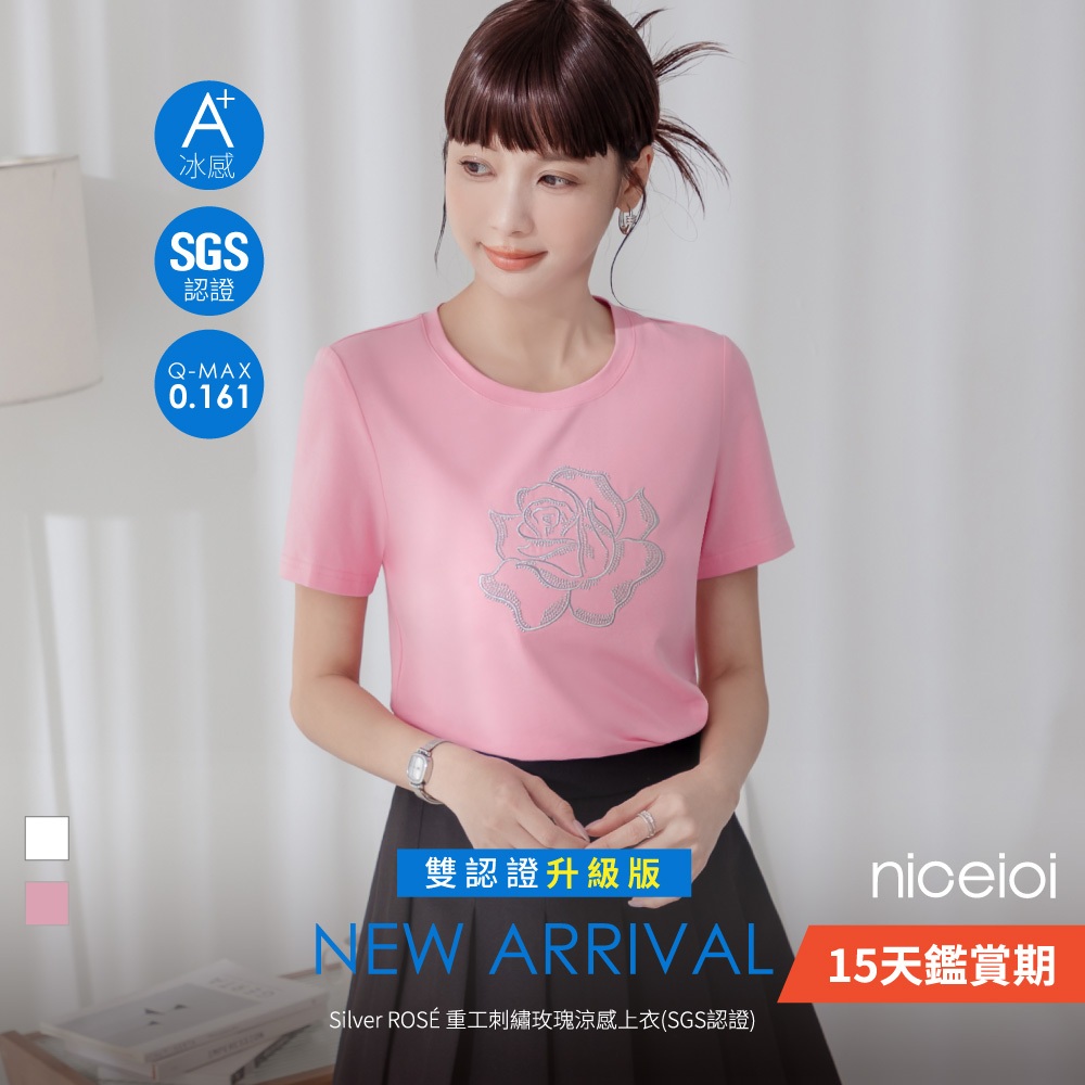 niceioi 涼感上衣 短袖 刺繡上衣 粉色 [Silver ROSÉ 重工刺繡玫瑰涼感上衣] (SGS認證) 女裝涼感刺繡上衣-白,L|涼感刺繡上衣-白,XL|涼感刺繡上衣-粉,S|涼感刺繡上衣-粉,M|涼感刺繡上衣-粉,L|涼感刺繡上衣-粉,XL|涼感刺繡上衣-白,S|涼感刺繡上衣-白,MT-shirtsniceioi 官方旗艦店