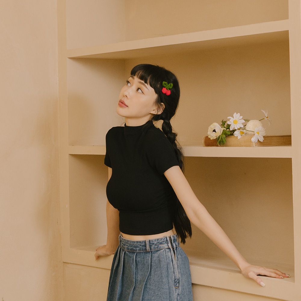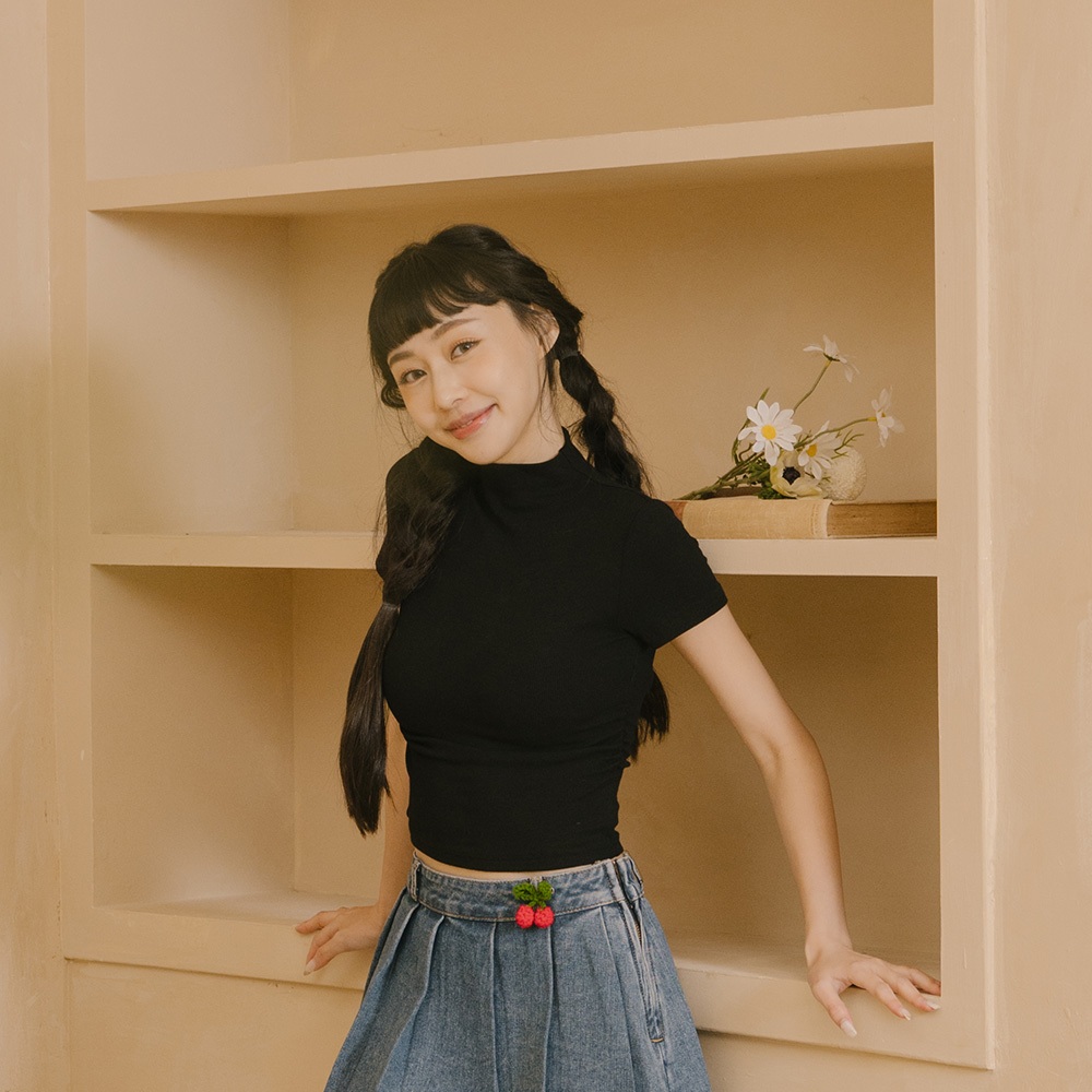 QUEENSHOP_ S 女裝 短袖 柏心聯名 微高領側抓皺短版合身上衣-黑 S/M 現+預 【01098896】黑S|黑MOthersQUEENSHOP